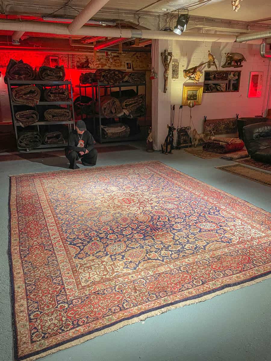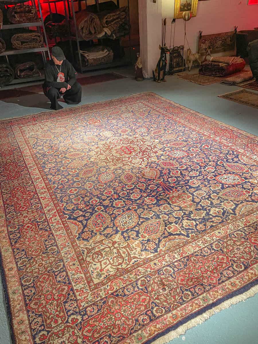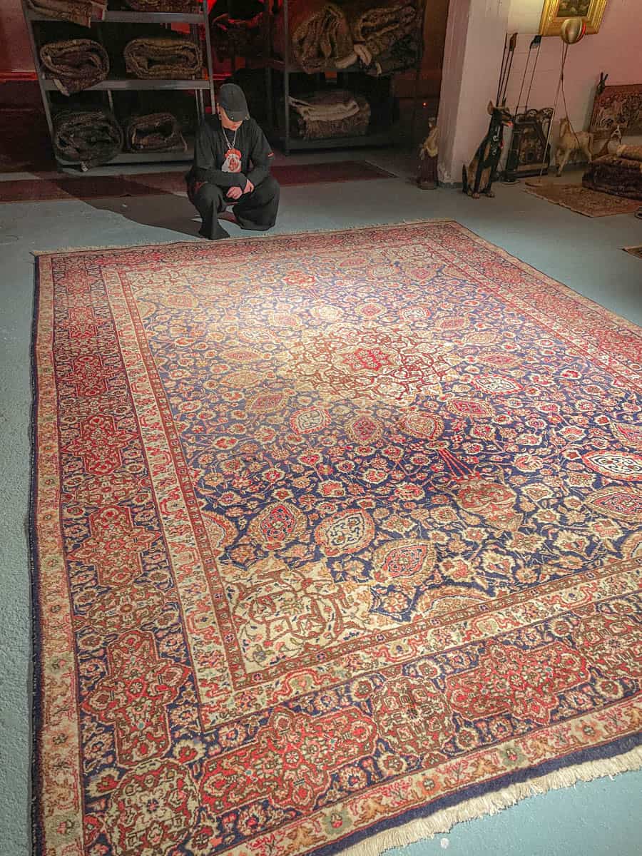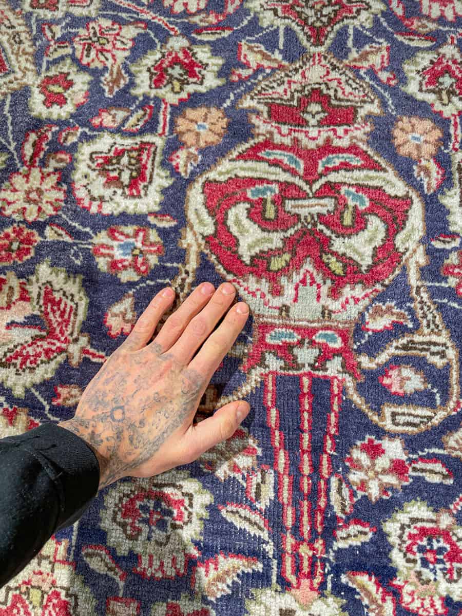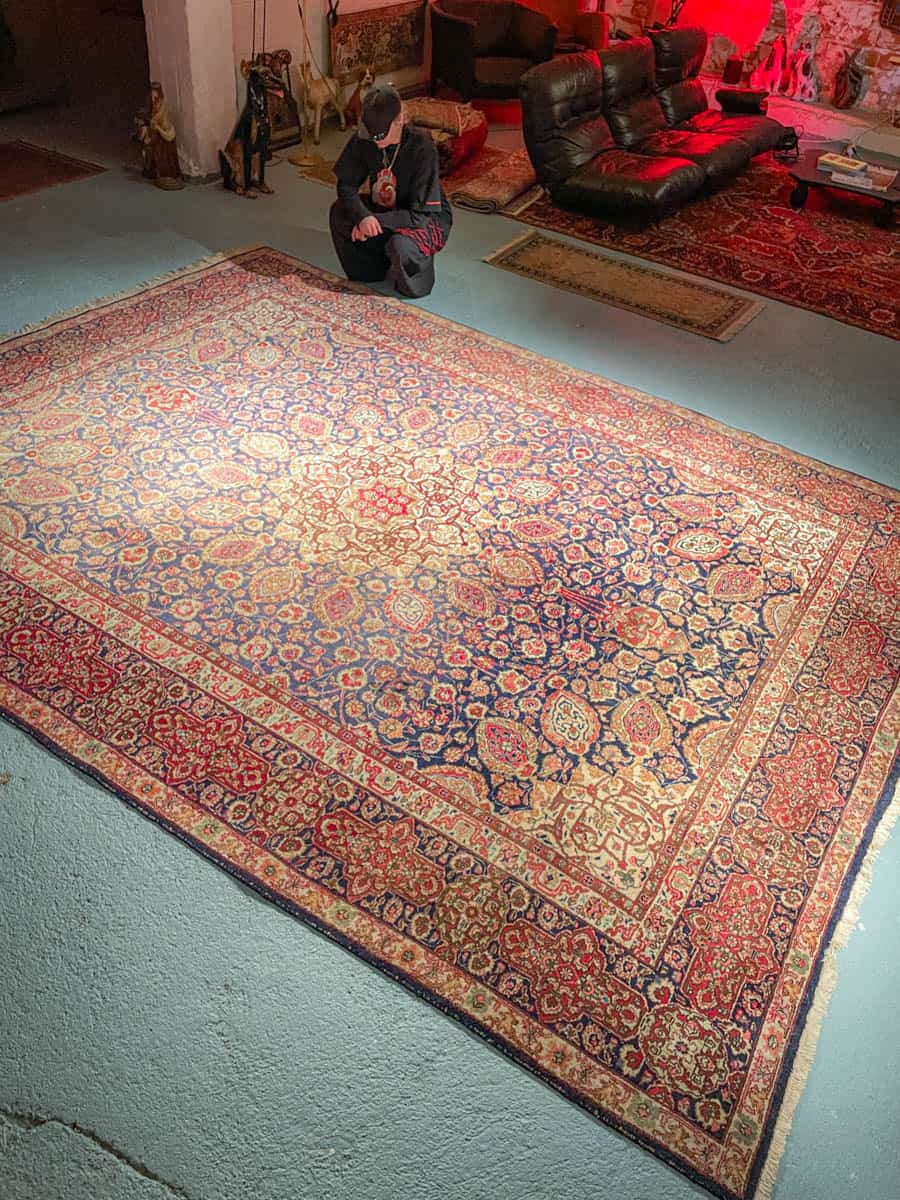 Tämä matto sijaitsee Galleriallamme osoitteessa Kankurinkatu 7, Punavuori – jos haluat tulla katsomaan sitä paikan päälle, sovithan näytön viestitse tai puhelimitse.