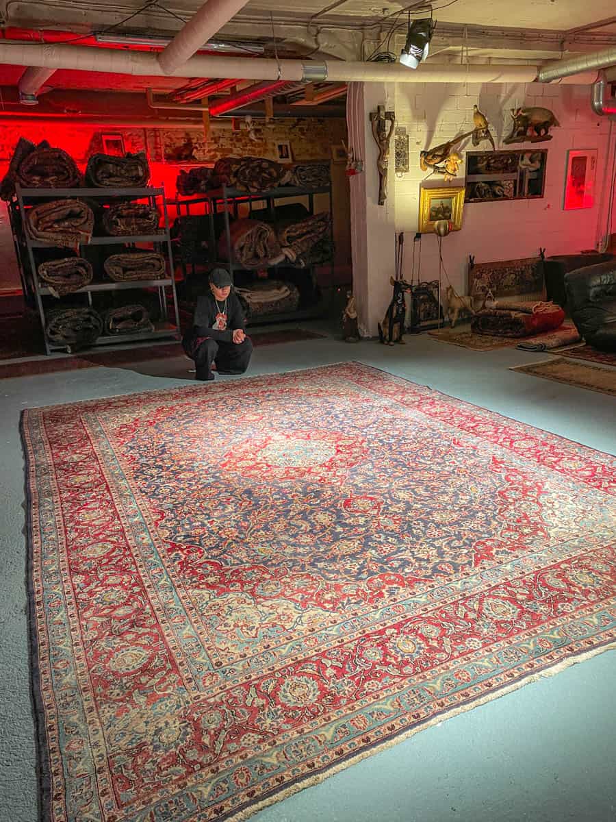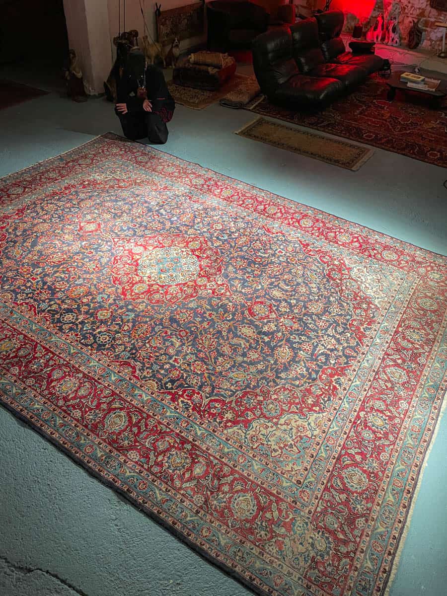 Tämä matto sijaitsee Galleriallamme osoitteessa Kankurinkatu 7, Punavuori – jos haluat tulla katsomaan sitä paikan päälle, sovithan näytön viestitse tai puhelimitse.