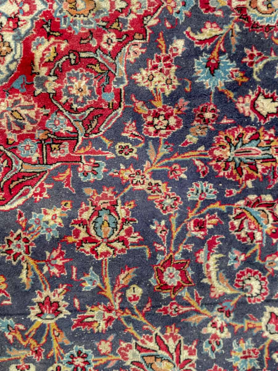 Käsinsolmittu perinteiseen persialaiseen Keshan-tyyliin. Kaunis ja perinteinen kuviointi keskimedaljongilla. Poikkeuksellisen hillitty väriteema. Käsinsolmittu villasta n. 1970-luvulla.