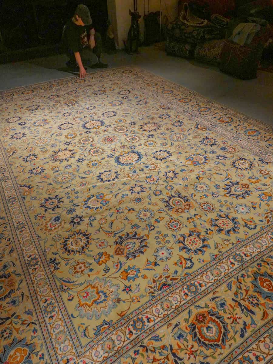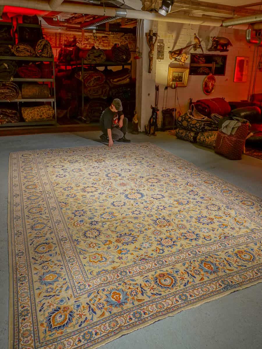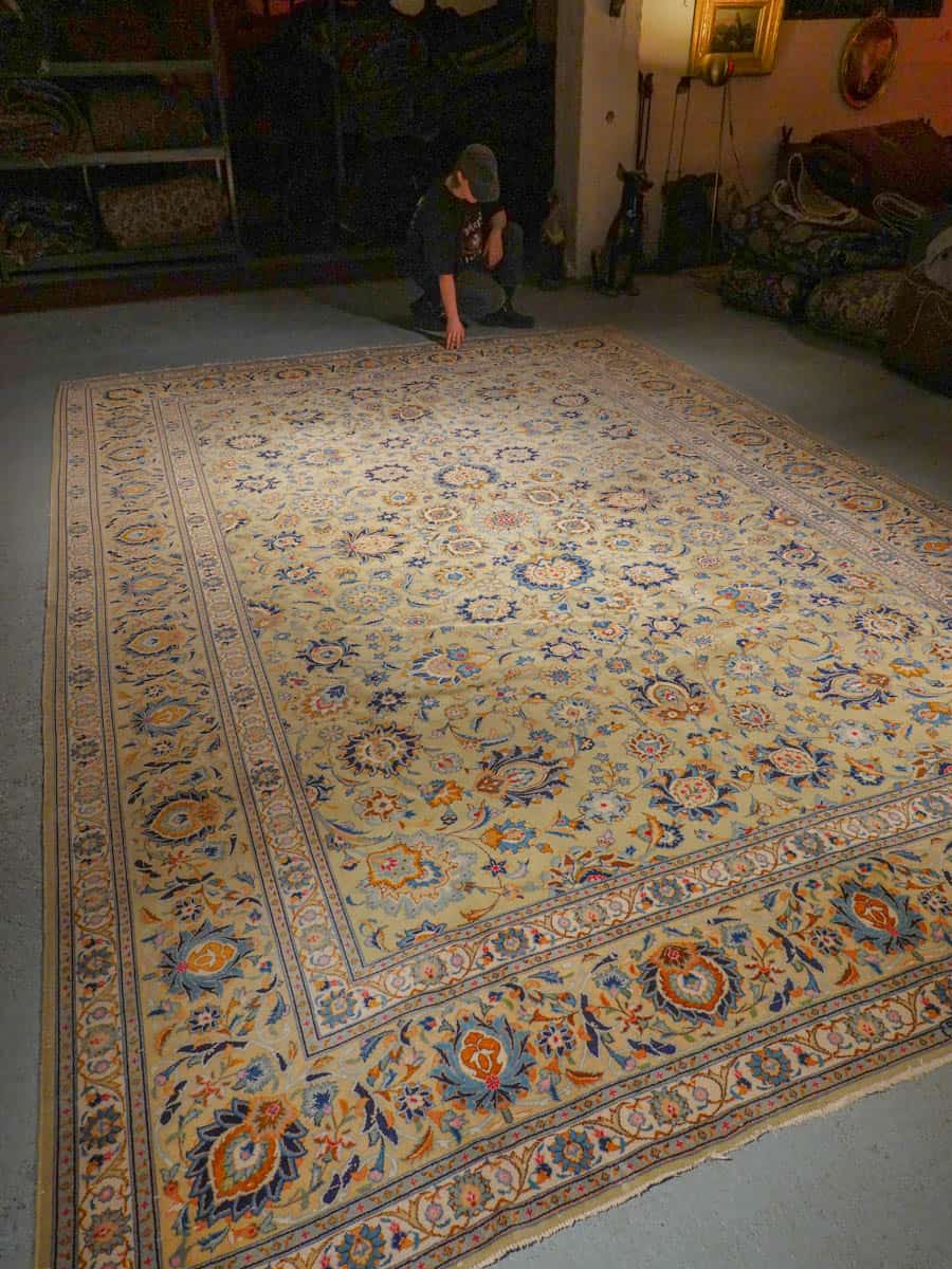 Tämä matto sijaitsee Galleriallamme osoitteessa Kankurinkatu 7, Punavuori – jos haluat tulla katsomaan sitä paikan päälle, sovithan näytön viestitse tai puhelimitse.