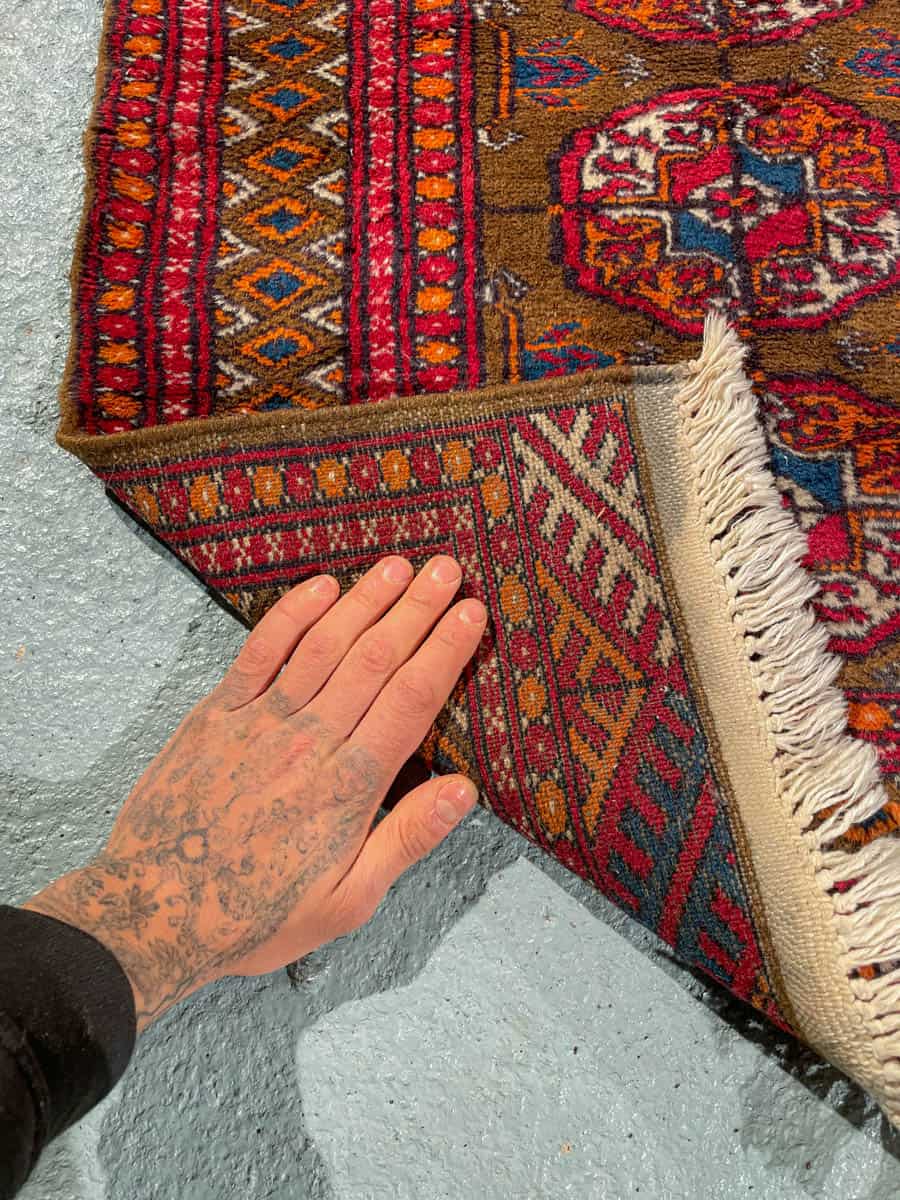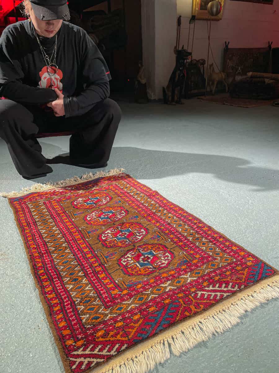 Tämä matto sijaitsee Galleriallamme osoitteessa Kankurinkatu 7, Punavuori – jos haluat tulla katsomaan sitä paikan päälle, sovithan näytön viestitse tai puhelimitse.
