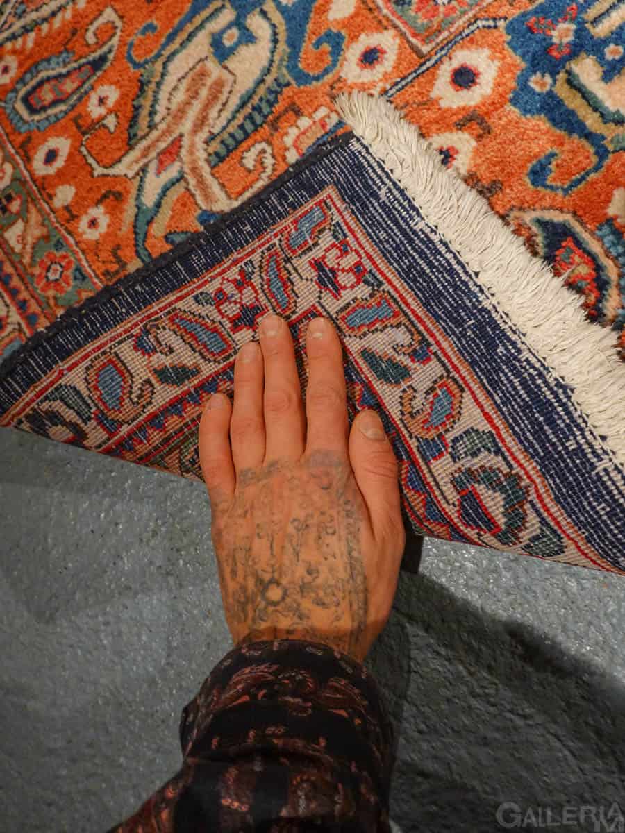Tämä matto sijaitsee Galleriallamme osoitteessa Kankurinkatu 7, Punavuori – jos haluat tulla katsomaan sitä paikan päälle, sovithan näytön viestitse tai puhelimitse.