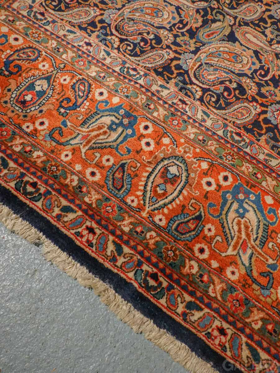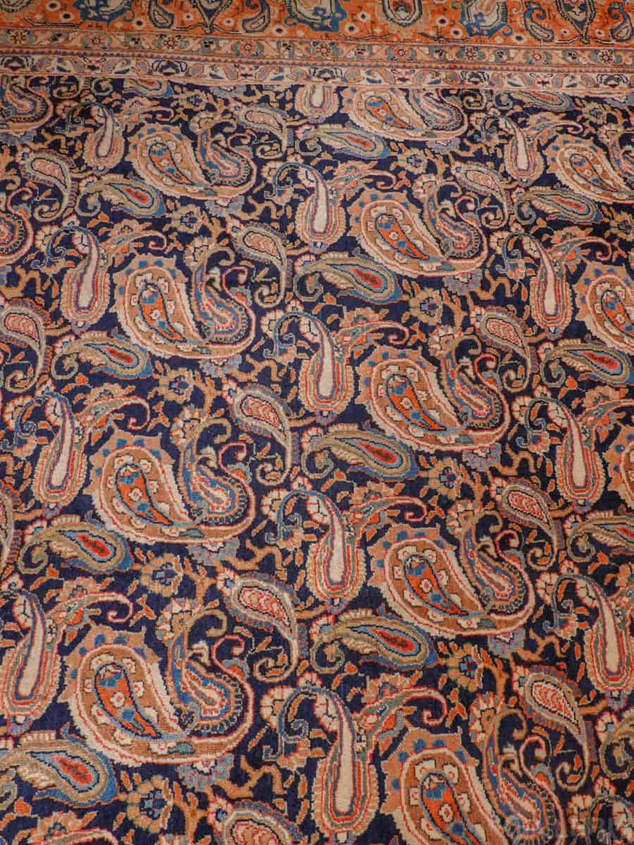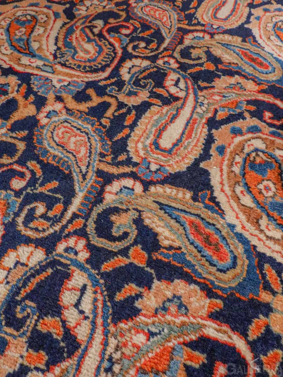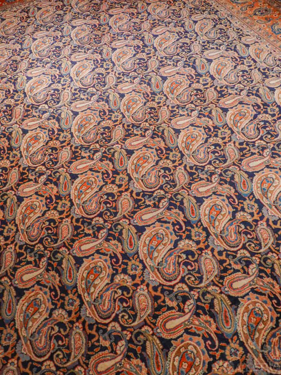 Juhlallisen koristeellinen vaalea Kashmar uskomattoman yksityiskohtaisella kuvioinnilla. Tummansinisellä pohjalla tanssii runsasyksityiskohtaiset Boteh-motiivit.