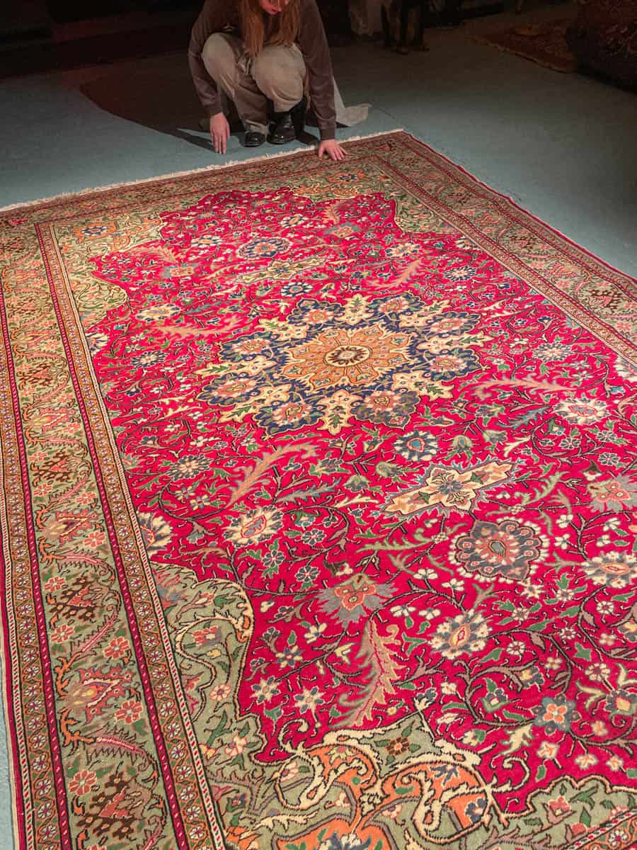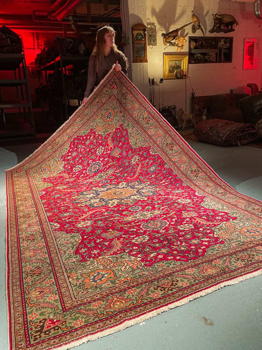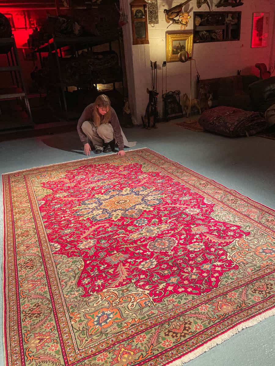 Tämä matto sijaitsee Galleriallamme osoitteessa Kankurinkatu 7, Punavuori – jos haluat tulla katsomaan sitä paikan päälle, sovithan näytön viestitse tai puhelimitse.