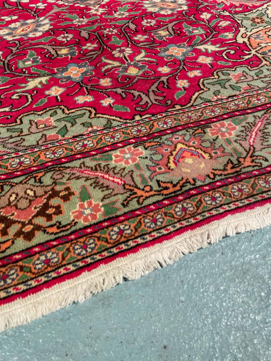 Käsinsolmittu perinteiseen Kayseri-tyyliin. Kaunis ja yksityiskohtainen kuviointi keskimedaljongilla. Upeana säilynyt väritys. Käsinsolmittu villasta.