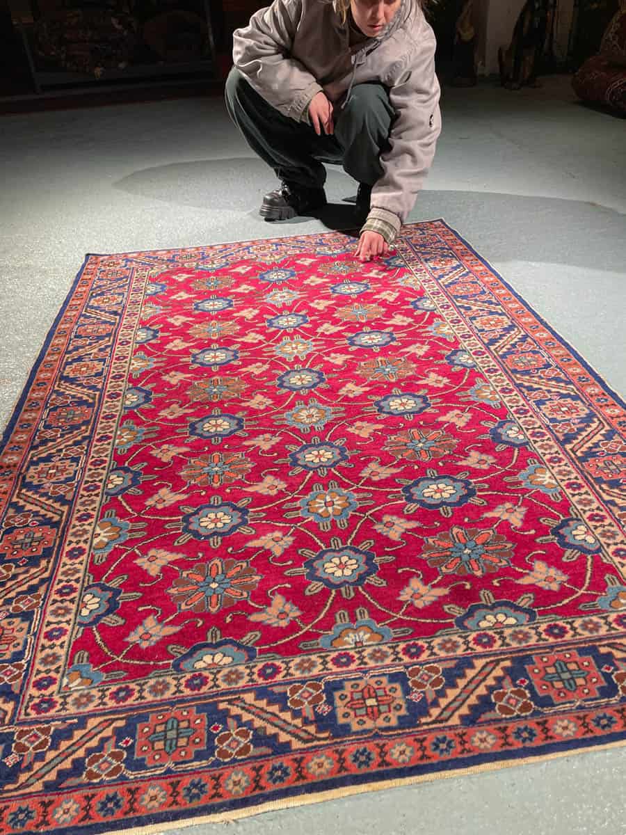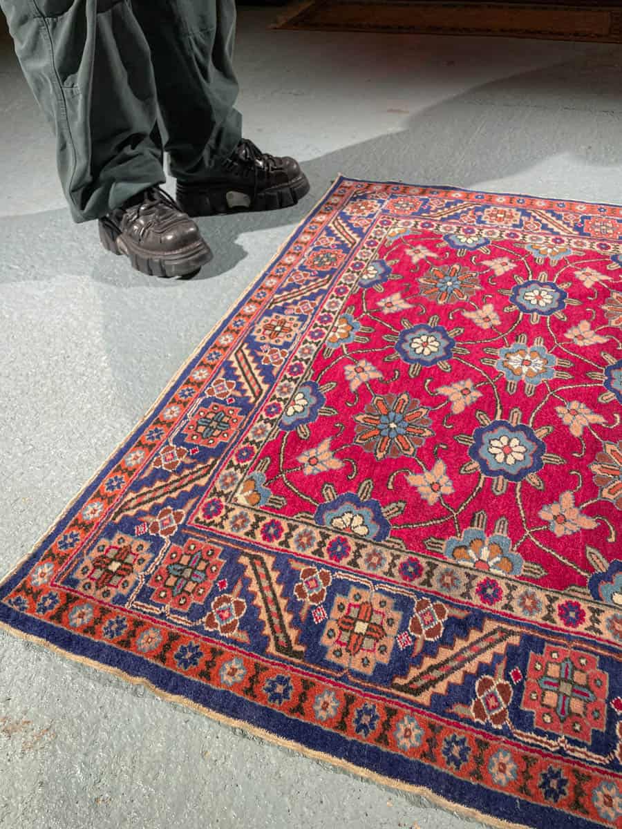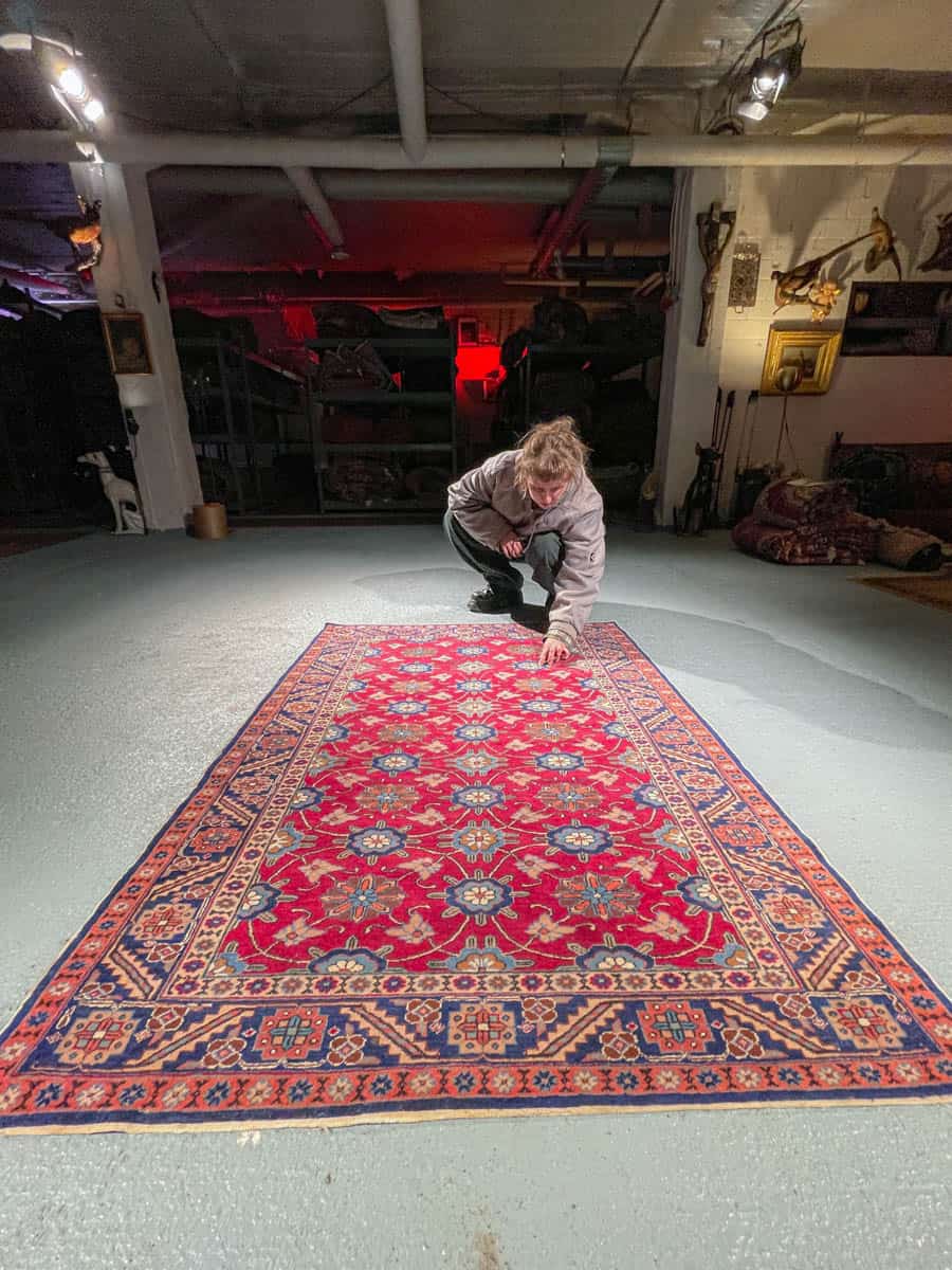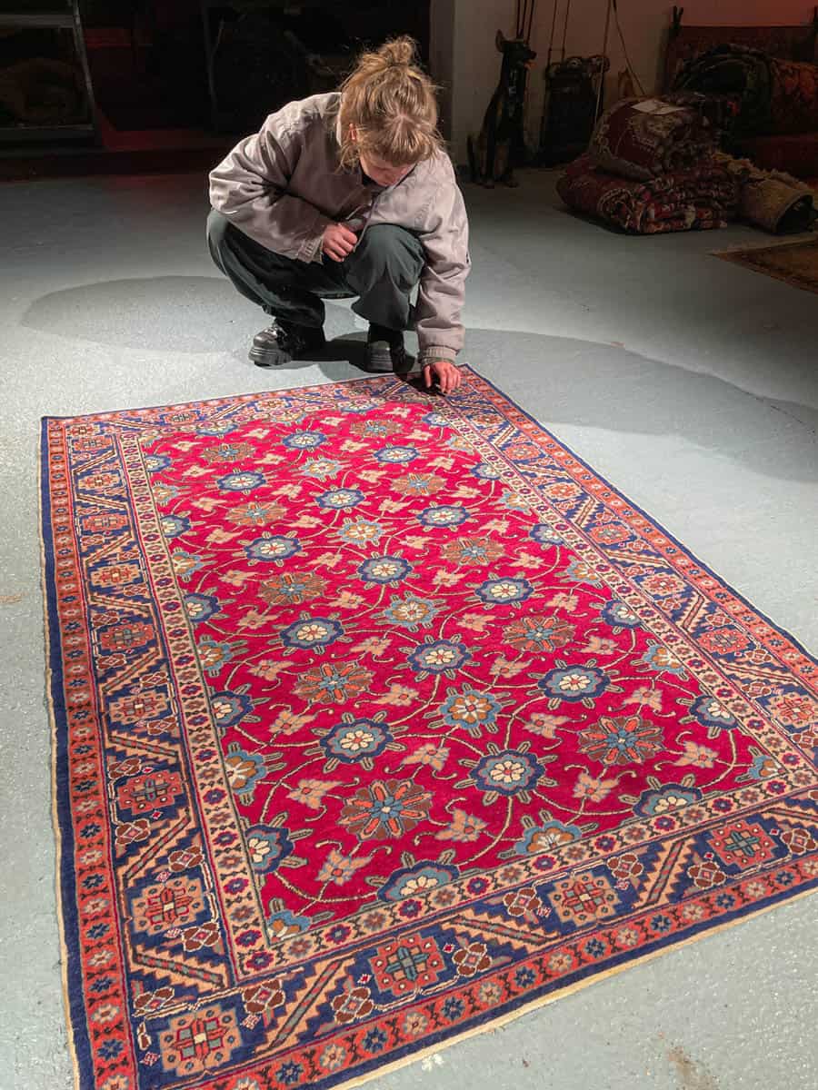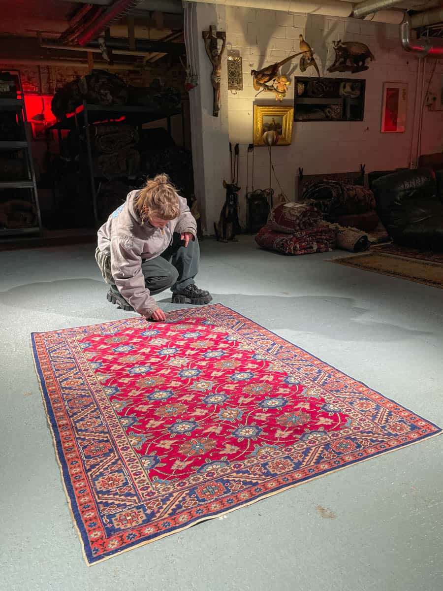 Tämä matto sijaitsee Galleriallamme osoitteessa Kankurinkatu 7, Punavuori – jos haluat tulla katsomaan sitä paikan päälle, sovithan näytön viestitse tai puhelimitse.