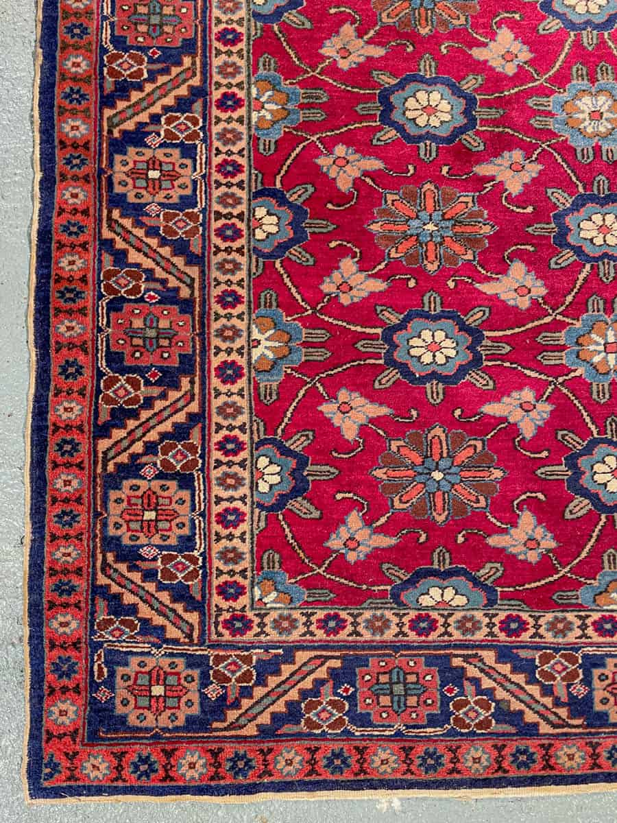 Perinteinen persialainen Veramin perinteisen harmonisen geometrisella kuvioinnilla ja upeana säilyneenä kirkkaalla sinipunaisella väriteemalla.