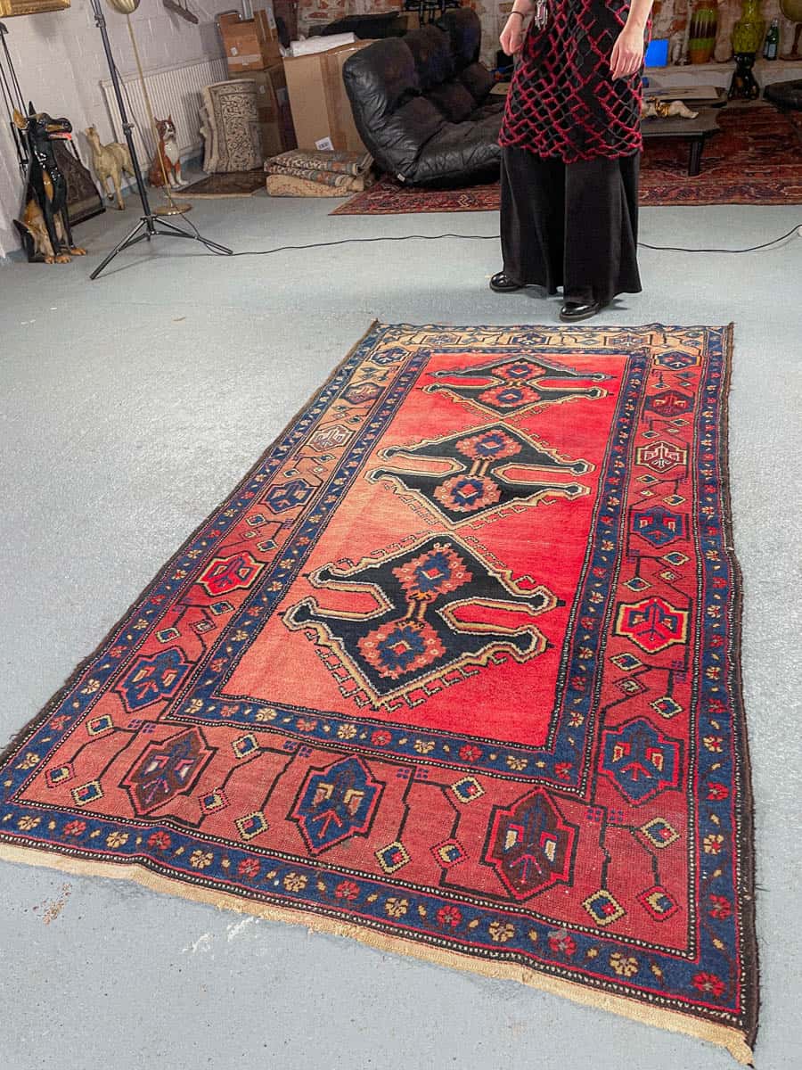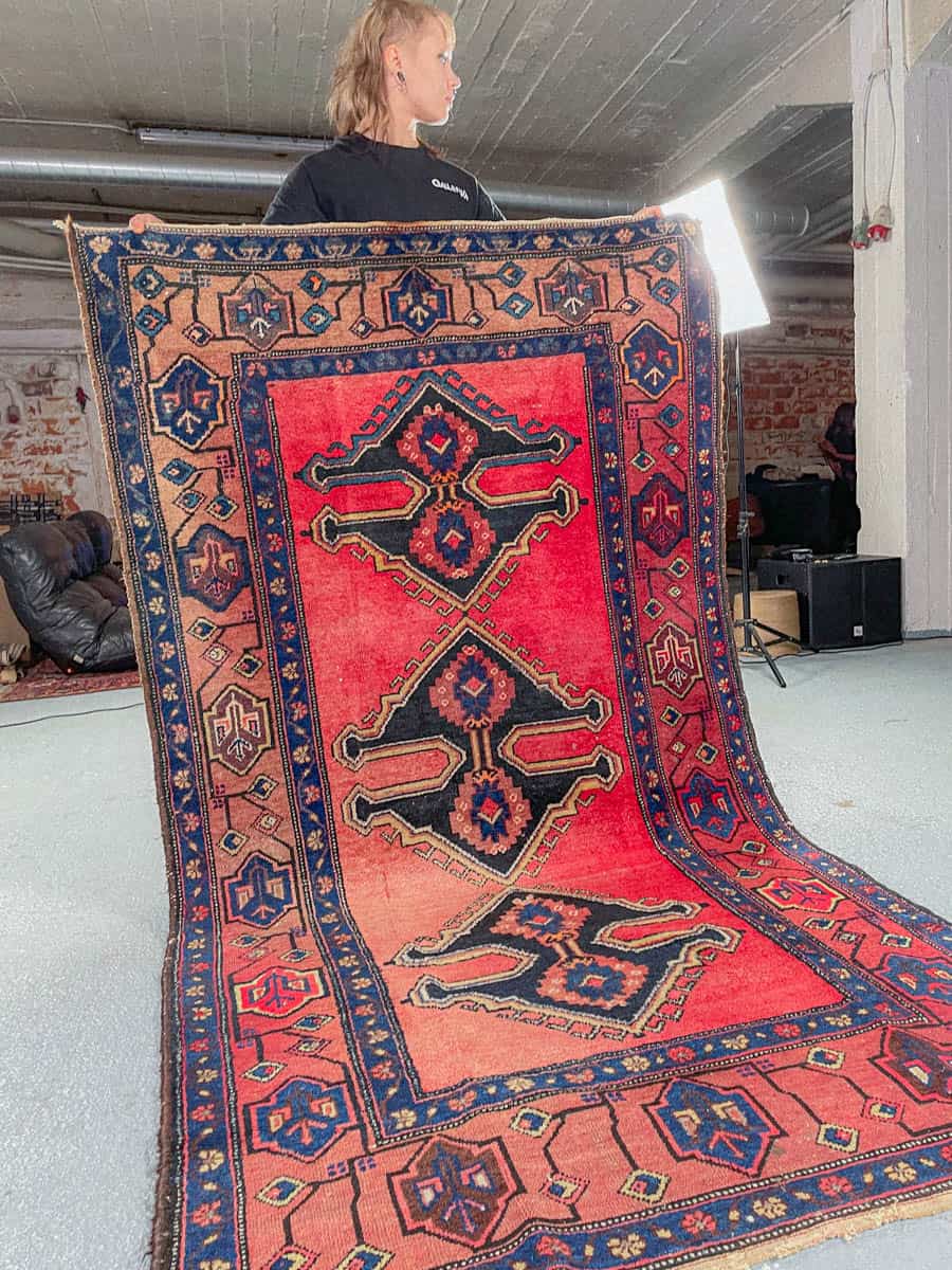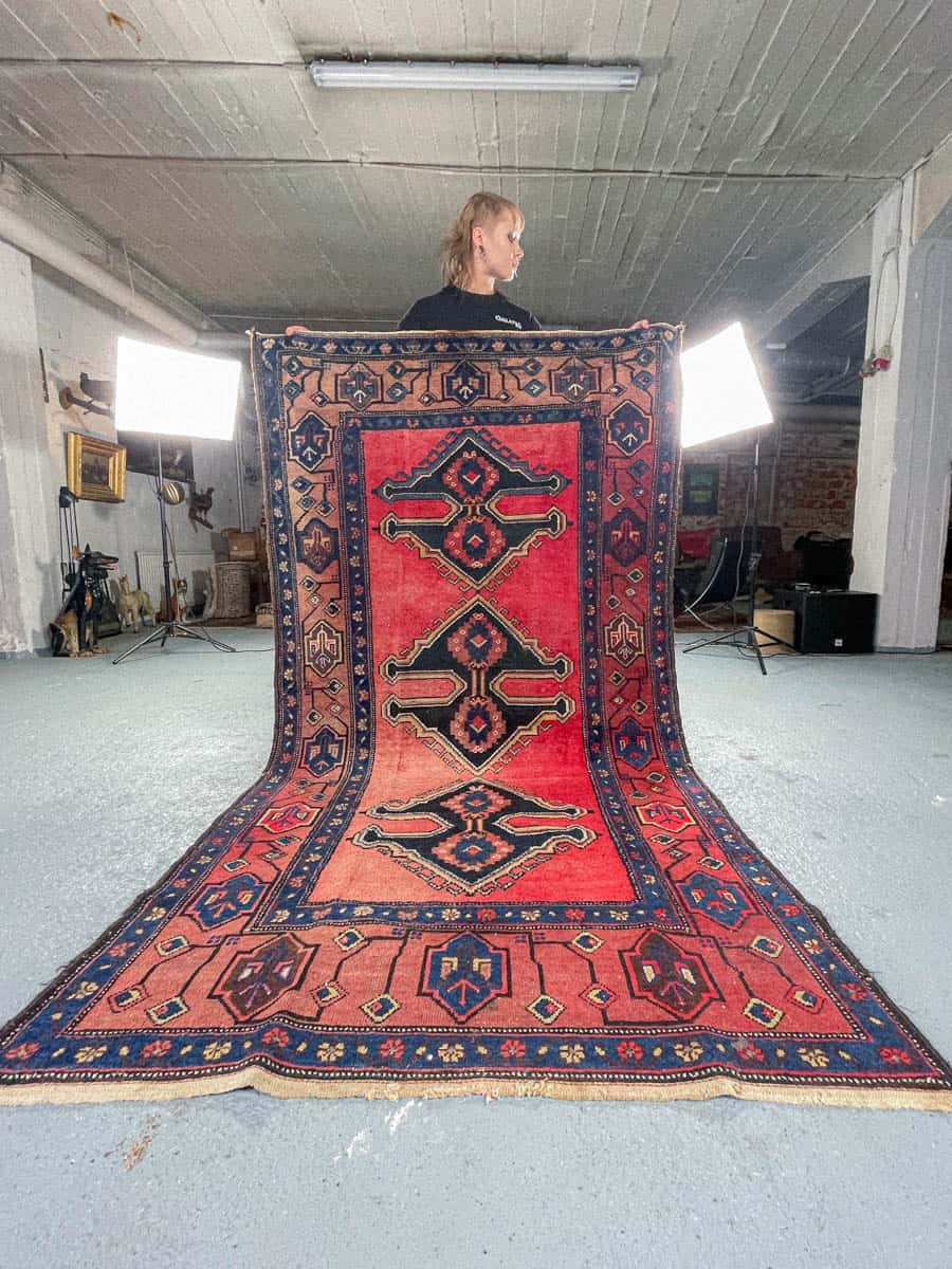 Tämä matto sijaitsee Galleriallamme osoitteessa Kankurinkatu 7, Punavuori – jos haluat tulla katsomaan sitä paikan päälle, sovithan näytön viestitse tai puhelimitse.