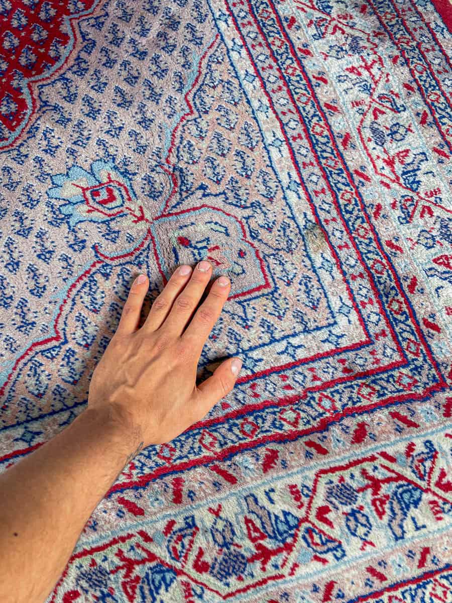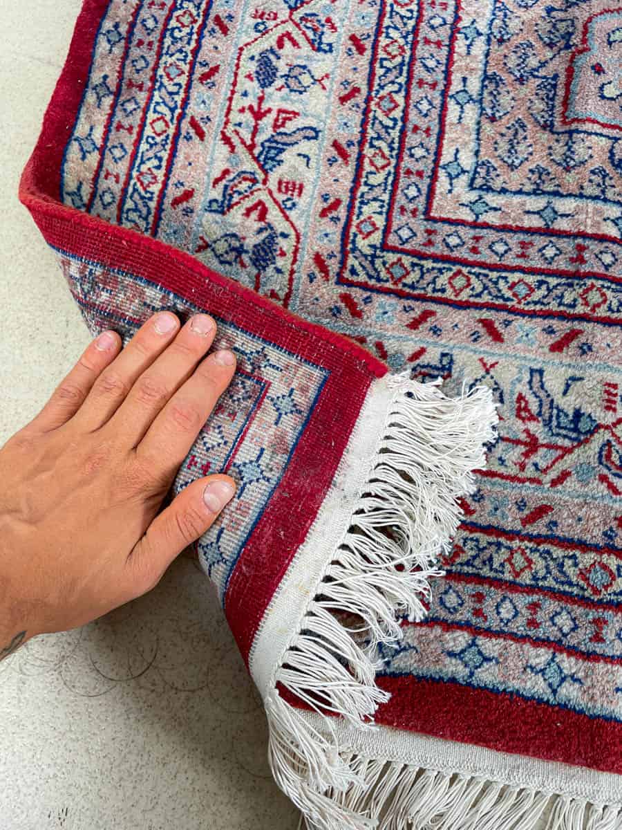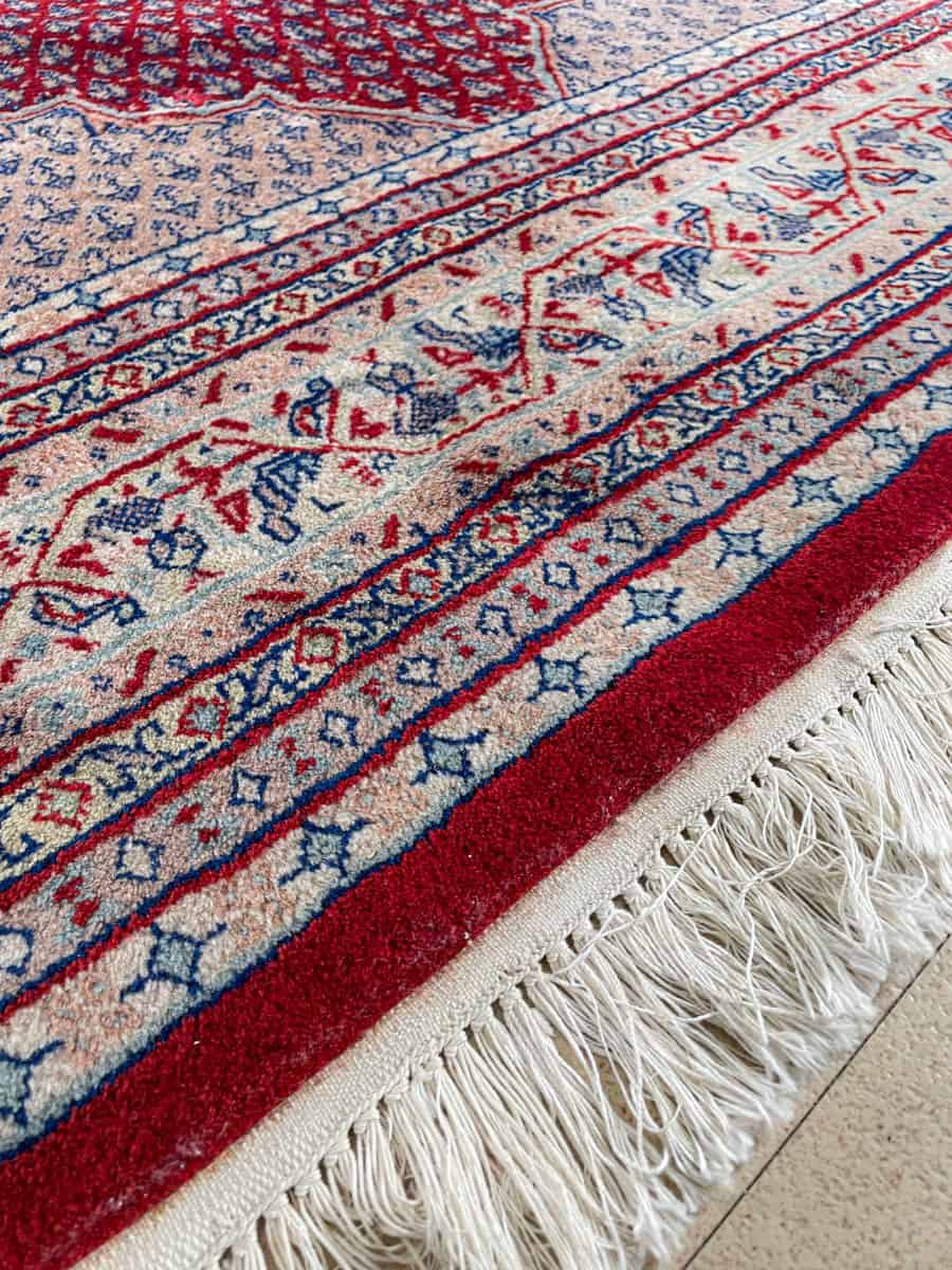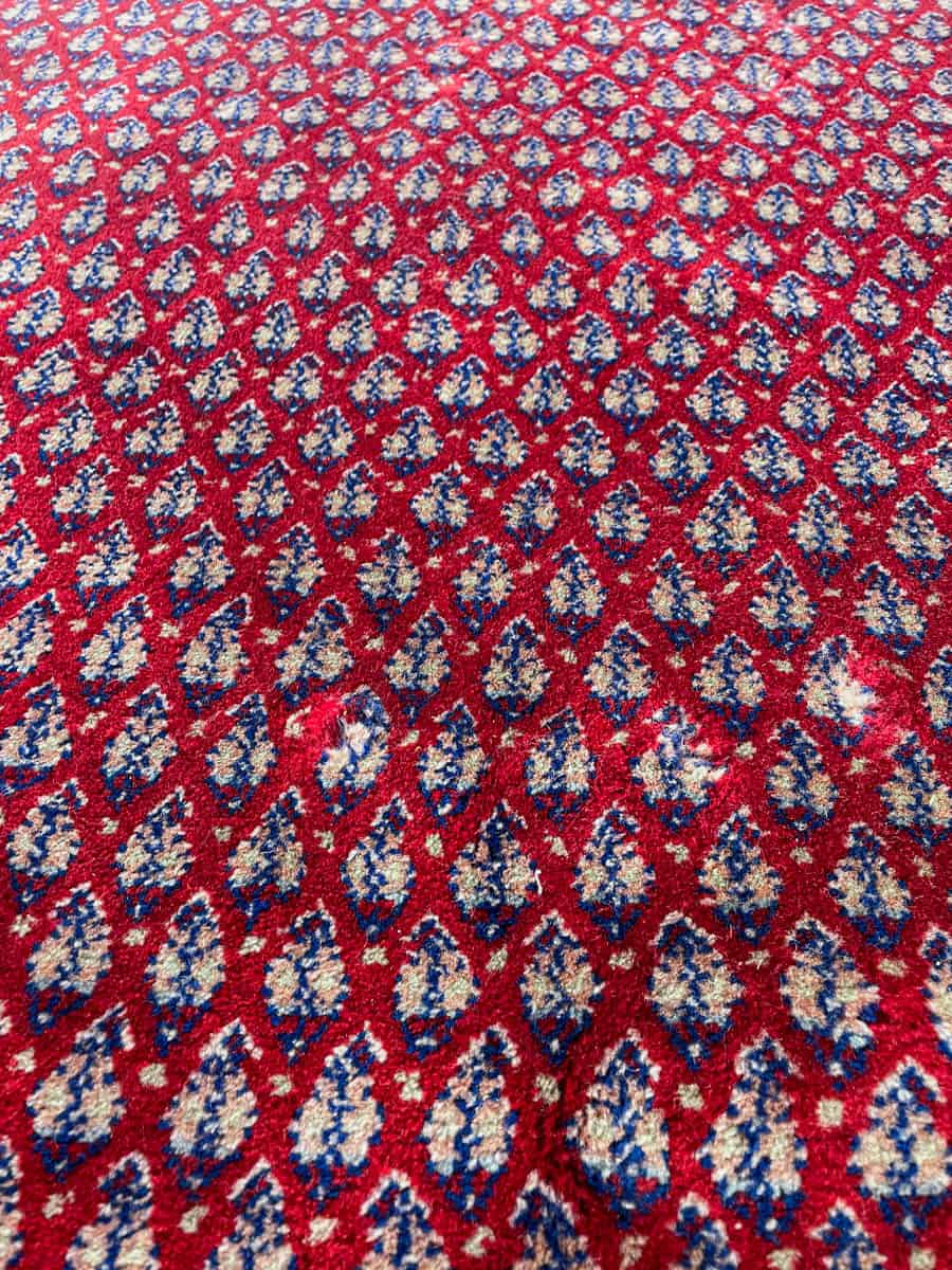 Tämä matto sijaitsee Töölön varastollamme – jos haluat tulla katsomaan sitä paikan päälle, sovithan näytön viestitse tai puhelimitse.