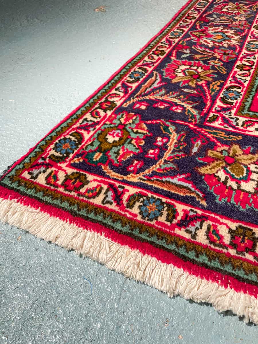 Perinteisen harmoninen Tabriz-matoille ominainen kasvi- ja ornamenttiaiheinen kuviointi kauniilla keskimedaljongilla. Upean kirkkaana säilynyt tyylikäs väripaletti.