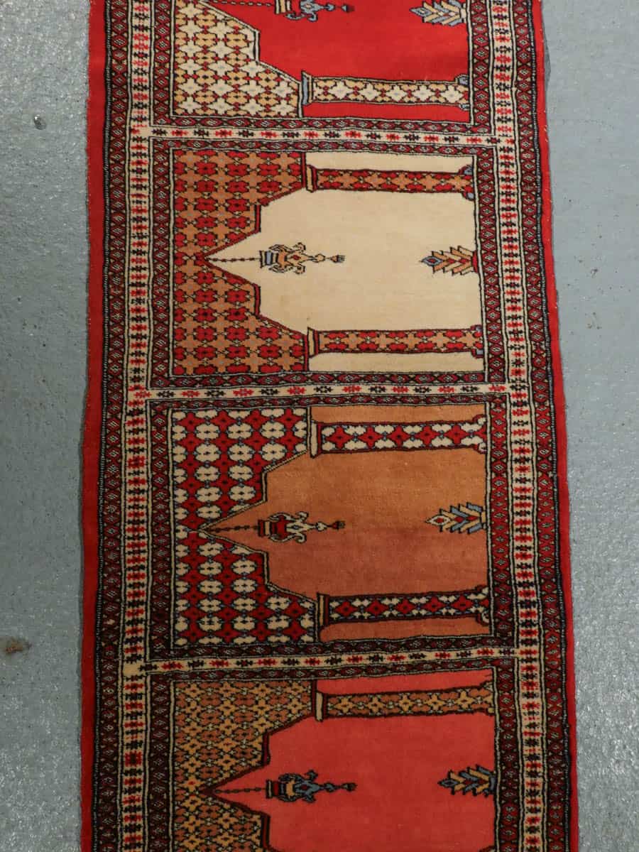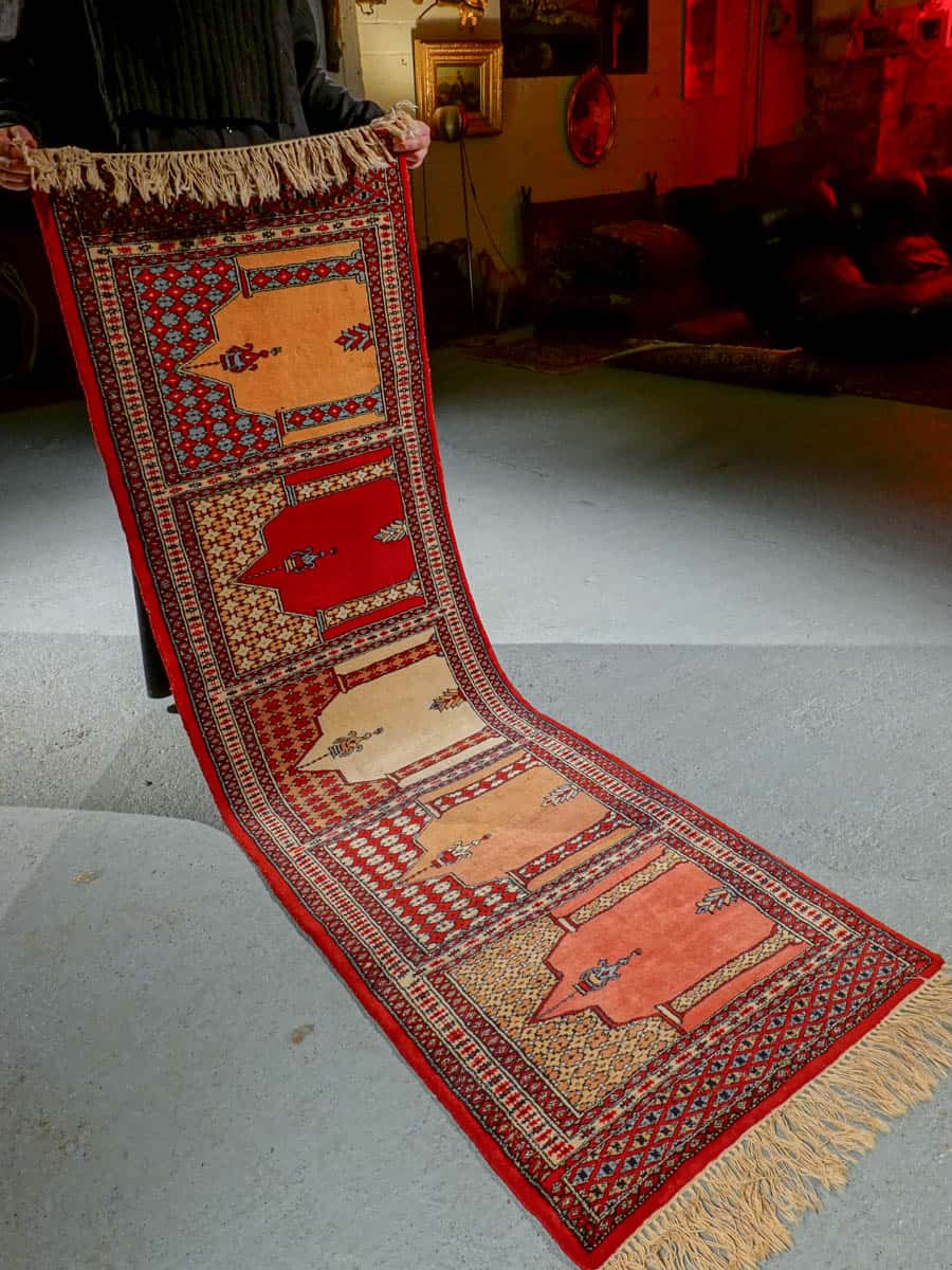Upea pitkä Kayseri harmonisella väriteemalla ja sievällä arkkitehtoonisella kuvioinnilla. Käsinsolmittu villasta.