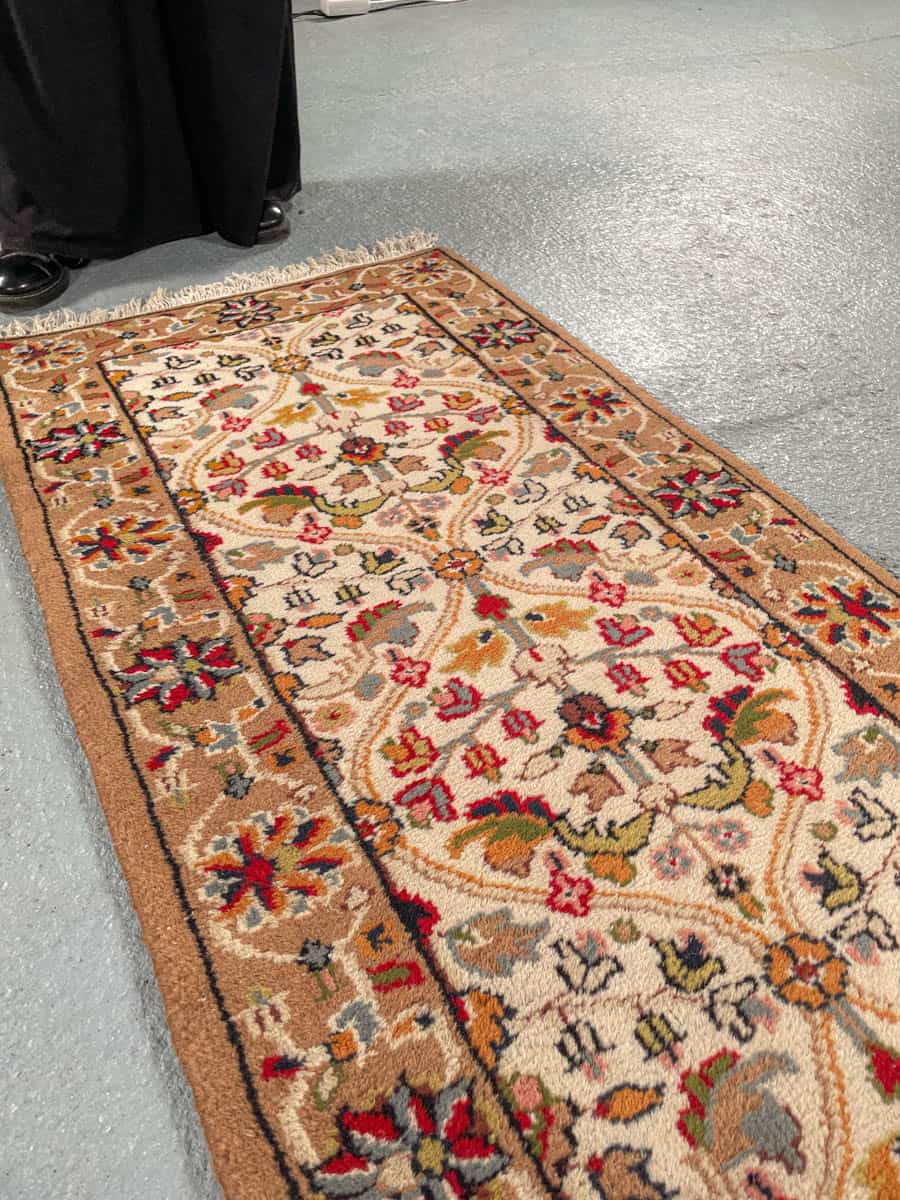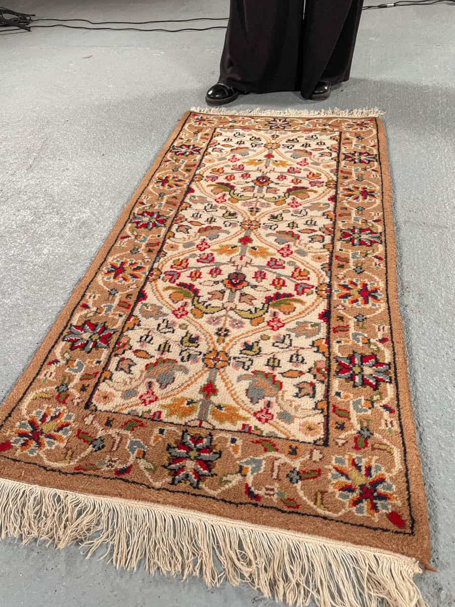 Tämä matto sijaitsee Galleriallamme osoitteessa Kankurinkatu 7, Punavuori – jos haluat tulla katsomaan sitä paikan päälle, sovithan näytön viestitse tai puhelimitse.