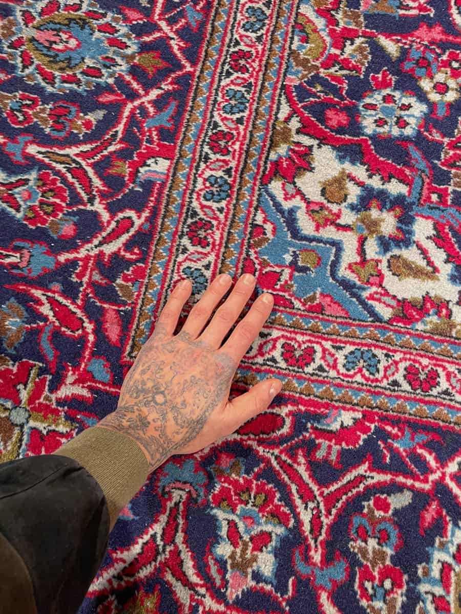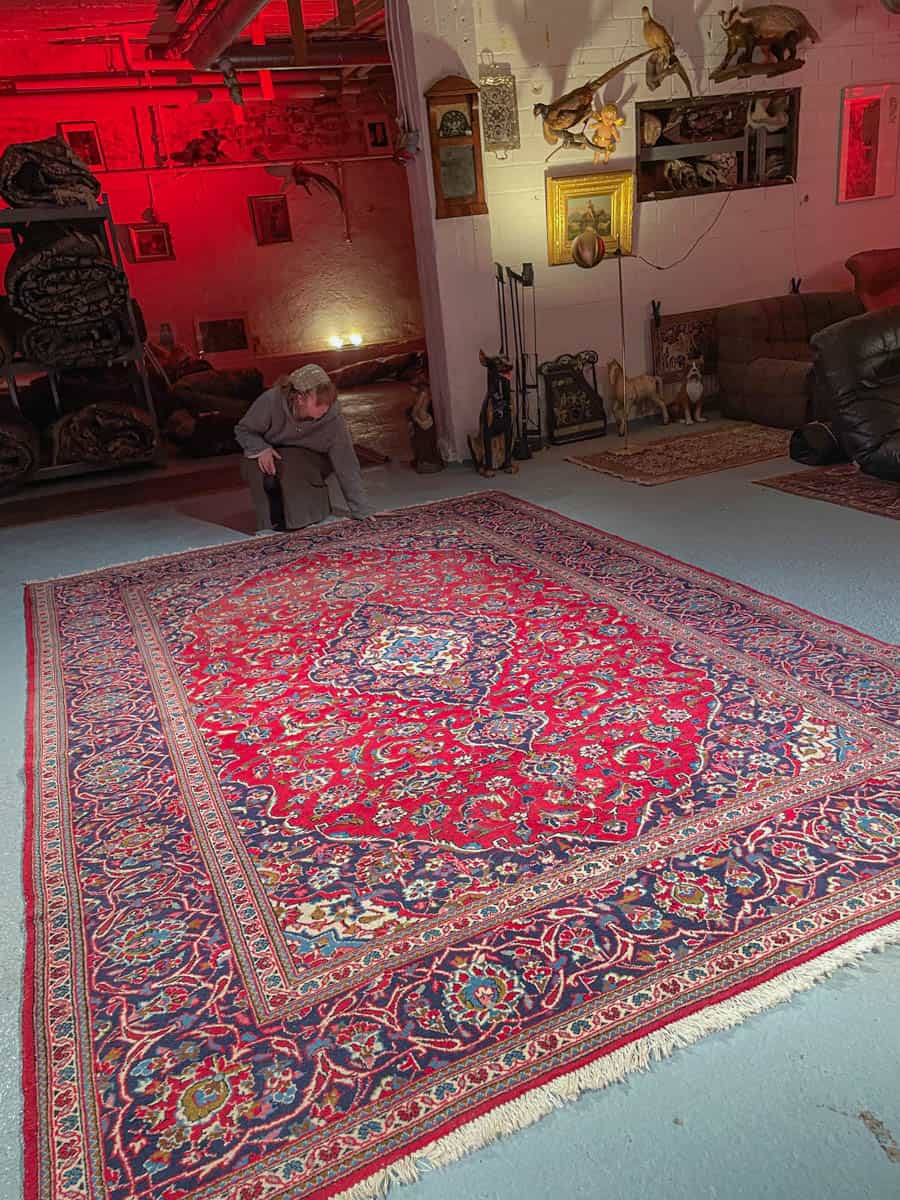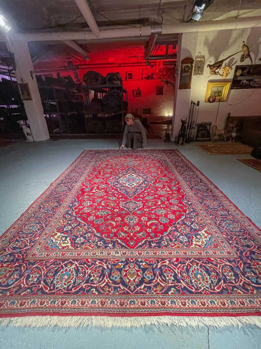 Tämä matto sijaitsee Galleriallamme osoitteessa Kankurinkatu 7, Punavuori – jos haluat tulla katsomaan sitä paikan päälle, sovithan näytön viestitse tai puhelimitse.