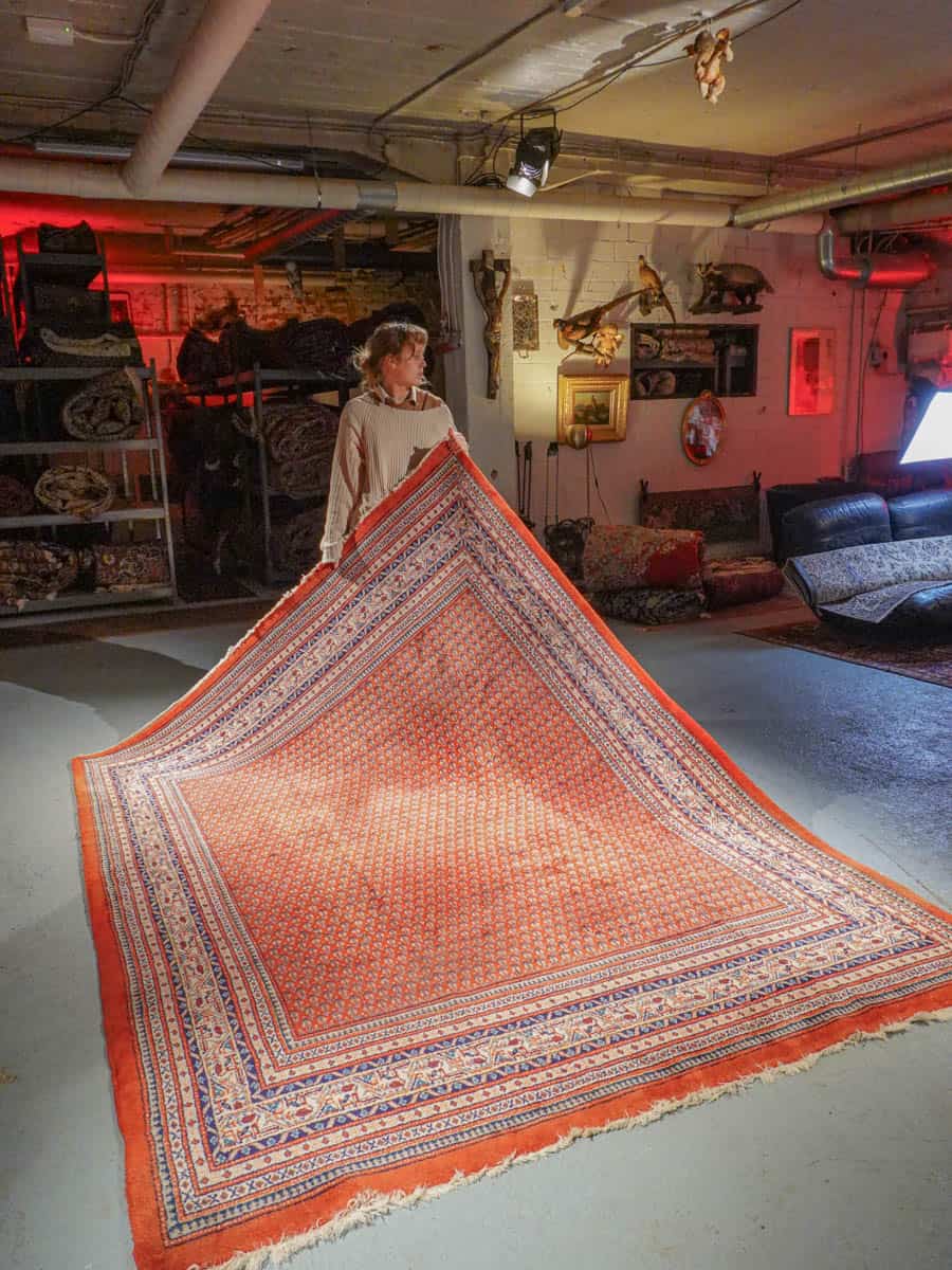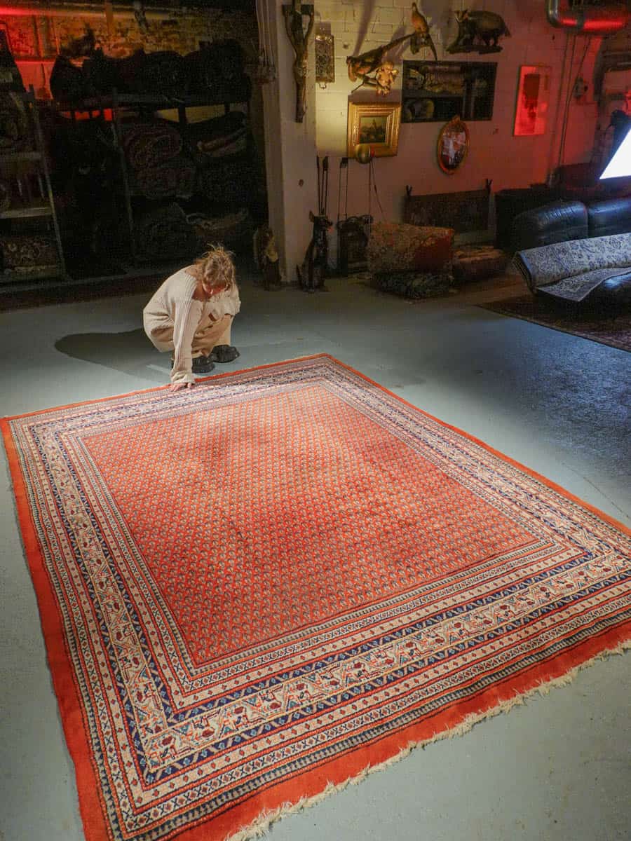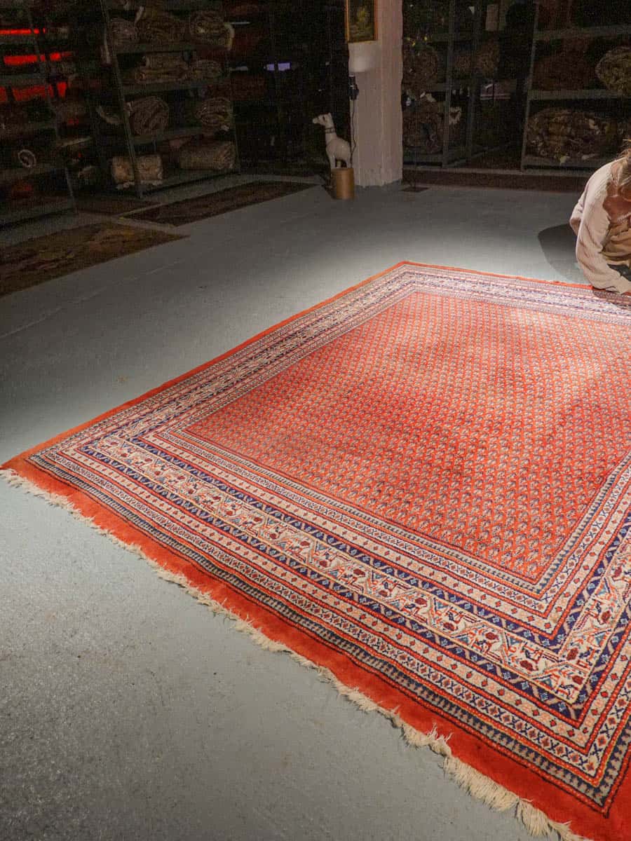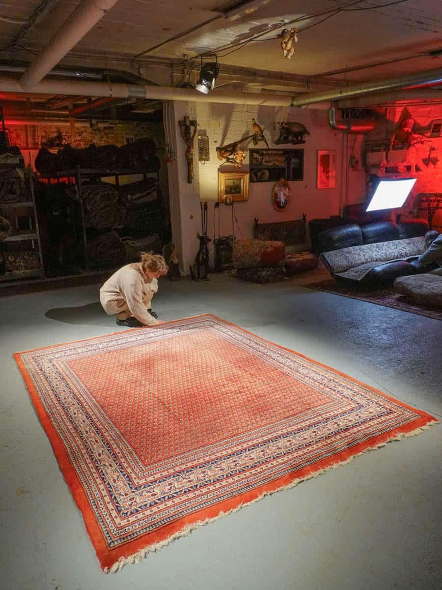 Tämä matto sijaitsee Galleriallamme osoitteessa Kankurinkatu 7, Punavuori – jos haluat tulla katsomaan sitä paikan päälle, sovithan näytön viestitse tai puhelimitse.