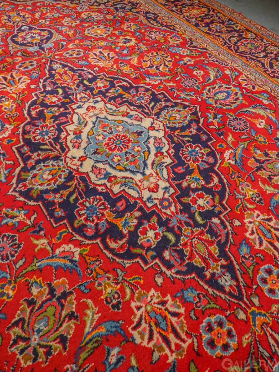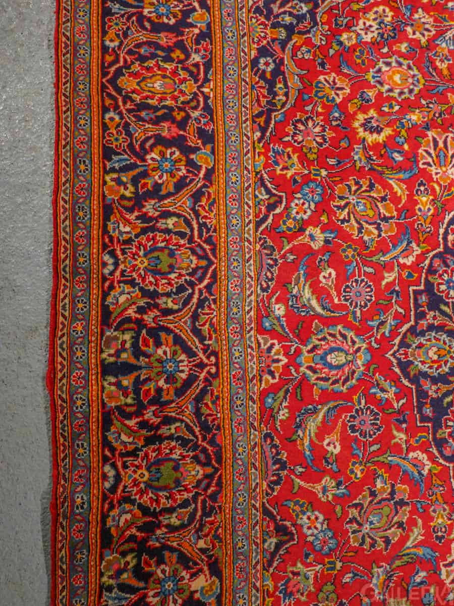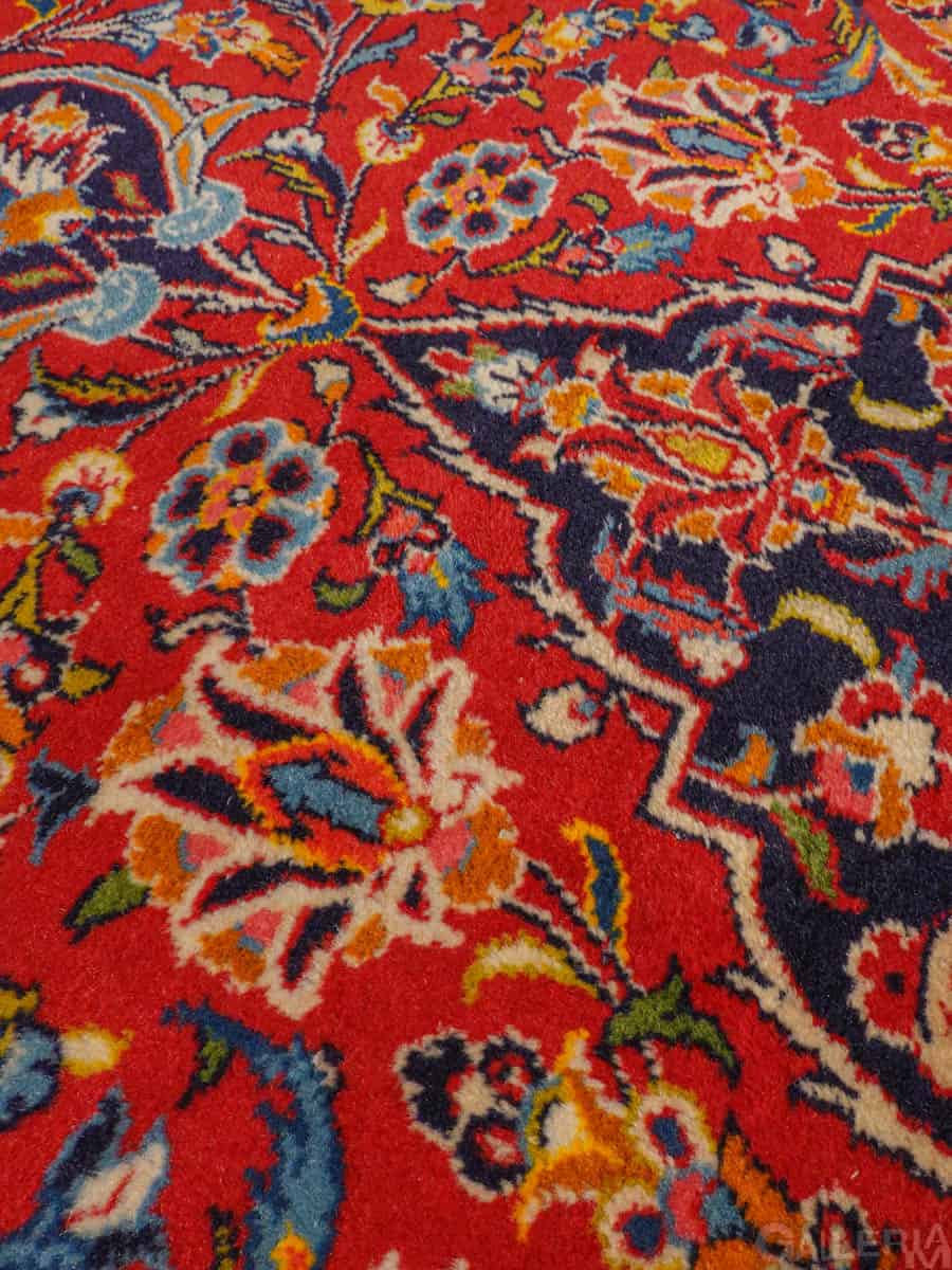 Käsinsolmittu perinteiseen persialaiseen Keshan-tyyliin. Kaunis ja perinteinen kuviointi keskimedaljongilla. Upeana säilynyt väritys. Käsinsolmittu villasta.