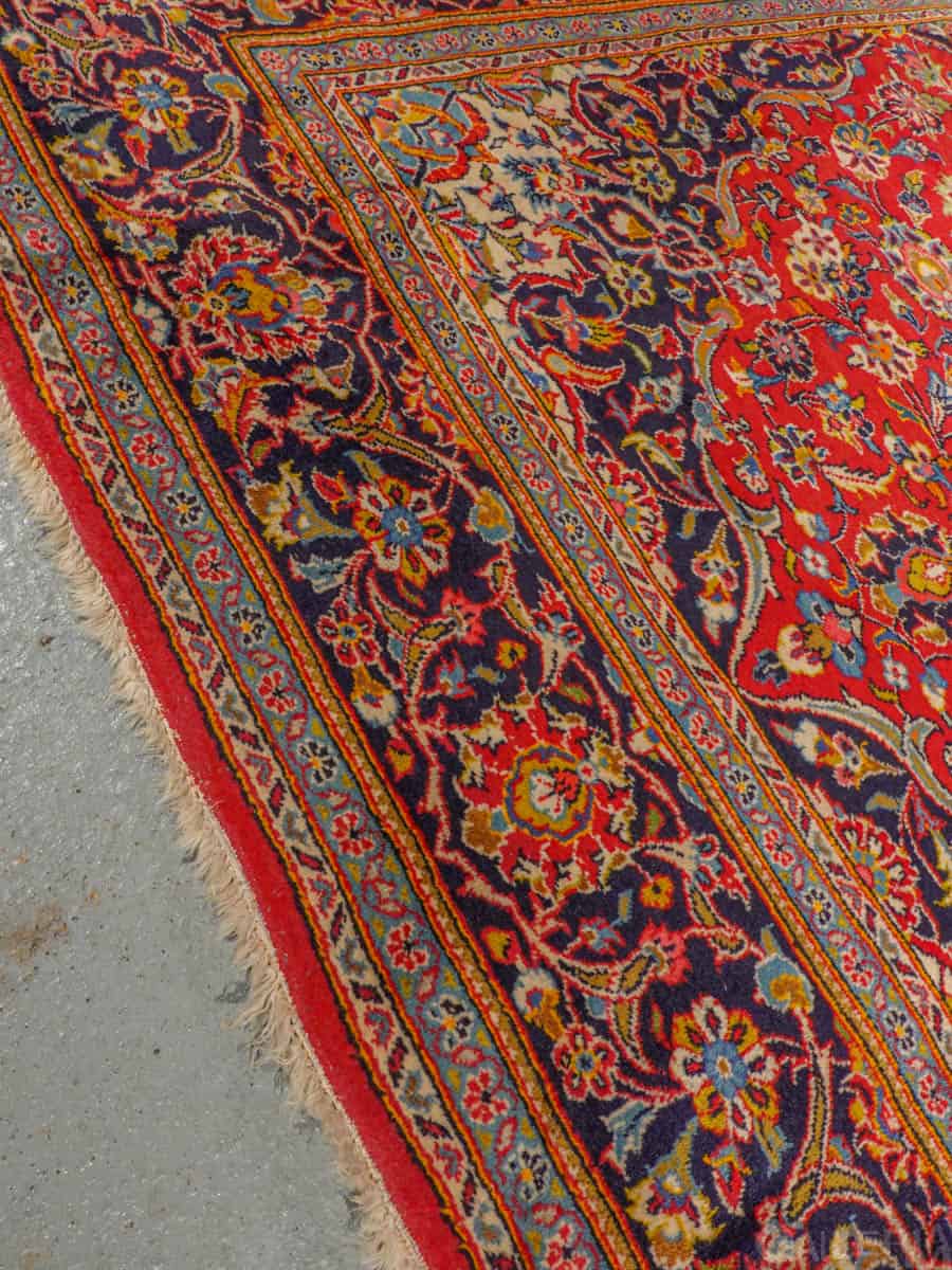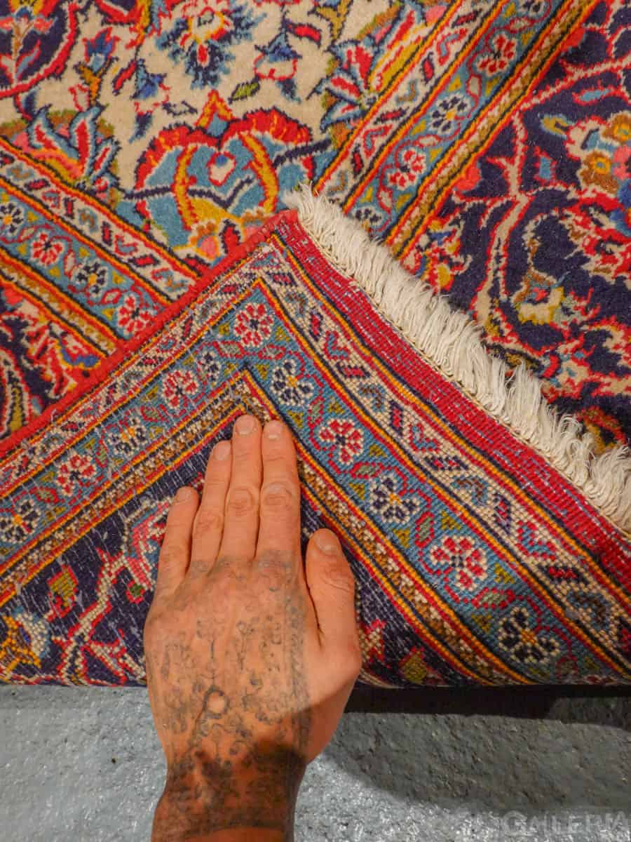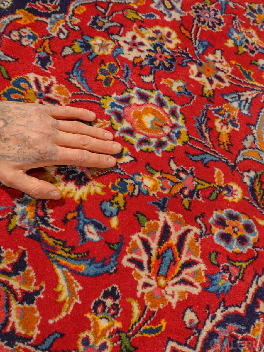 Käsinsolmittu perinteiseen persialaiseen Keshan-tyyliin. Kaunis ja perinteinen kuviointi keskimedaljongilla. Upeana säilynyt väritys. Käsinsolmittu villasta.