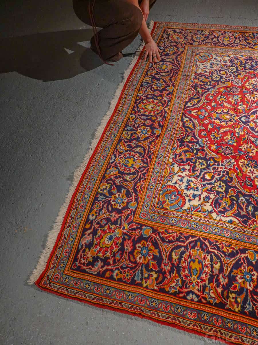 Tämä matto sijaitsee Galleriallamme osoitteessa Kankurinkatu 7, Punavuori – jos haluat tulla katsomaan sitä paikan päälle, sovithan näytön viestitse tai puhelimitse.