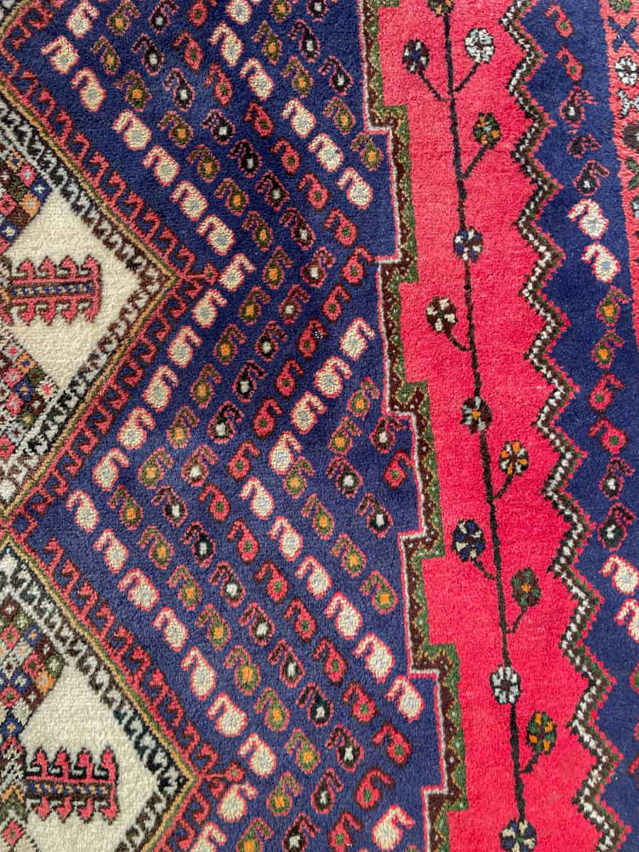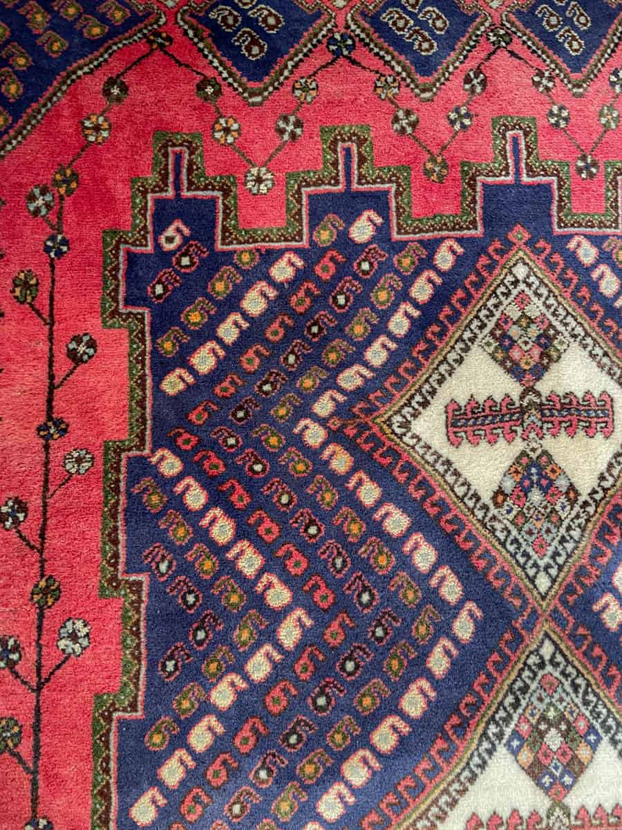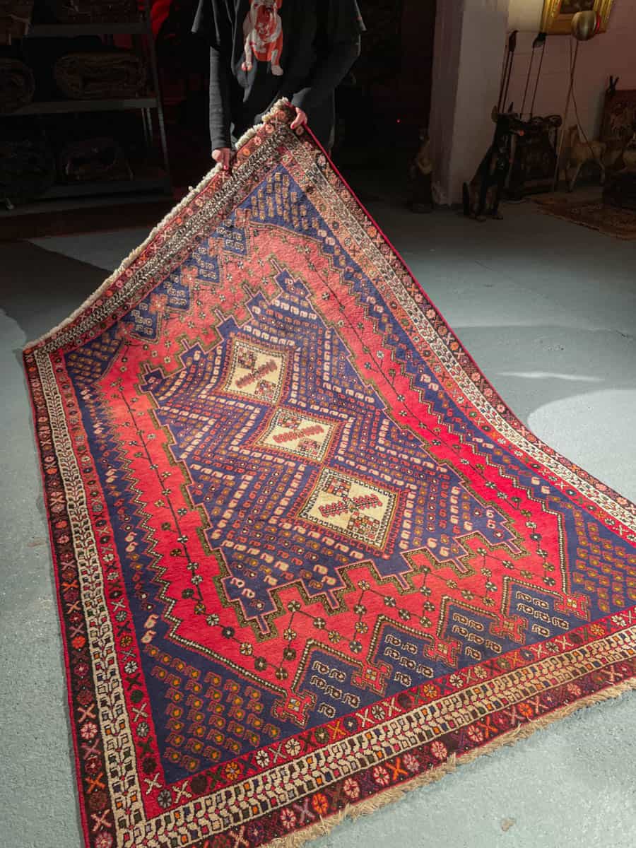 Tyylikäs persialainen Afshar geometrisella kuvioinnilla ja kodikkailla väreillä. Käsinsolmittu villasta.