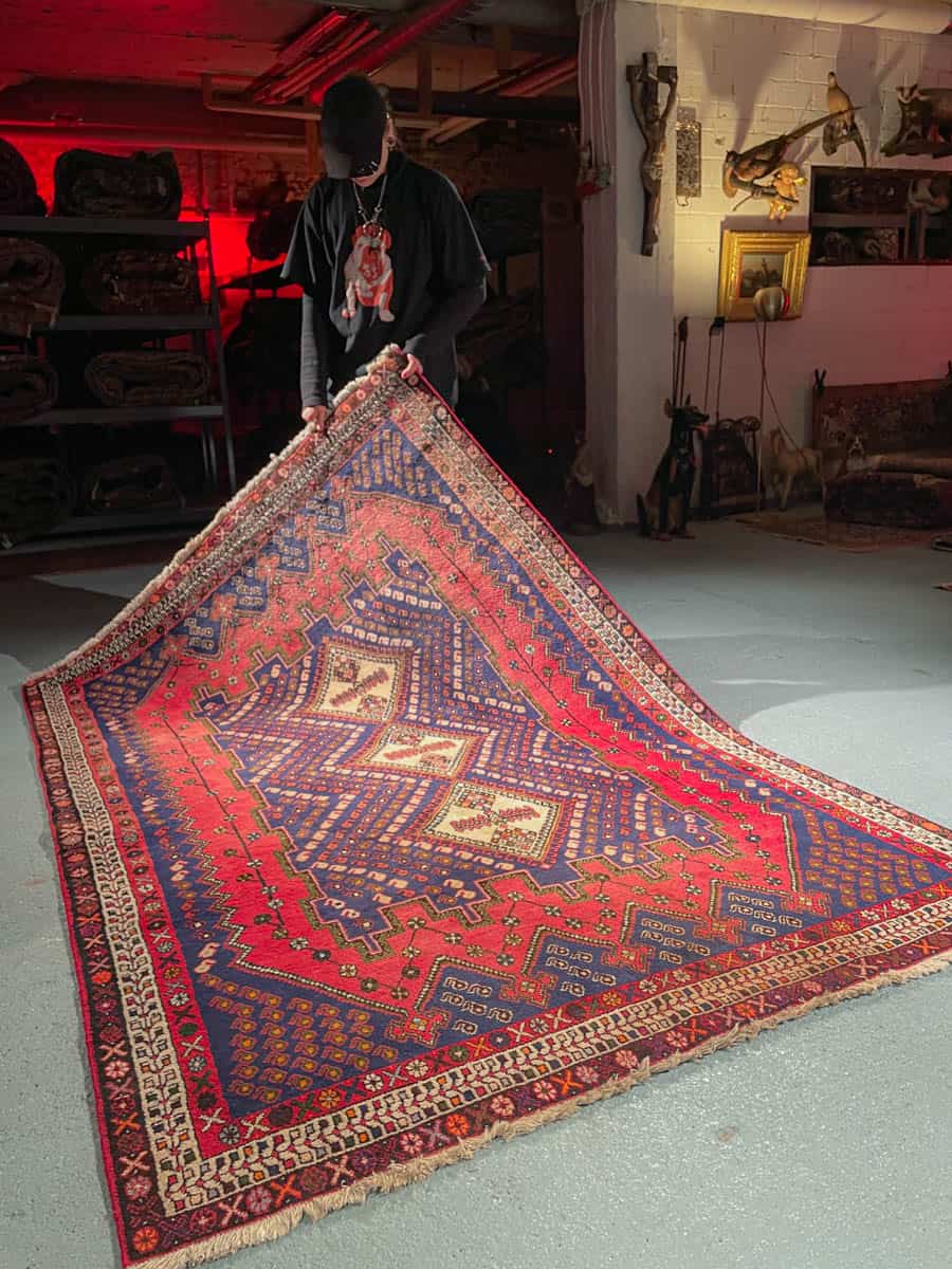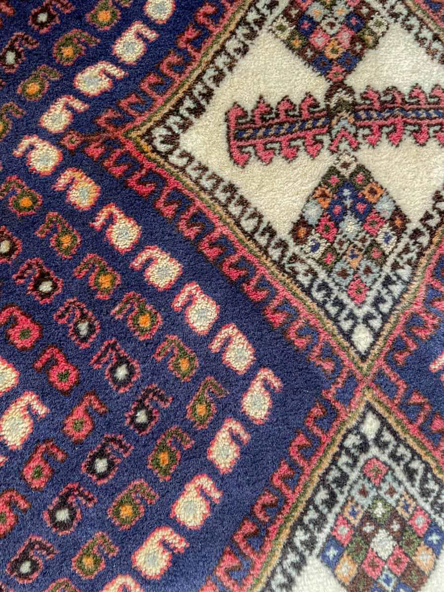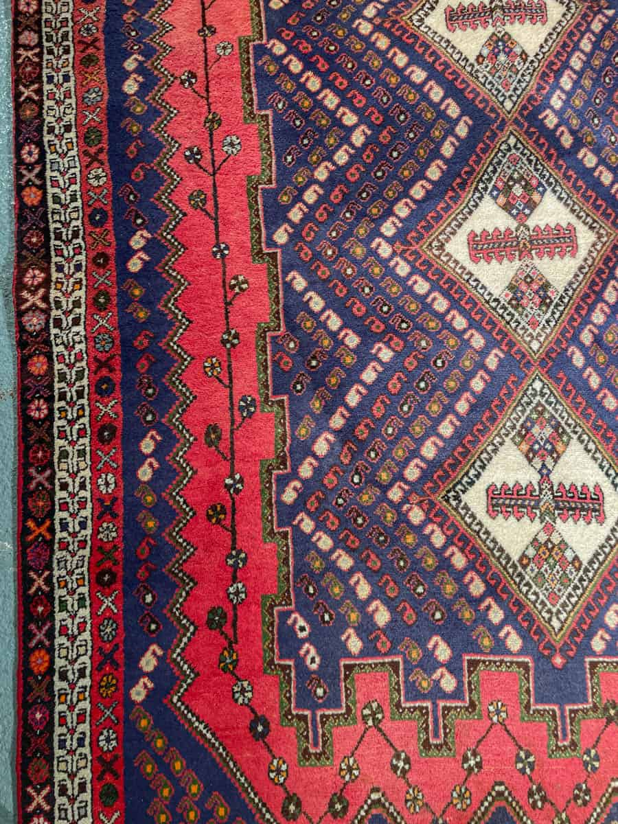 Tyylikäs persialainen Afshar geometrisella kuvioinnilla ja kodikkailla väreillä. Käsinsolmittu villasta.