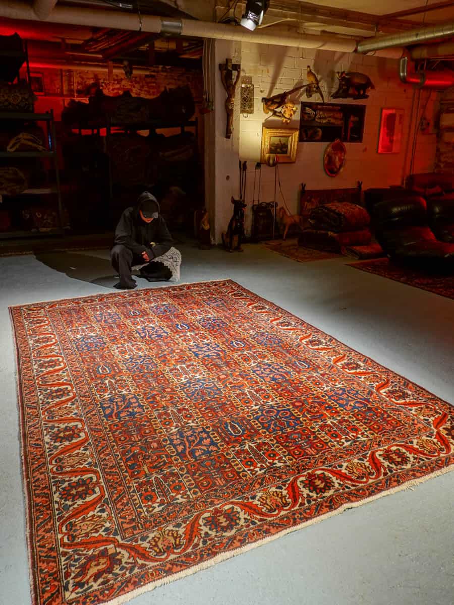 Tämä matto sijaitsee Galleriallamme osoitteessa Kankurinkatu 7, Punavuori – jos haluat tulla katsomaan sitä paikan päälle, sovithan näytön viestitse tai puhelimitse.
