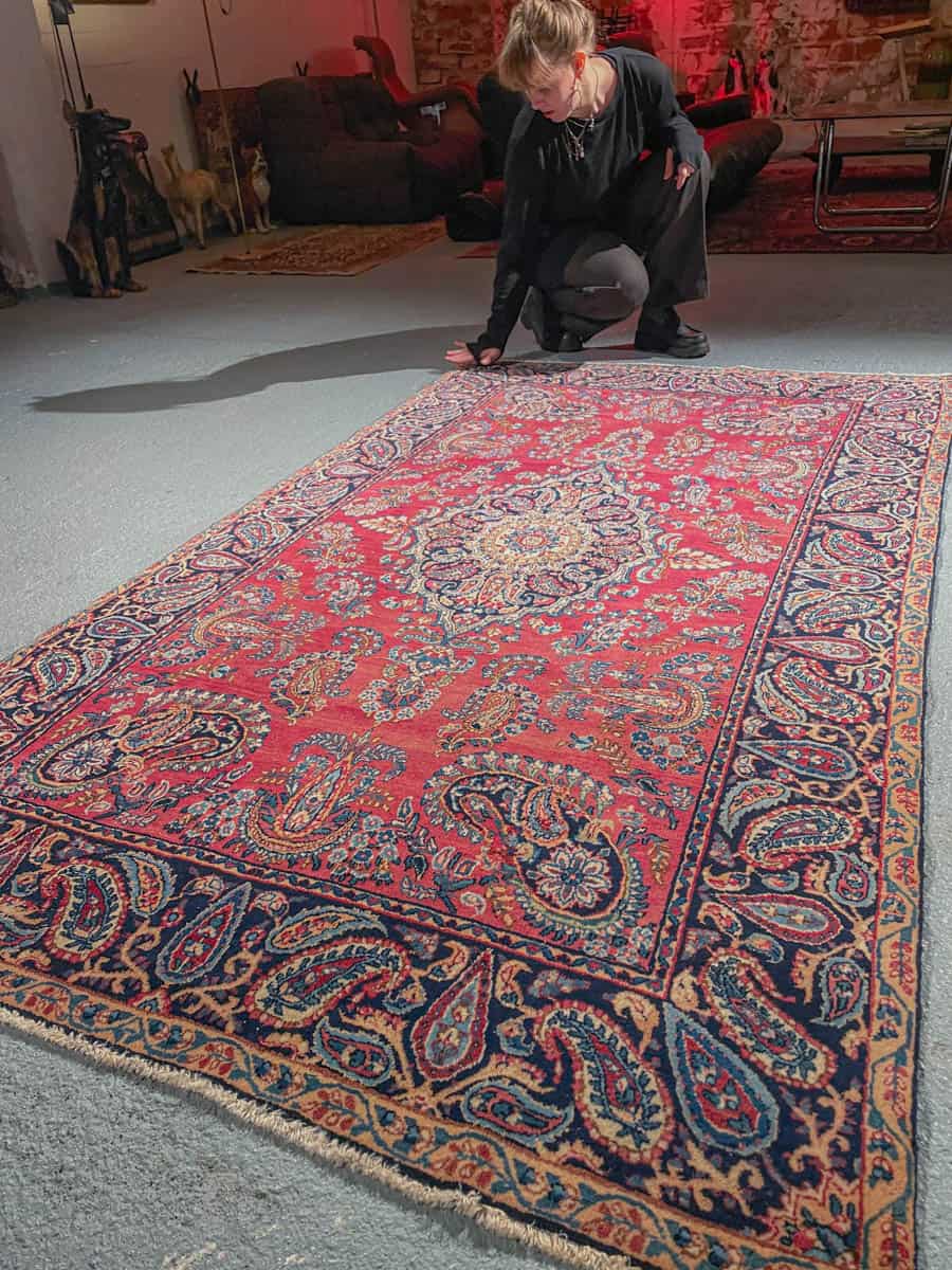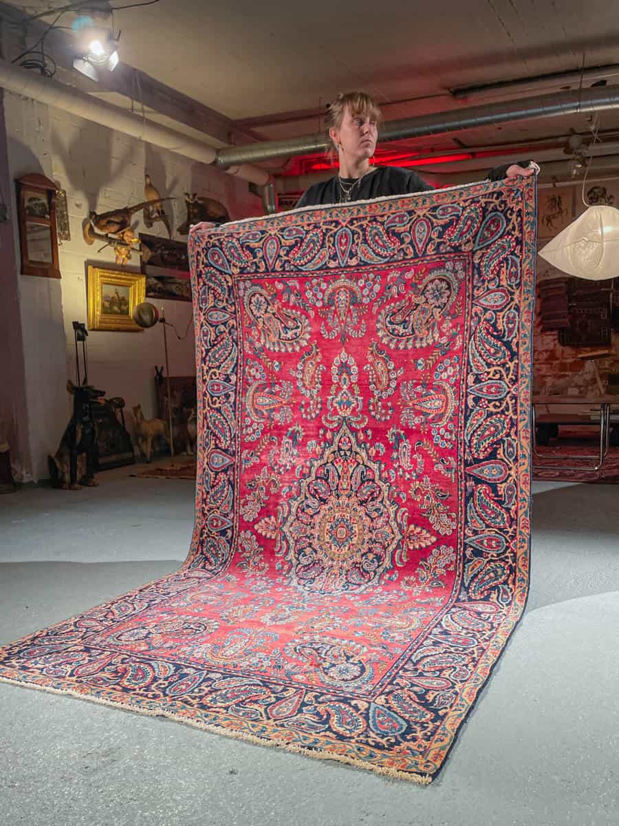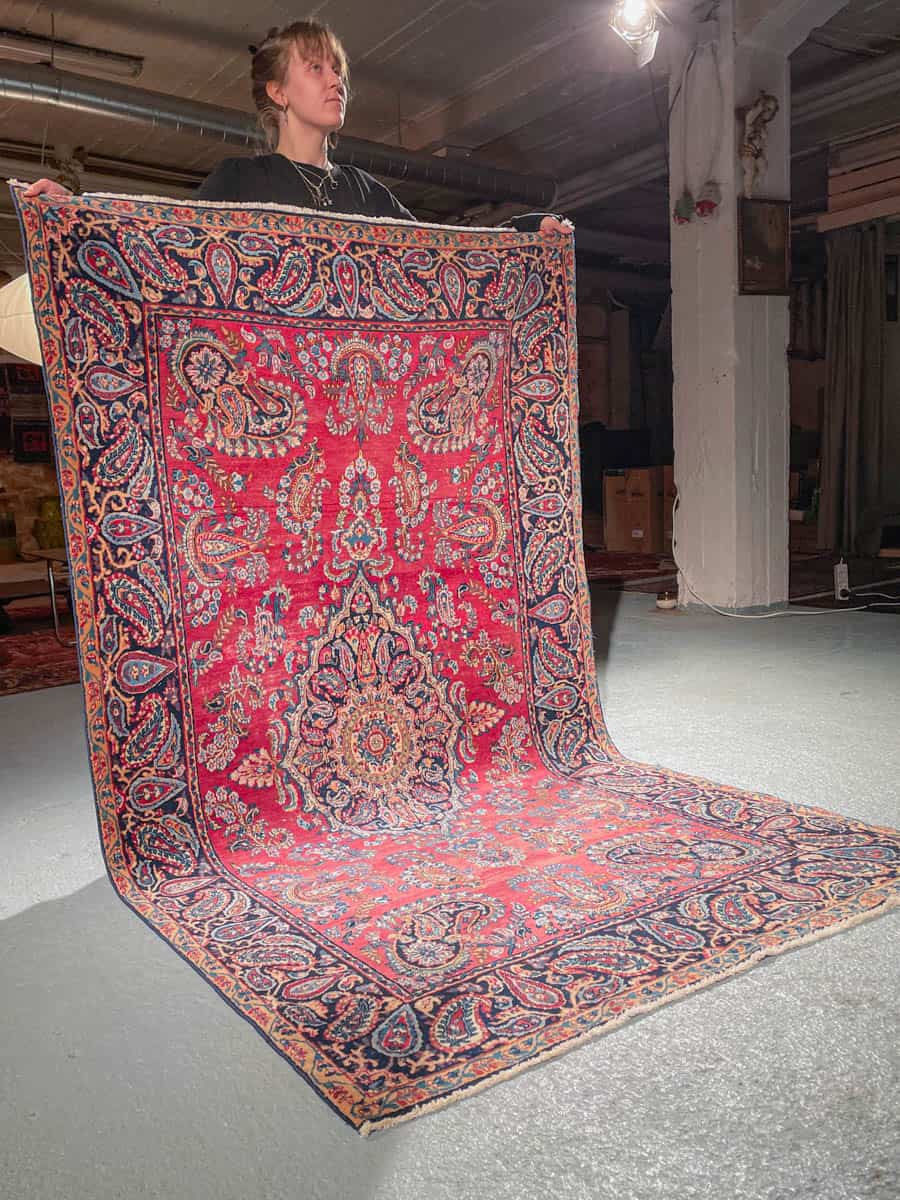 Tämä matto sijaitsee Galleriallamme osoitteessa Kankurinkatu 7, Punavuori – jos haluat tulla katsomaan sitä paikan päälle, sovithan näytön viestitse tai puhelimitse.
