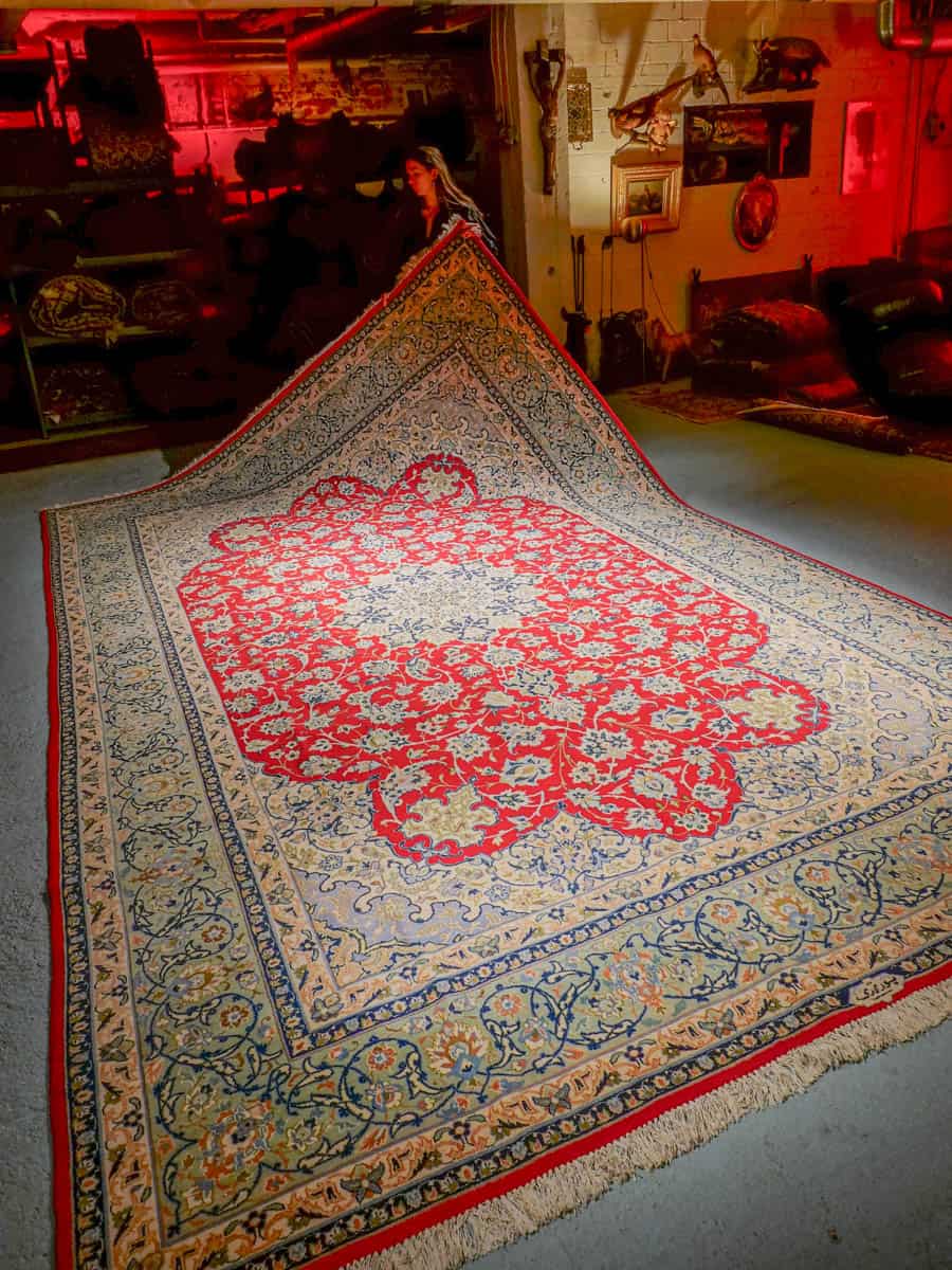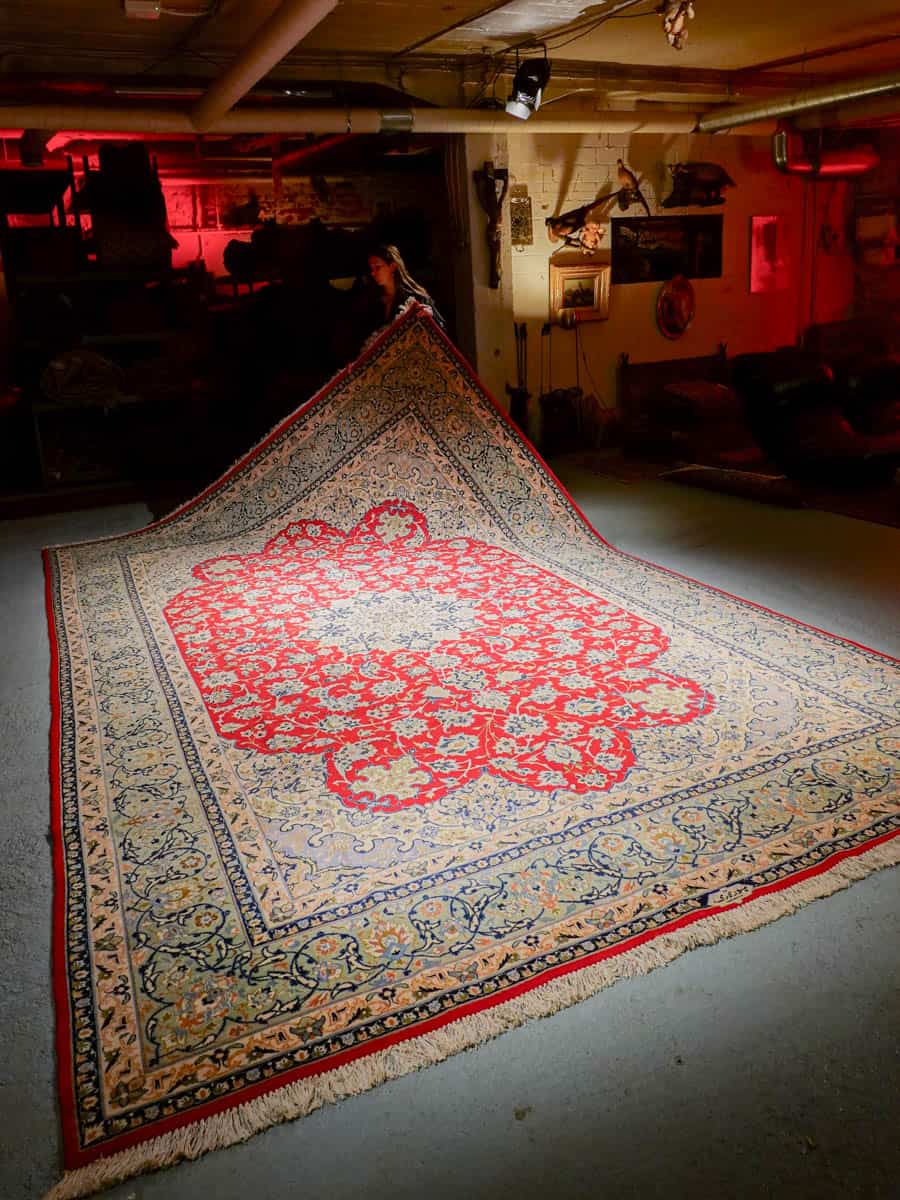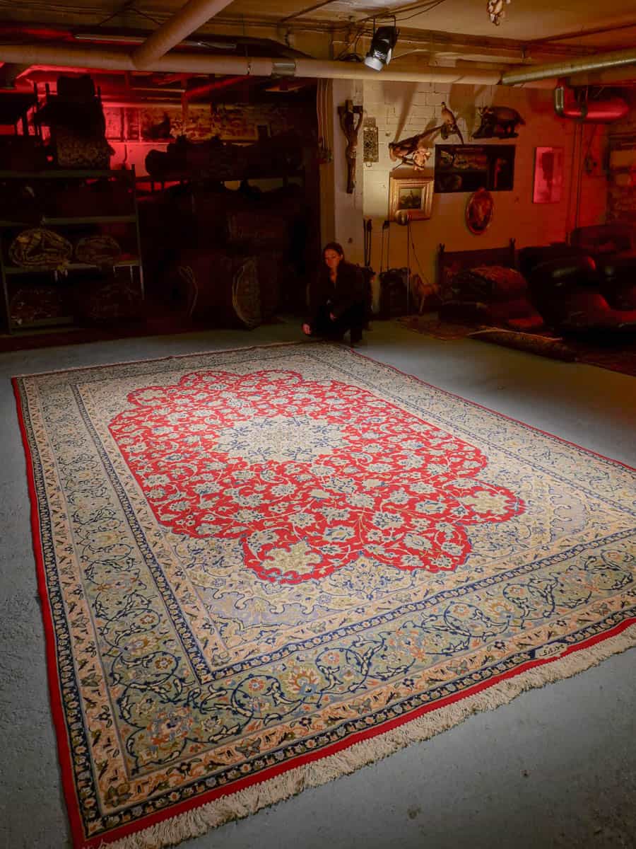 Tämä matto sijaitsee Galleriallamme osoitteessa Kankurinkatu 7, Punavuori – jos haluat tulla katsomaan sitä paikan päälle, sovithan näytön viestitse tai puhelimitse.
