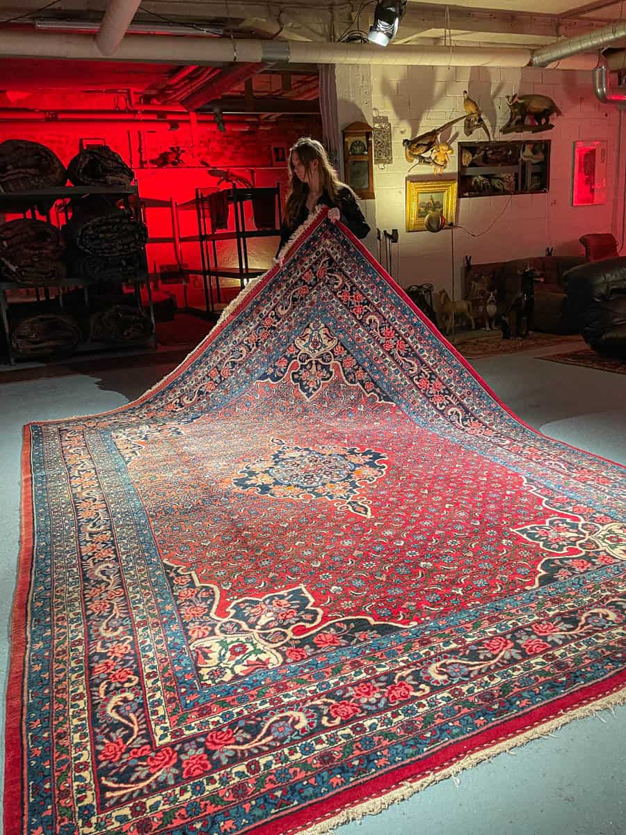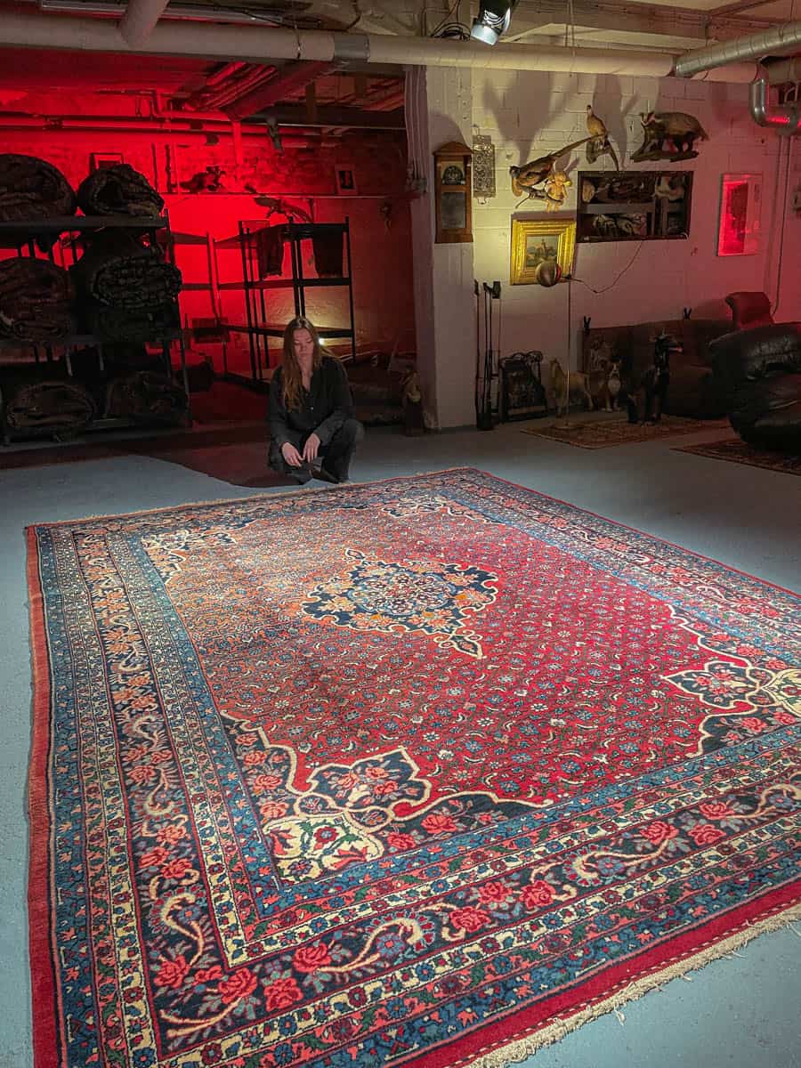 Tämä matto sijaitsee Galleriallamme osoitteessa Kankurinkatu 7, Punavuori – jos haluat tulla katsomaan sitä paikan päälle, sovithan näytön viestitse tai puhelimitse.