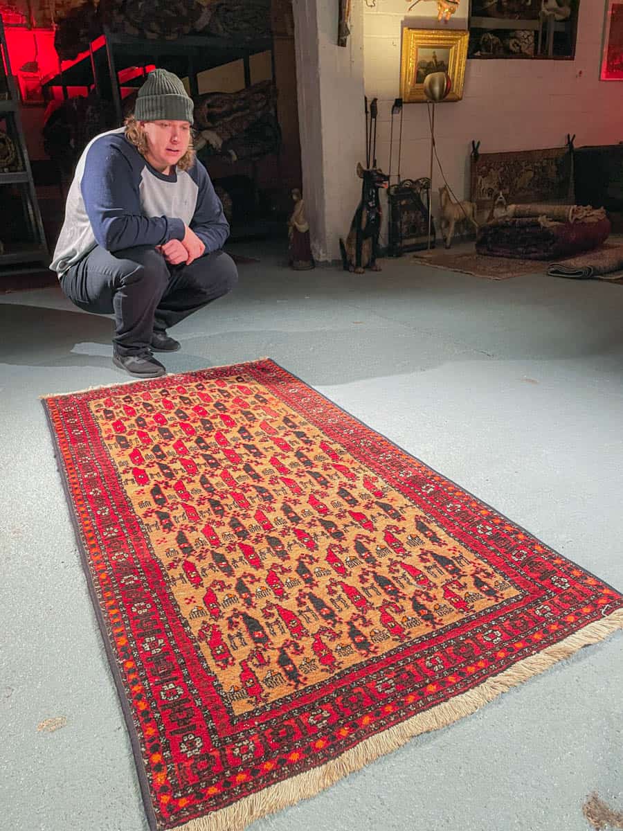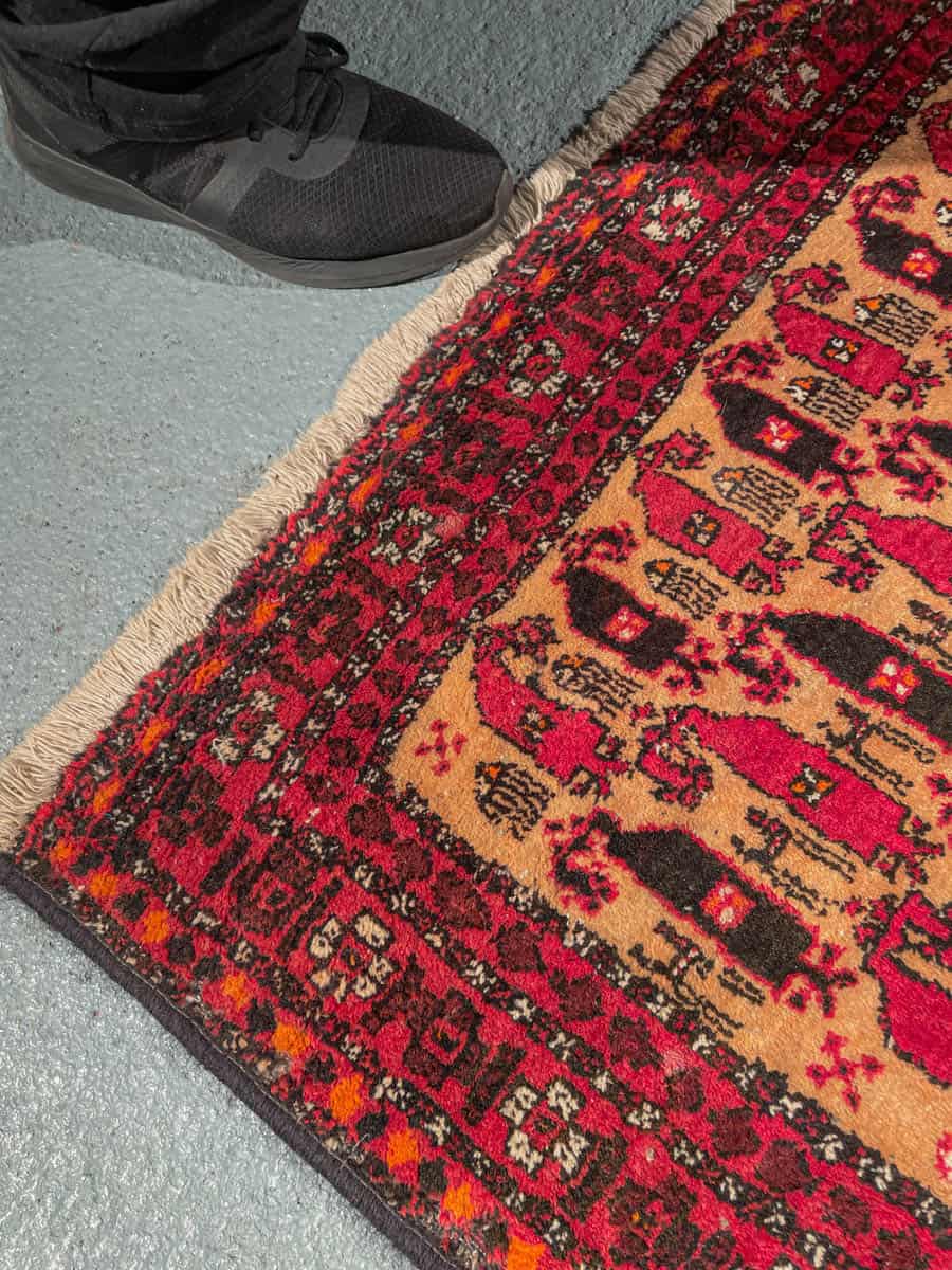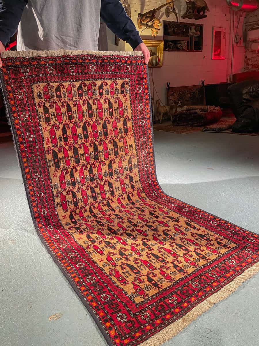 Tämä matto sijaitsee Galleriallamme osoitteessa Kankurinkatu 7, Punavuori – jos haluat tulla katsomaan sitä paikan päälle, sovithan näytön viestitse tai puhelimitse.