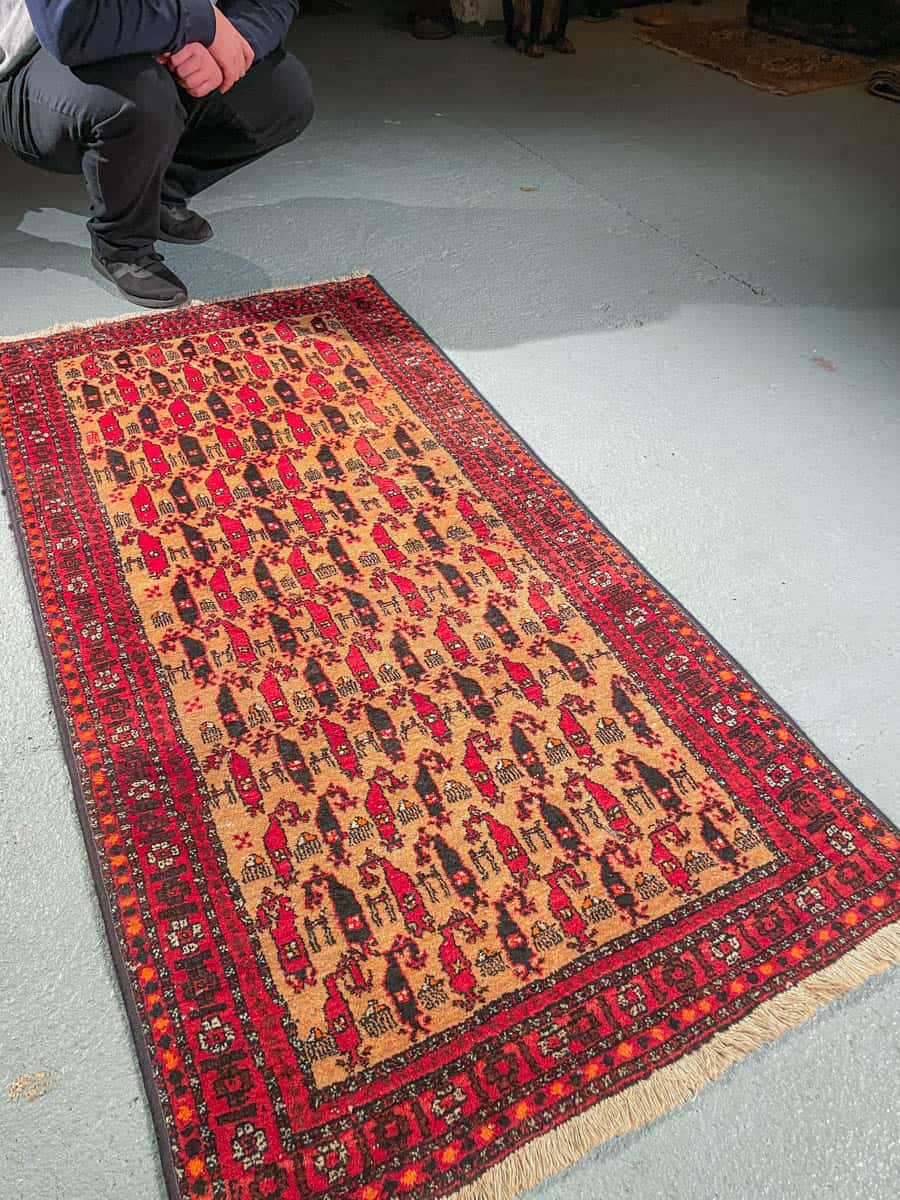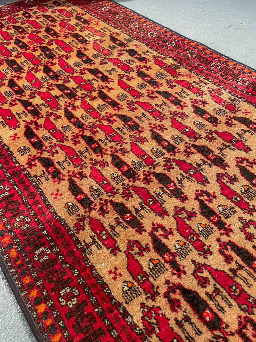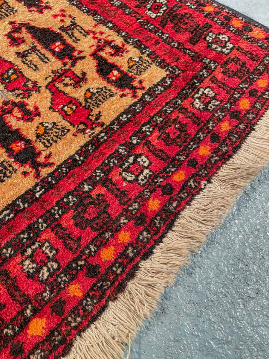 Tämä matto sijaitsee Galleriallamme osoitteessa Kankurinkatu 7, Punavuori – jos haluat tulla katsomaan sitä paikan päälle, sovithan näytön viestitse tai puhelimitse.