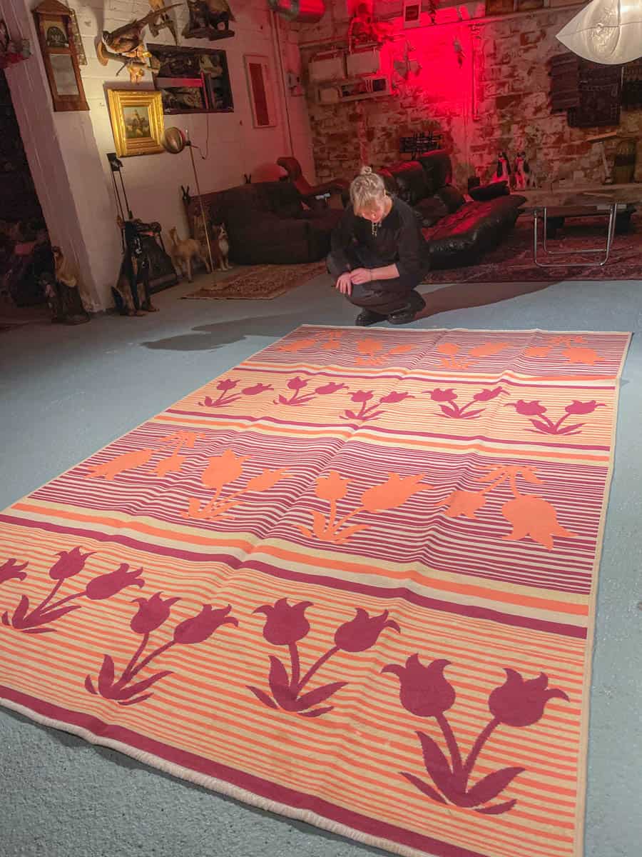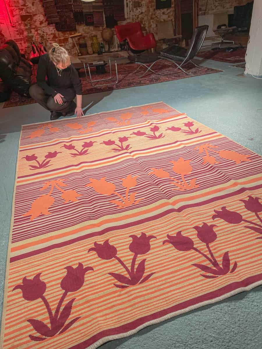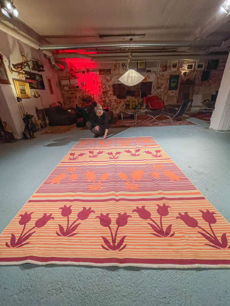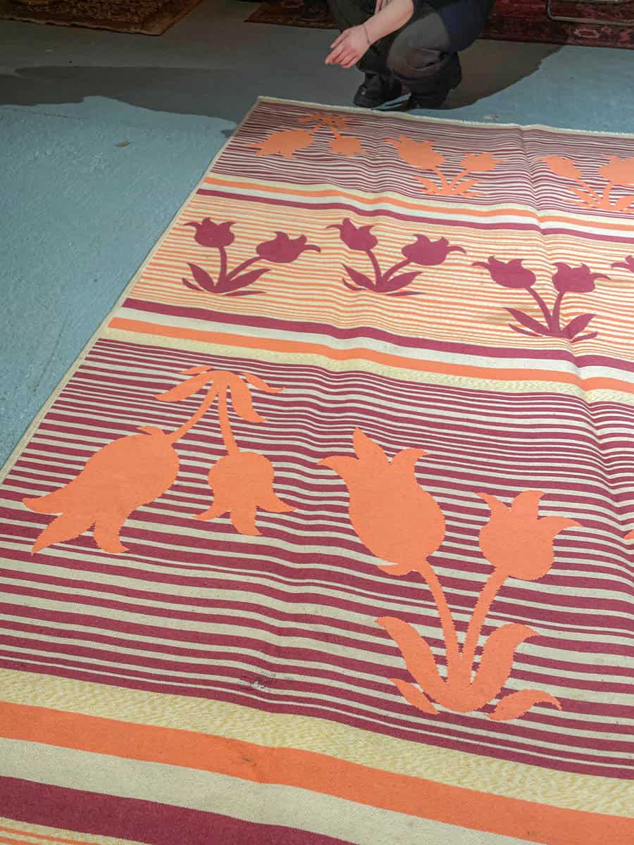 Tämä matto sijaitsee Galleriallamme osoitteessa Kankurinkatu 7, Punavuori – jos haluat tulla katsomaan sitä paikan päälle, sovithan näytön viestitse tai puhelimitse.