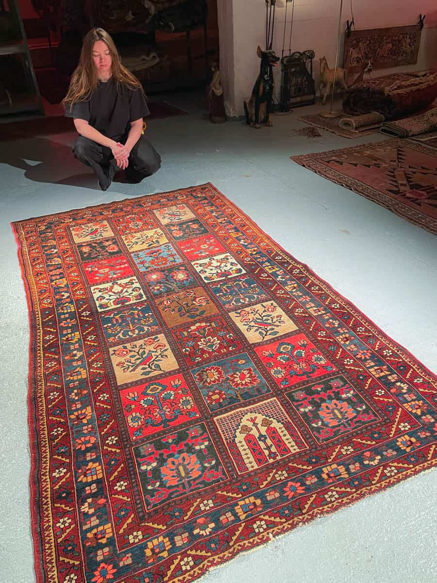 Tämä matto sijaitsee Galleriallamme osoitteessa Kankurinkatu 7, Punavuori – jos haluat tulla katsomaan sitä paikan päälle, sovithan näytön viestitse tai puhelimitse.