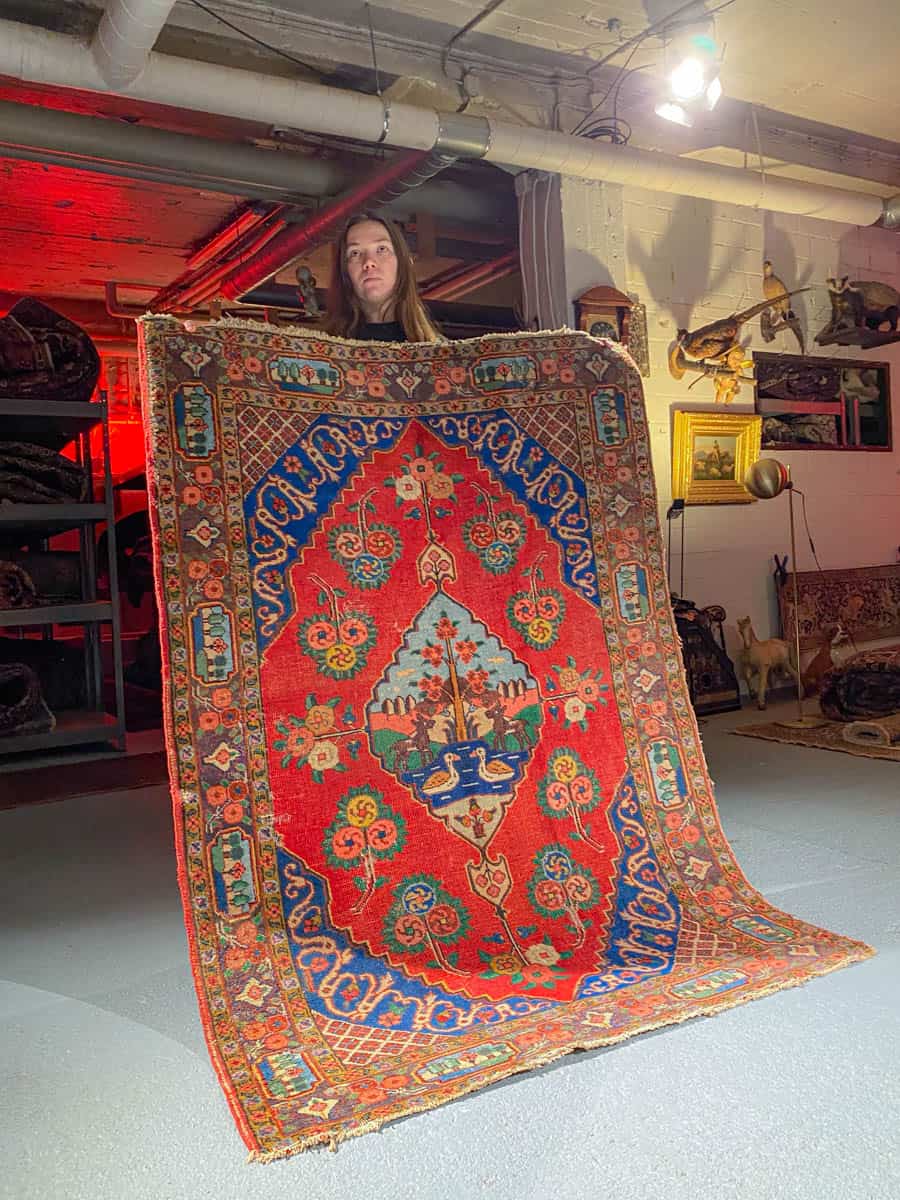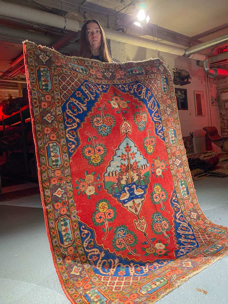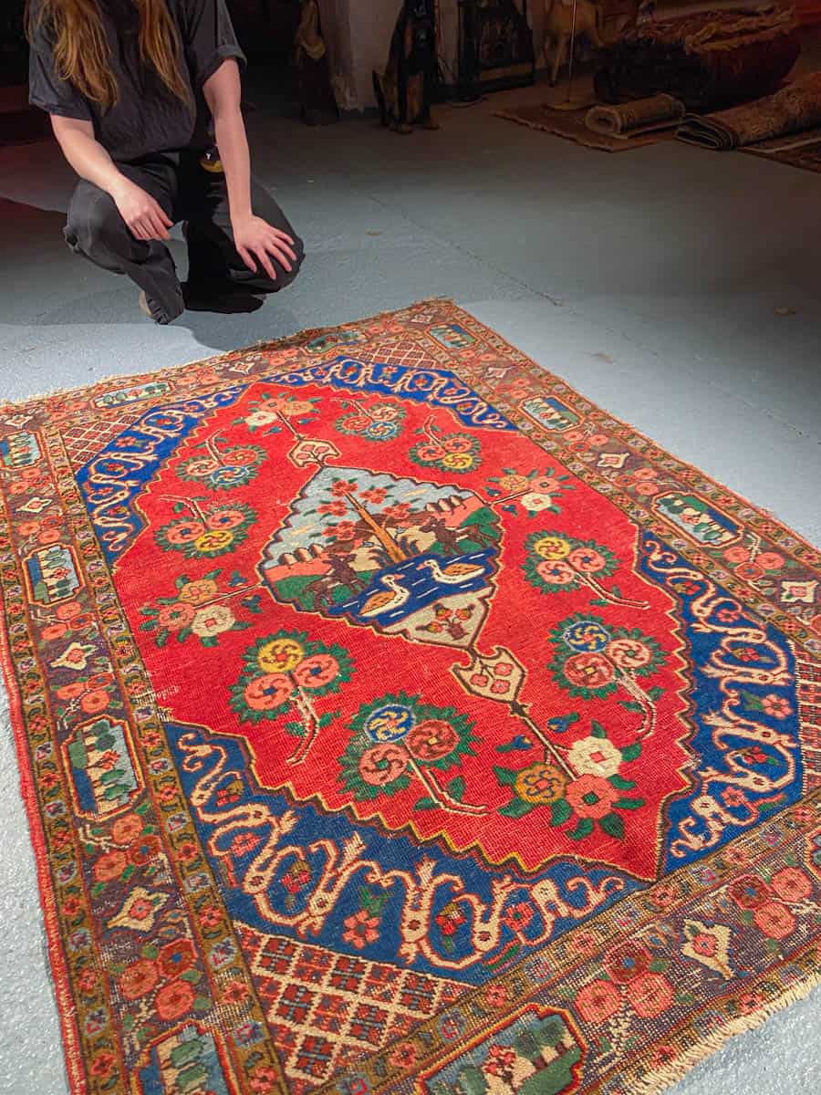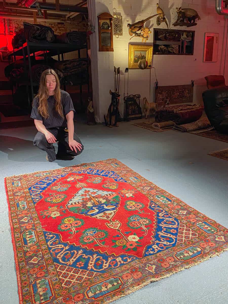 Puoliantiikkia: käsinsolmittu villasta n. 1940-luvulla.