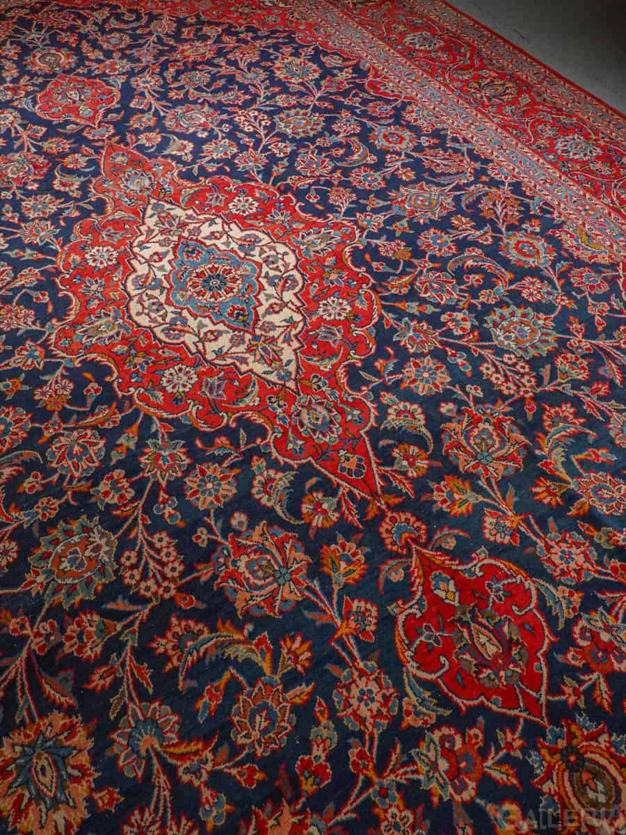Käsinsolmittu perinteiseen persialaiseen Keshan-tyyliin. Kaunis ja perinteinen kuviointi keskimedaljongilla. Upeana säilynyt väritys. Käsinsolmittu villasta.