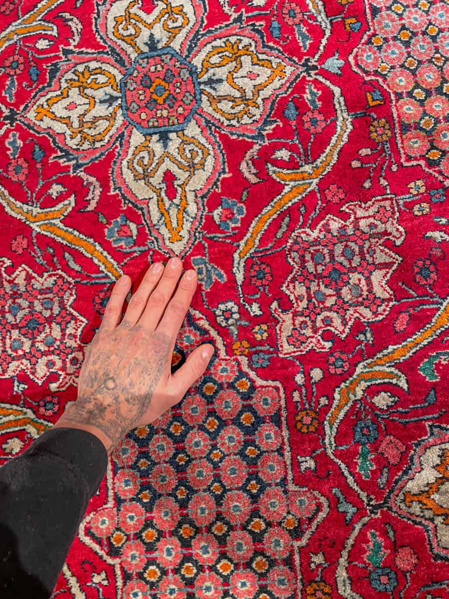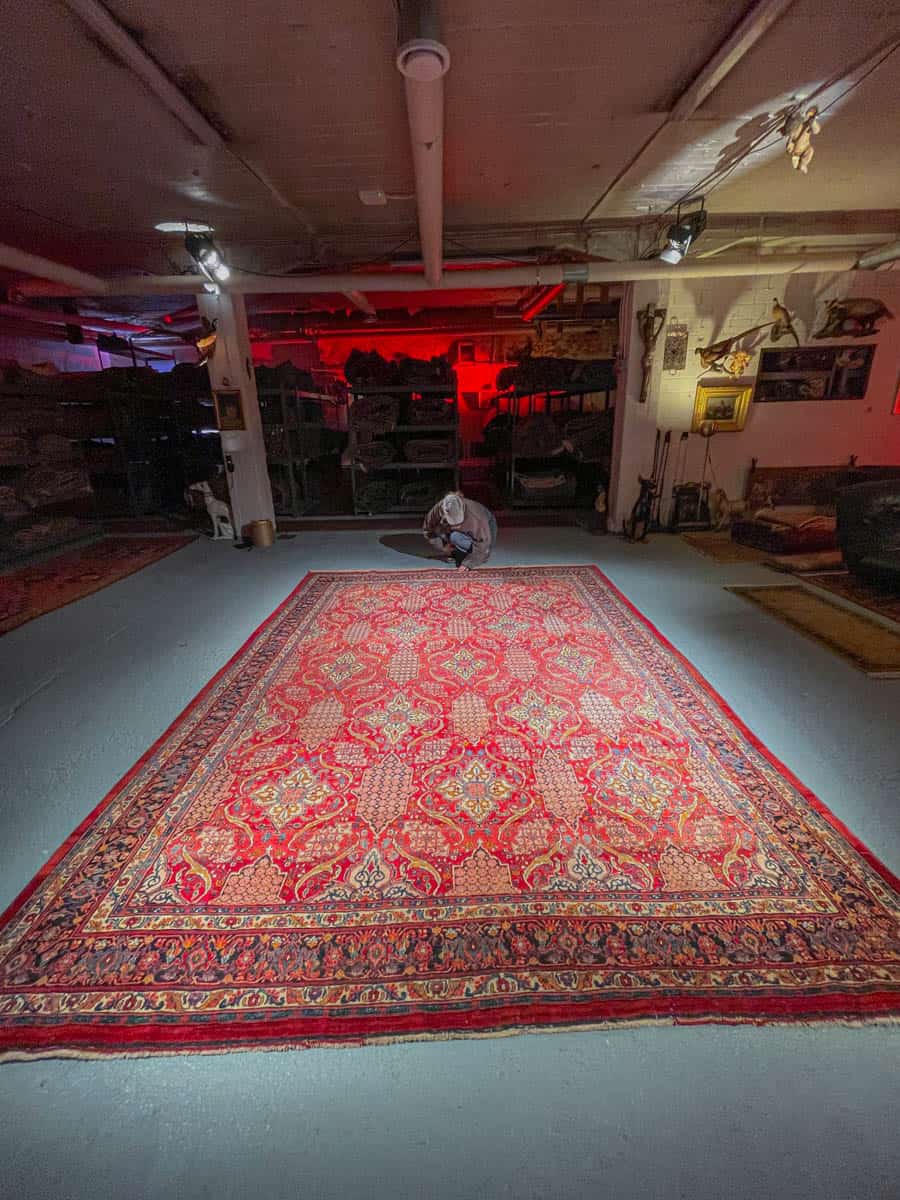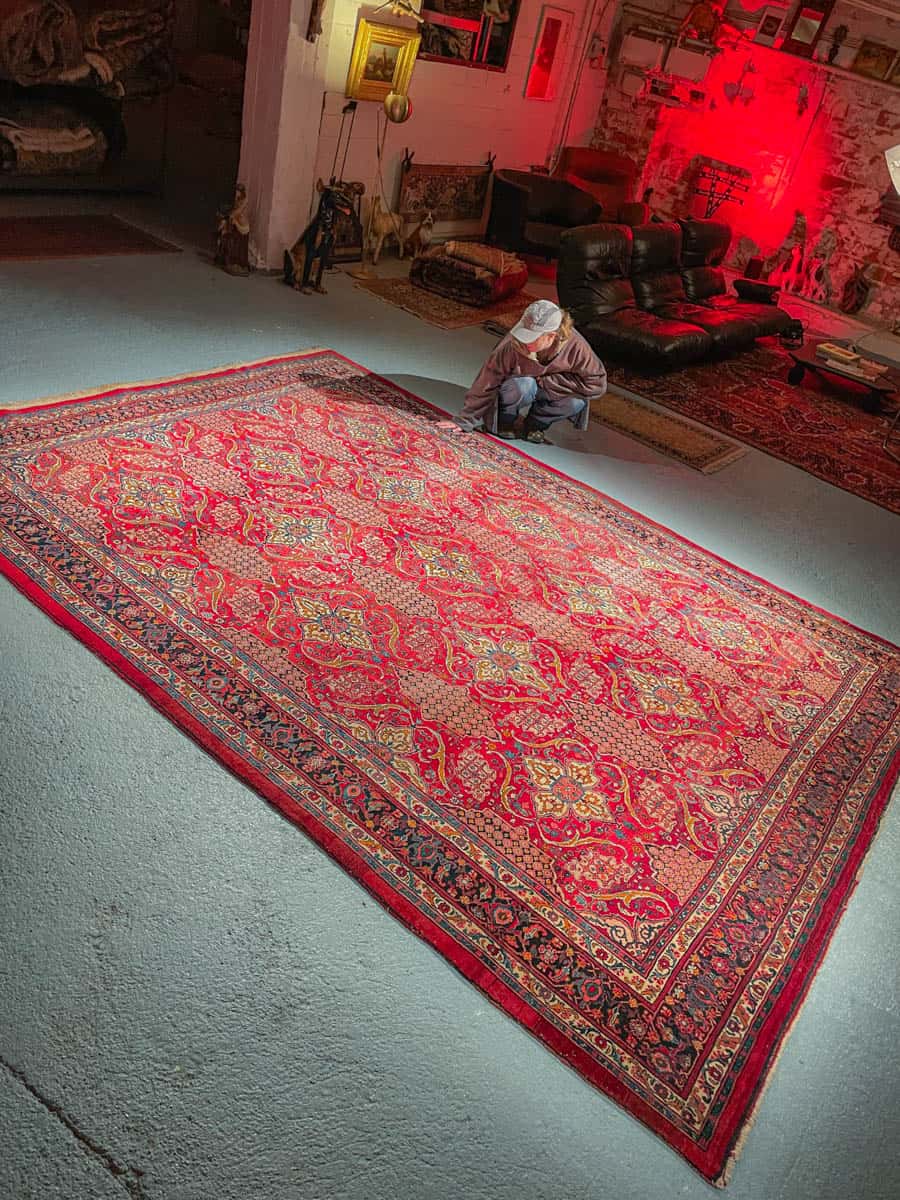 Tämä matto sijaitsee Galleriallamme osoitteessa Kankurinkatu 7, Punavuori – jos haluat tulla katsomaan sitä paikan päälle, sovithan näytön viestitse tai puhelimitse.