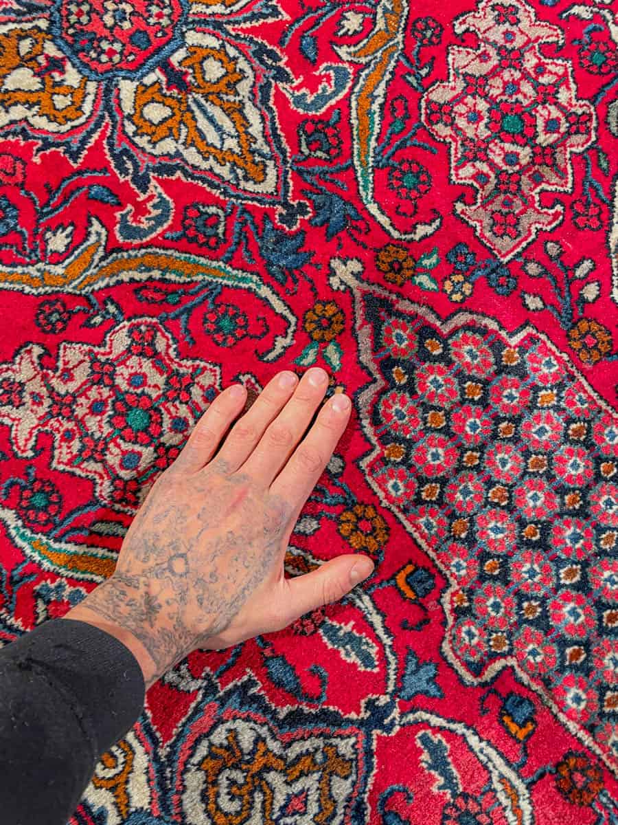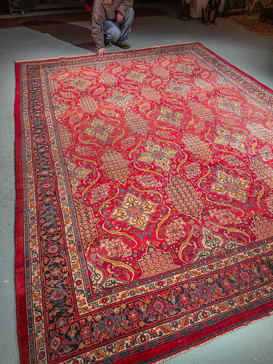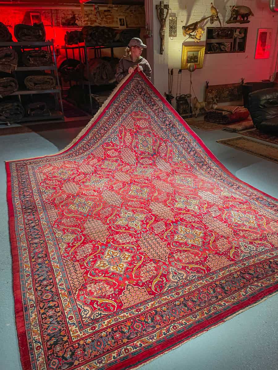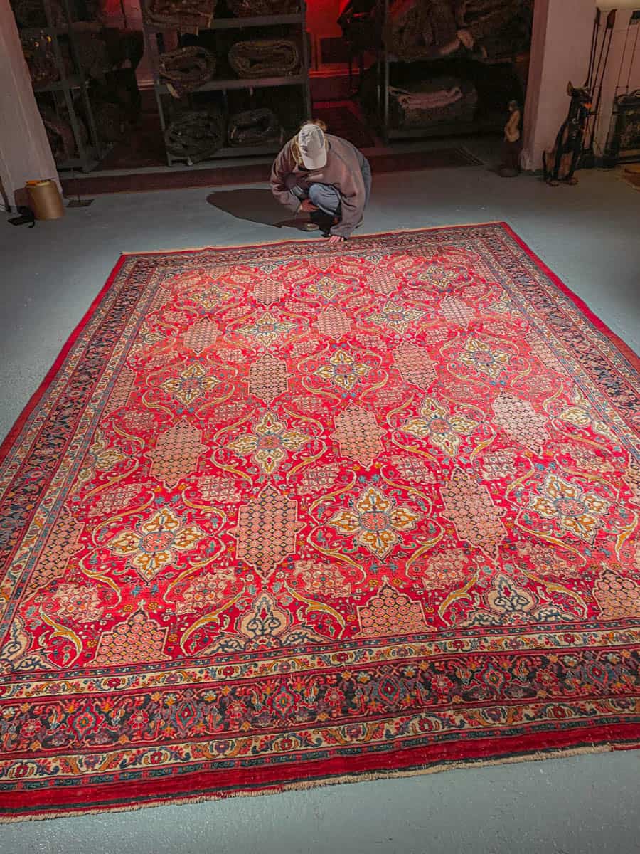 Tämä matto sijaitsee Galleriallamme osoitteessa Kankurinkatu 7, Punavuori – jos haluat tulla katsomaan sitä paikan päälle, sovithan näytön viestitse tai puhelimitse.