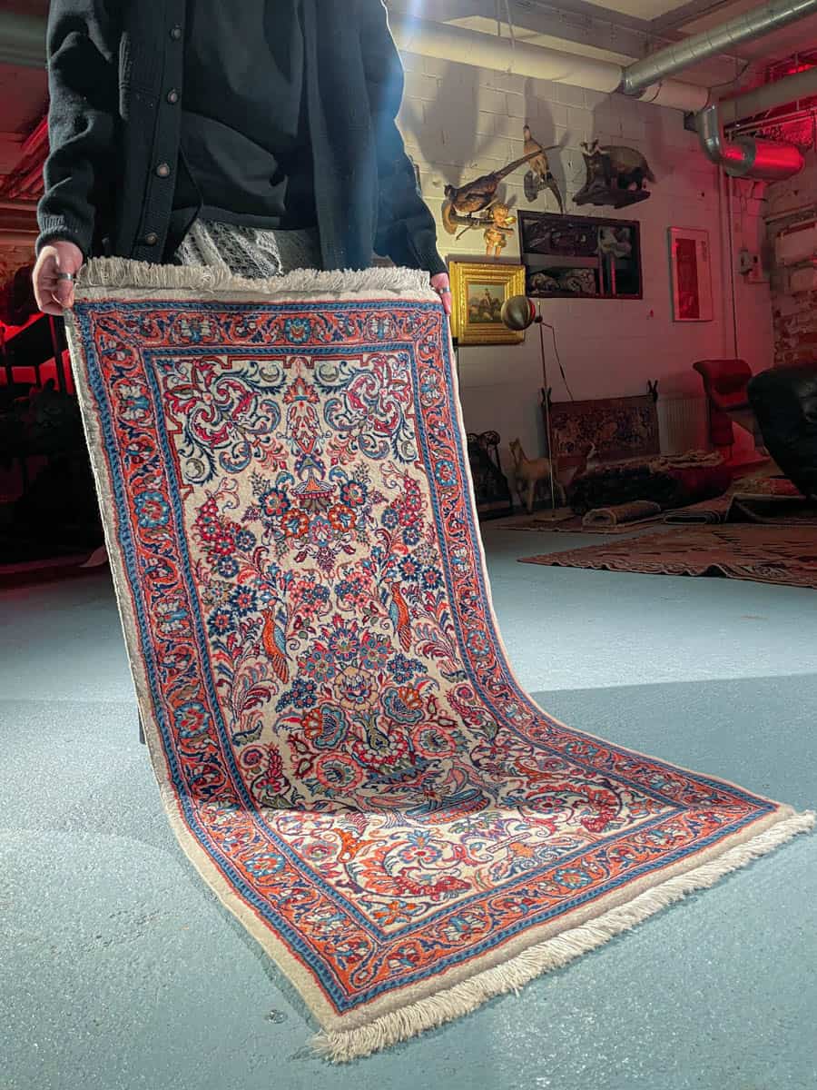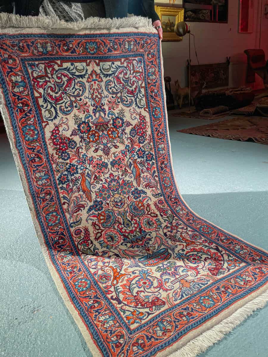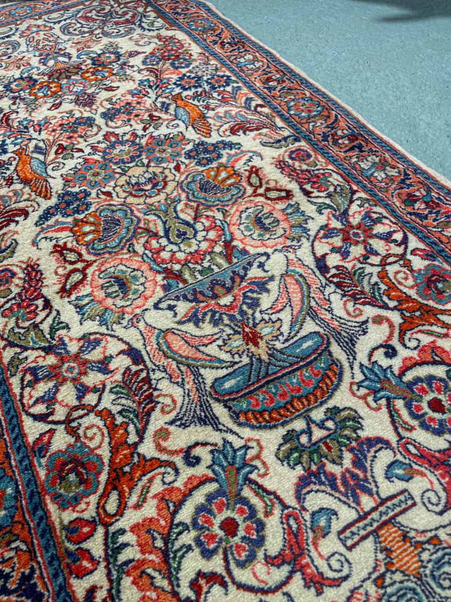 Upea Sarouk kukkais- ja lintukuvioinneilla ja yltäkylläisillä väreillä. Käsinsolmittu villasta.