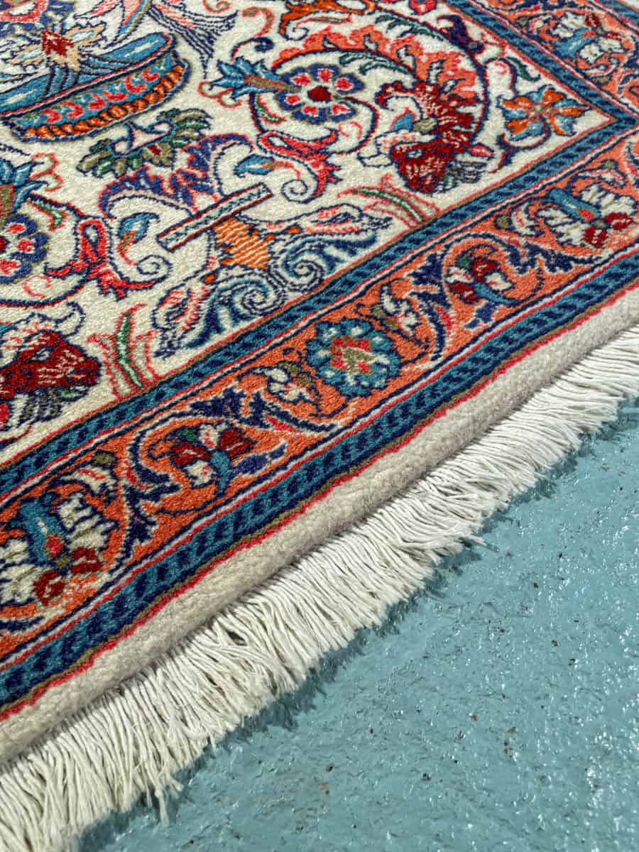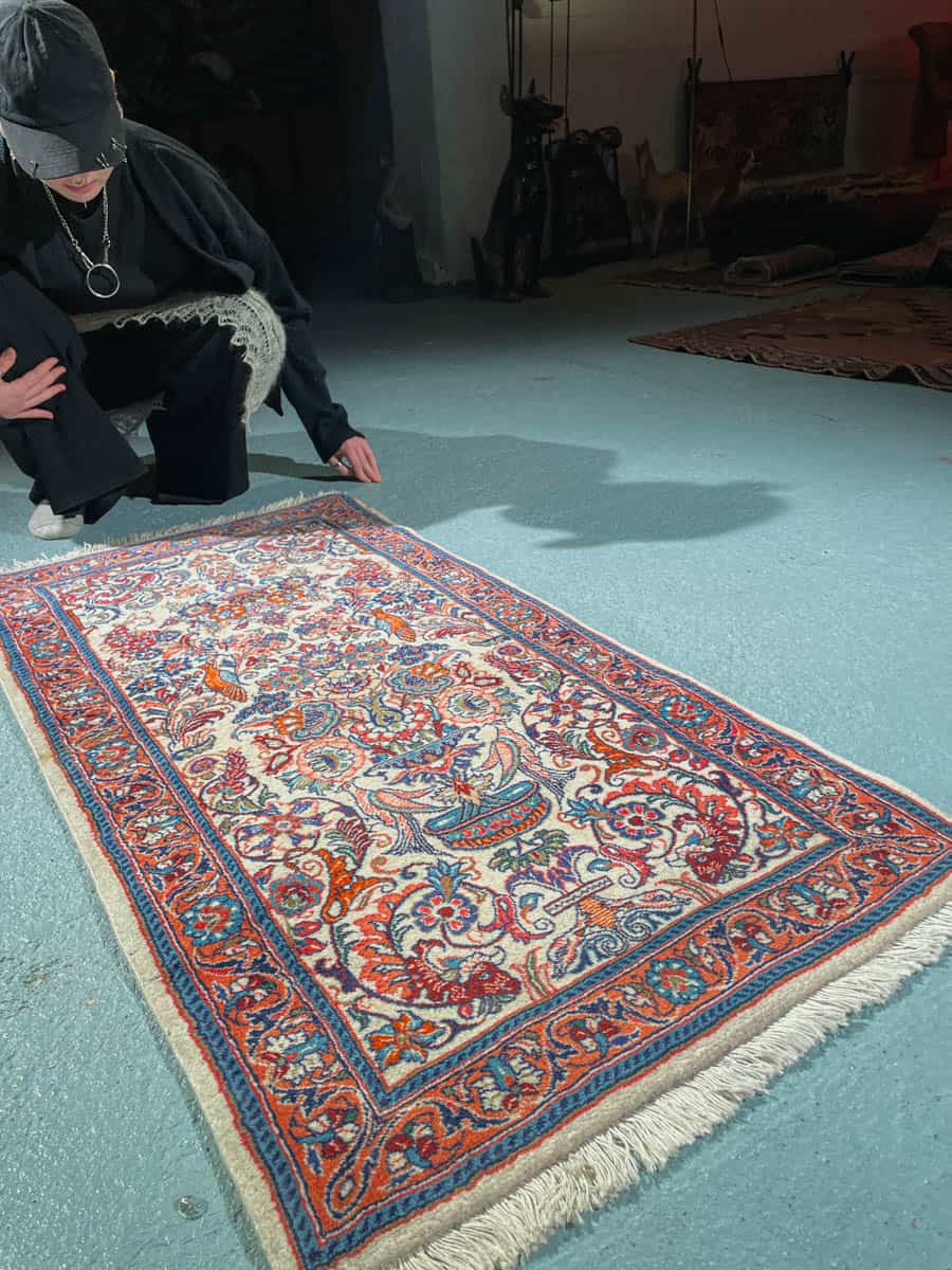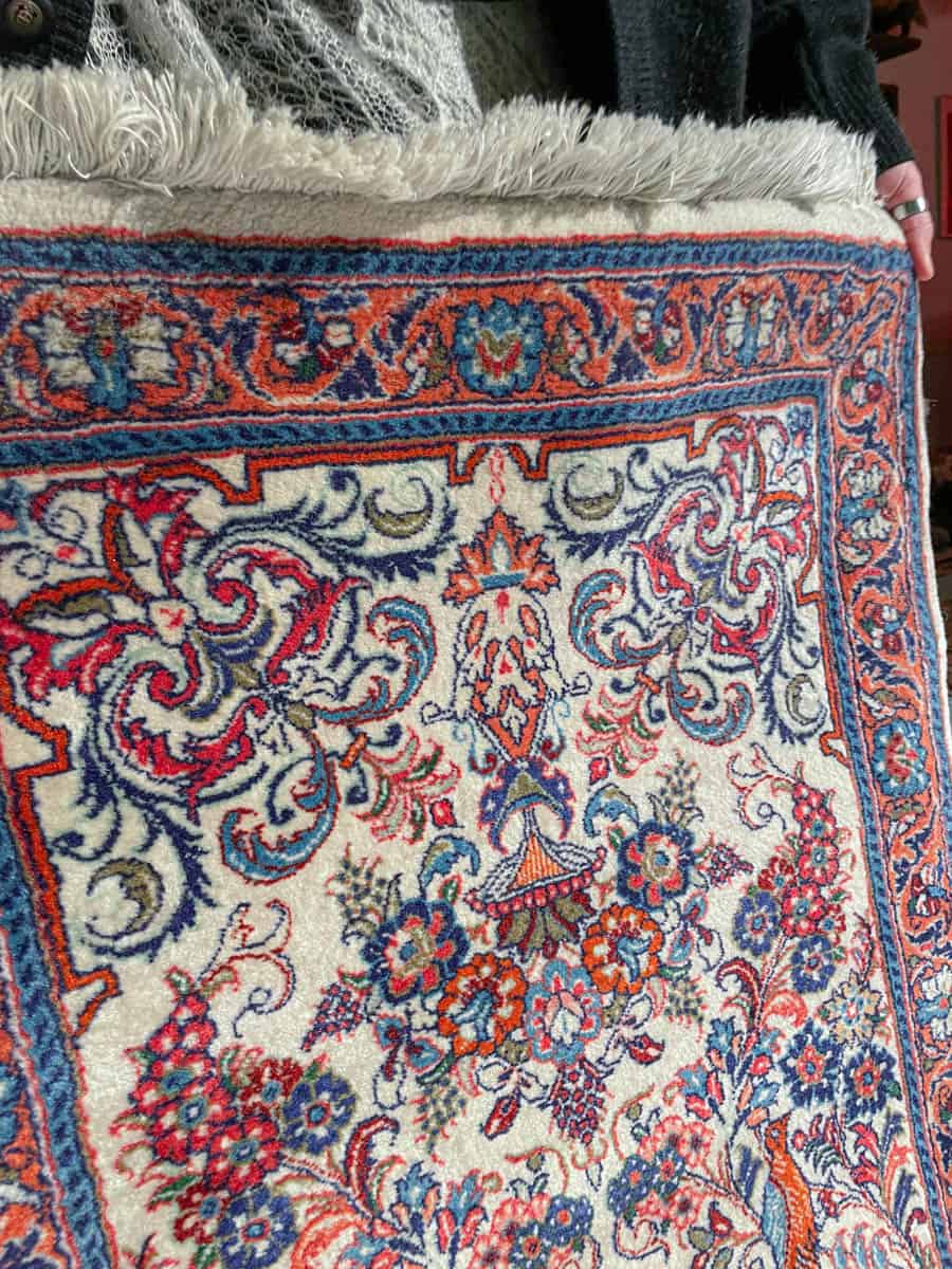 Upea Sarouk kukkais- ja lintukuvioinneilla ja yltäkylläisillä väreillä. Käsinsolmittu villasta.