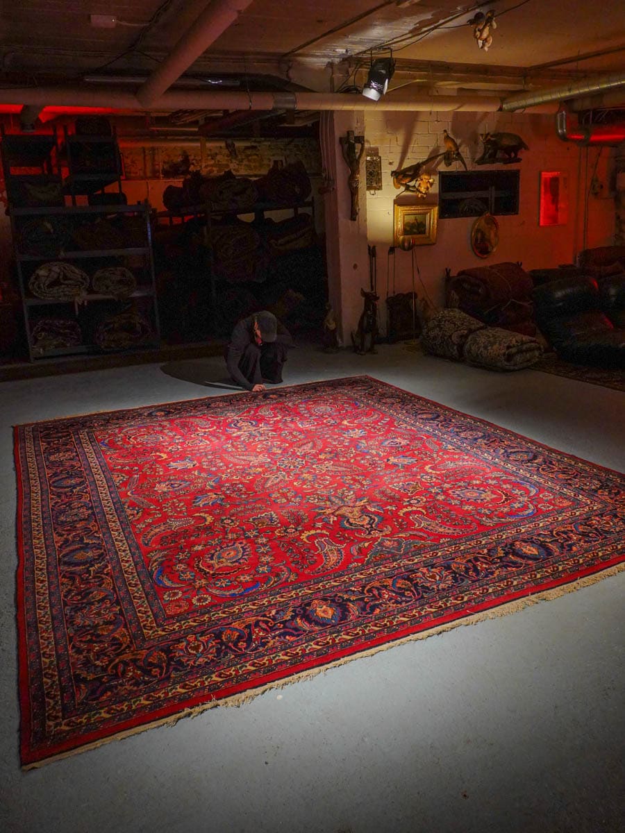 Tämä matto sijaitsee Galleriallamme osoitteessa Kankurinkatu 7, Punavuori – jos haluat tulla katsomaan sitä paikan päälle, sovithan näytön viestitse tai puhelimitse.