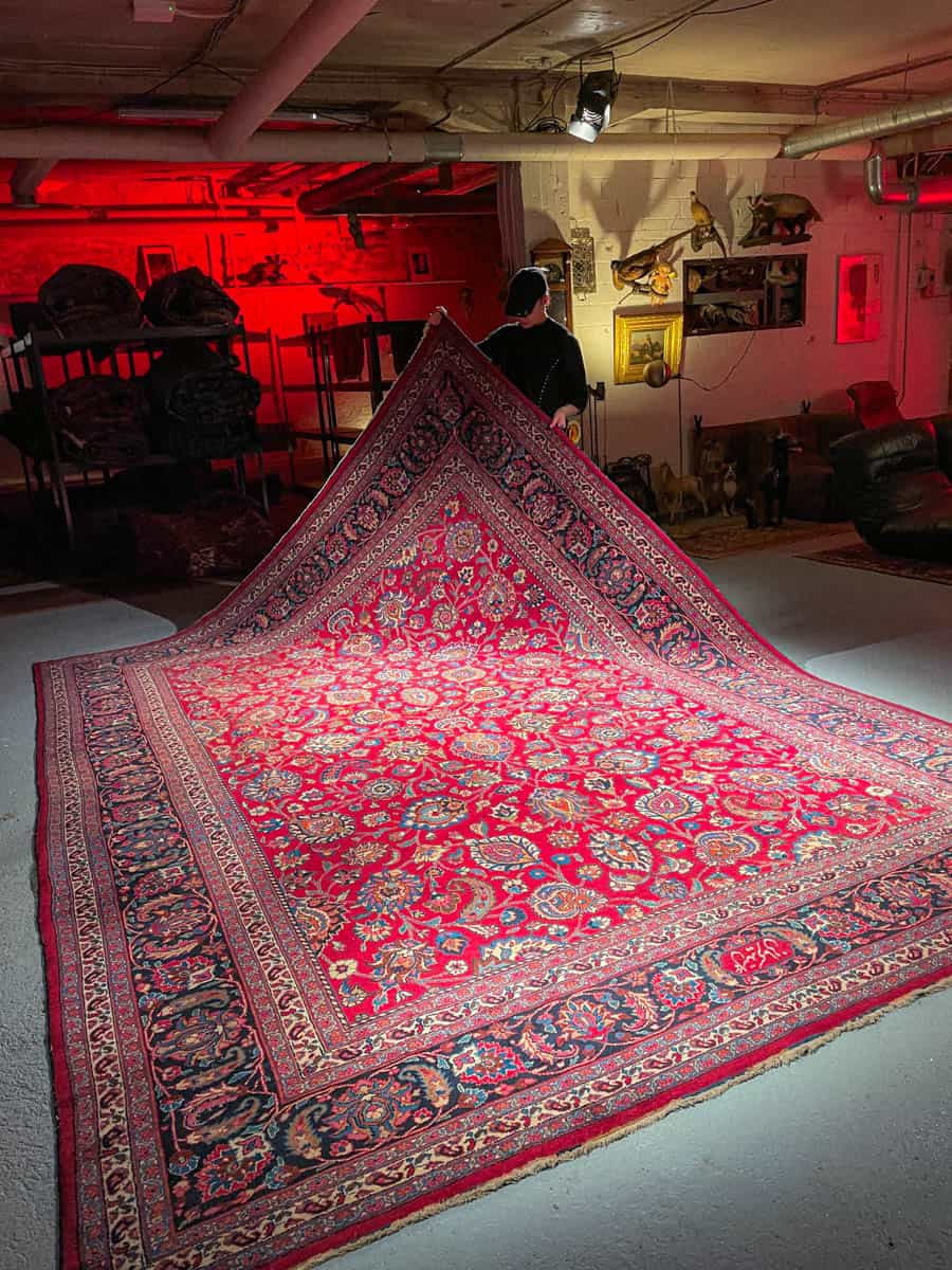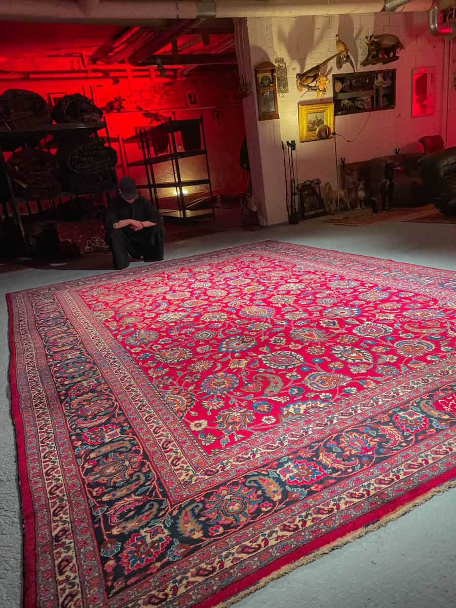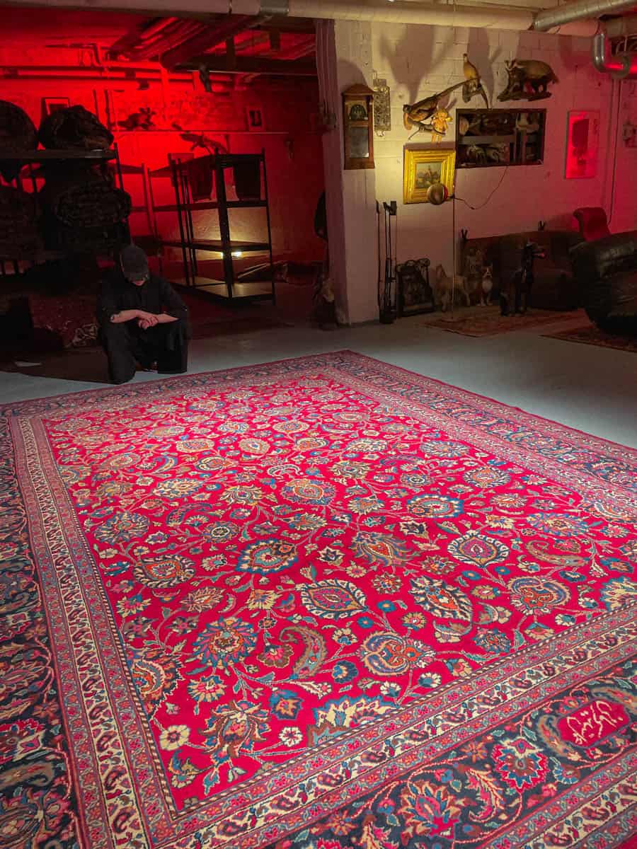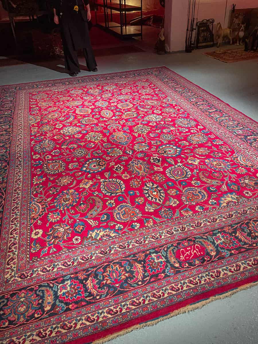 Tämä matto sijaitsee Galleriallamme osoitteessa Kankurinkatu 7, Punavuori – jos haluat tulla katsomaan sitä paikan päälle, sovithan näytön viestitse tai puhelimitse.