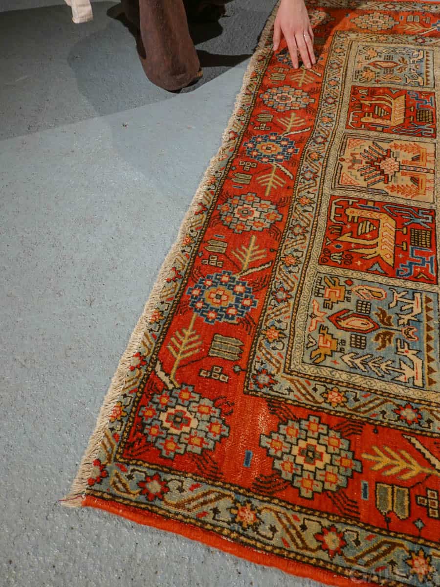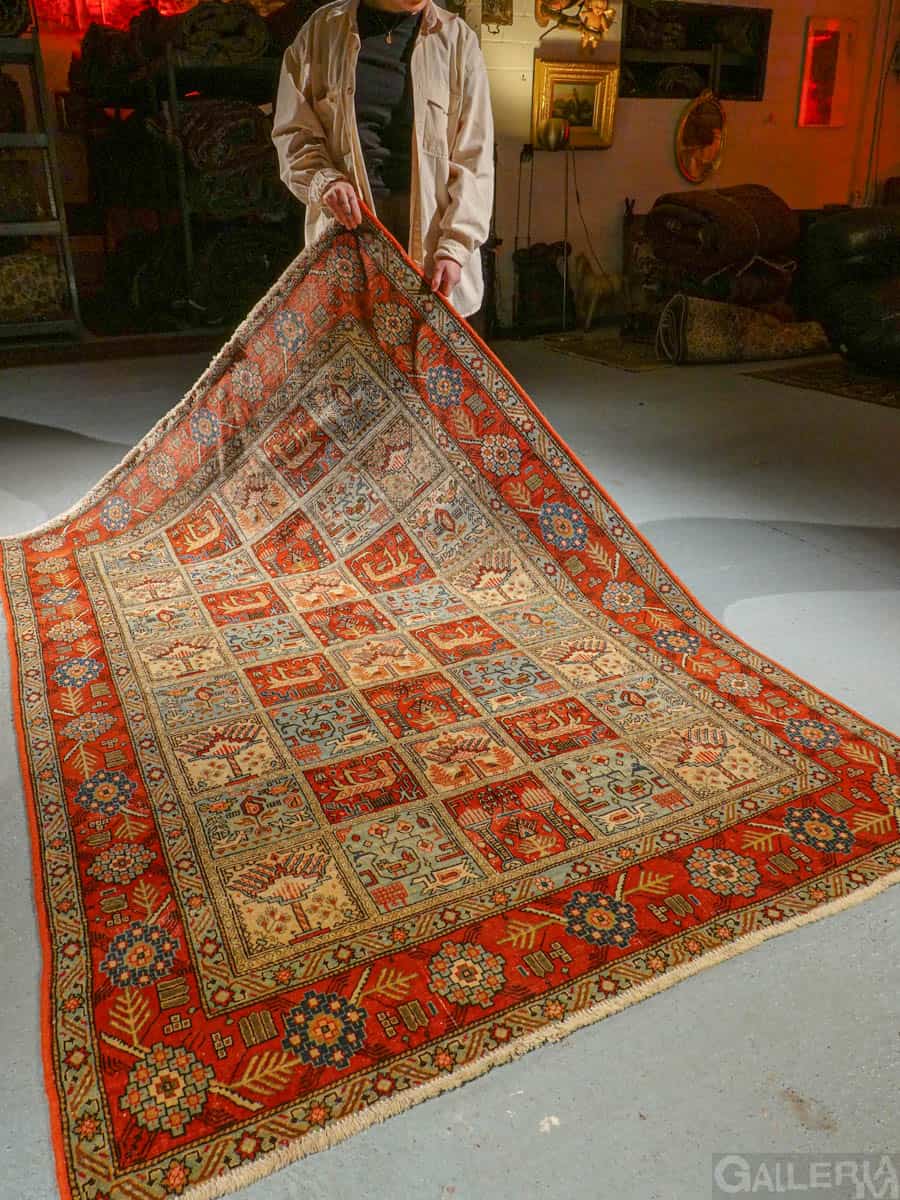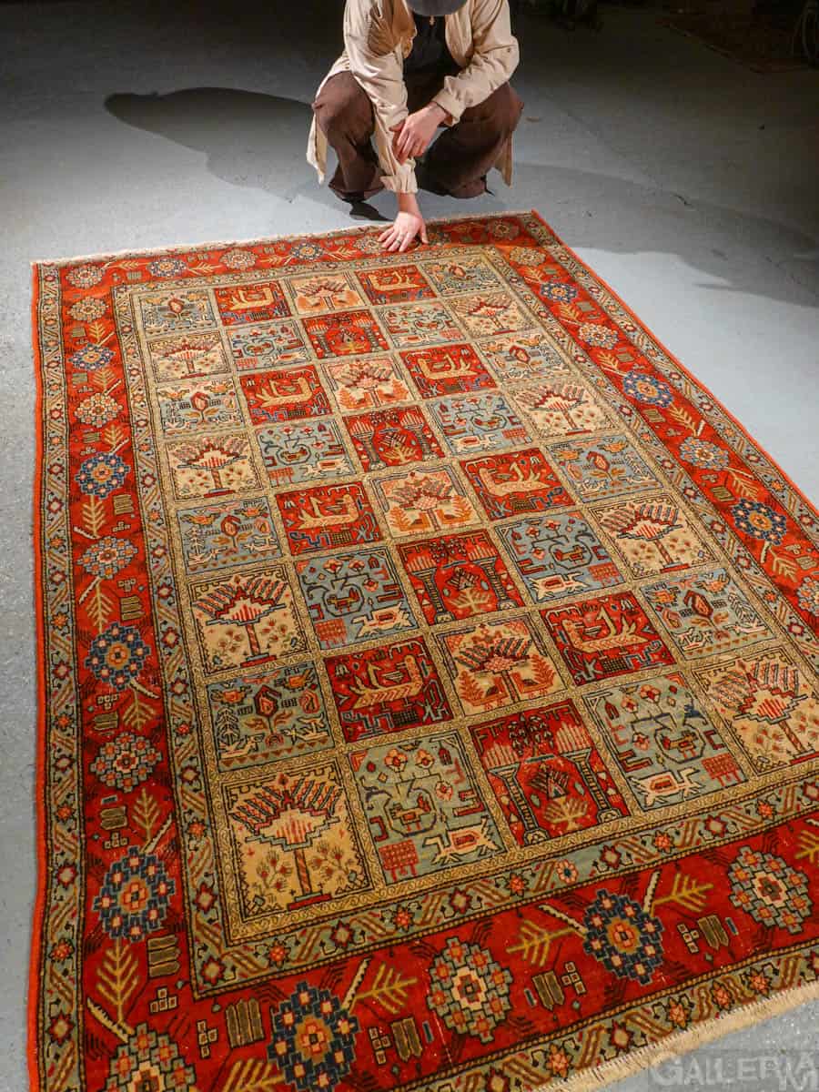Tämä matto sijaitsee Galleriallamme osoitteessa Kankurinkatu 7, Punavuori – jos haluat tulla katsomaan sitä paikan päälle, sovithan näytön viestitse tai puhelimitse.