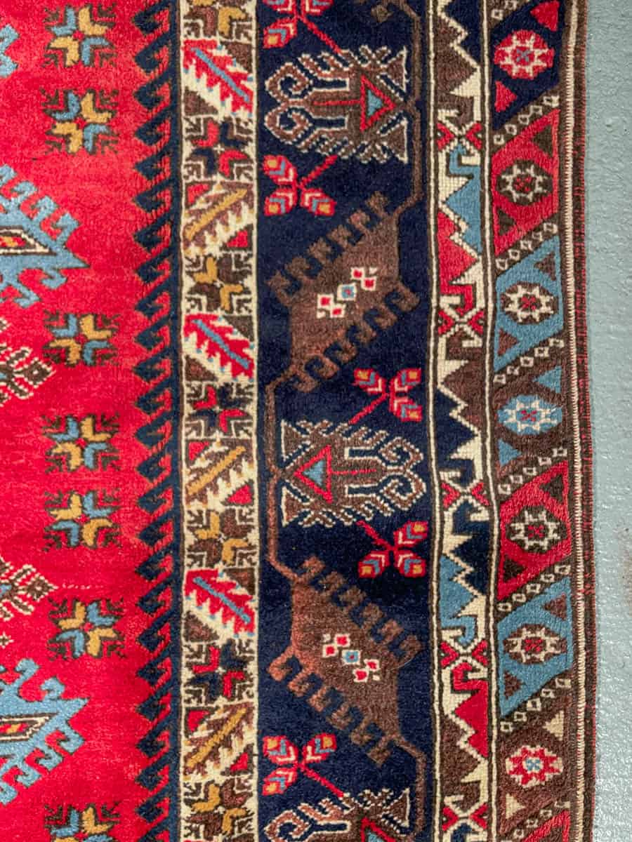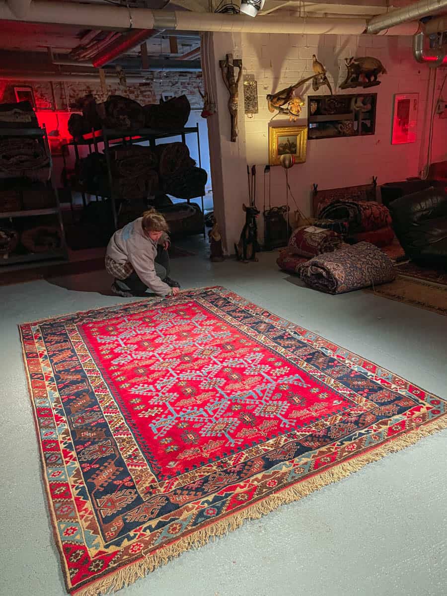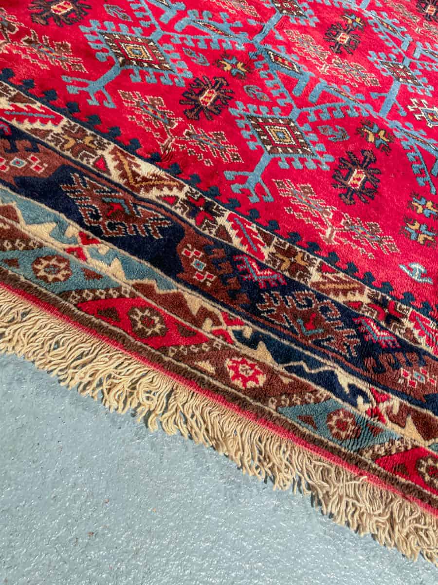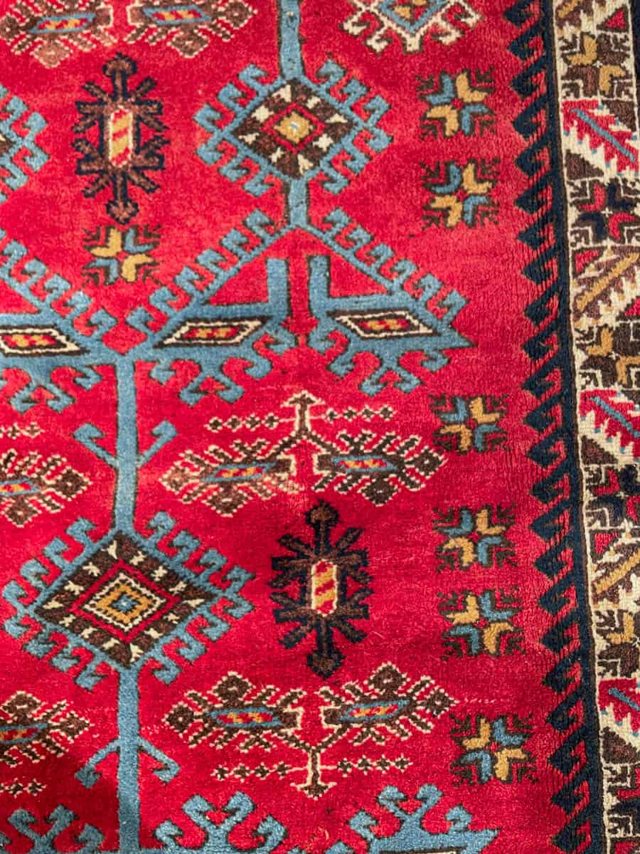 Tämä matto sijaitsee Galleriallamme osoitteessa Kankurinkatu 7, Punavuori – jos haluat tulla katsomaan sitä paikan päälle, sovithan näytön viestitse tai puhelimitse.