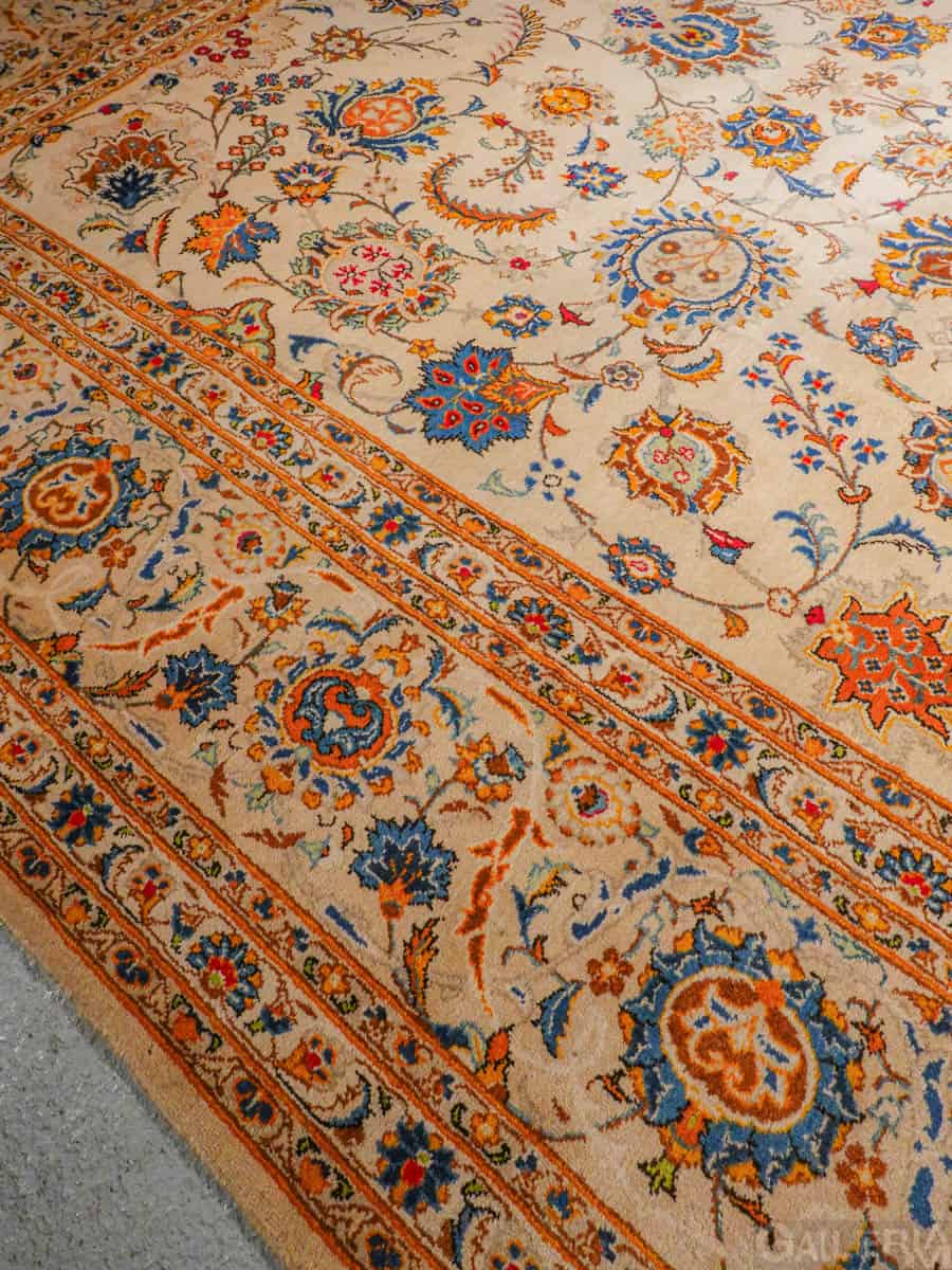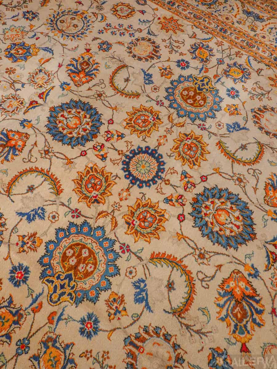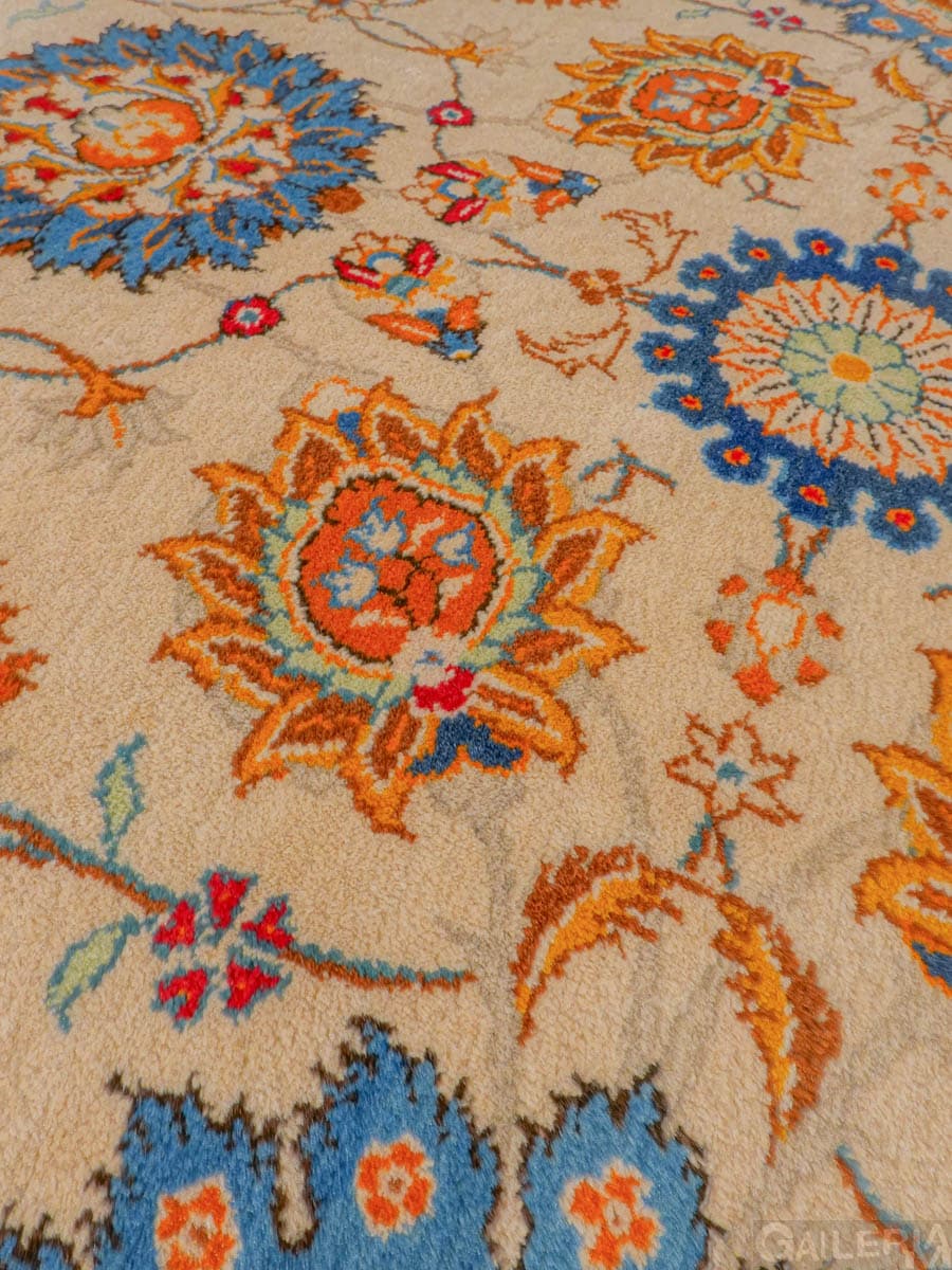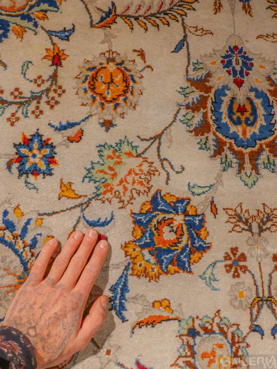 Suuri palatsikokoinen Keshan, jossa lumoavan kaunis vaalea pohja ja upeita orgaanisia kukkaiskuvioita runsailla yksityiskohdilla.