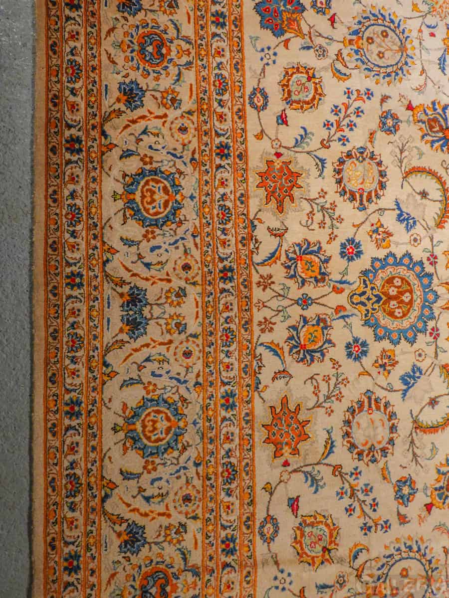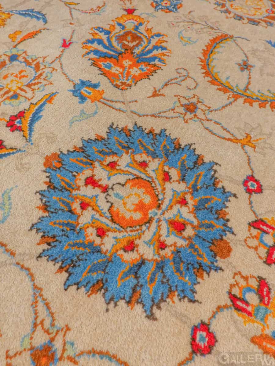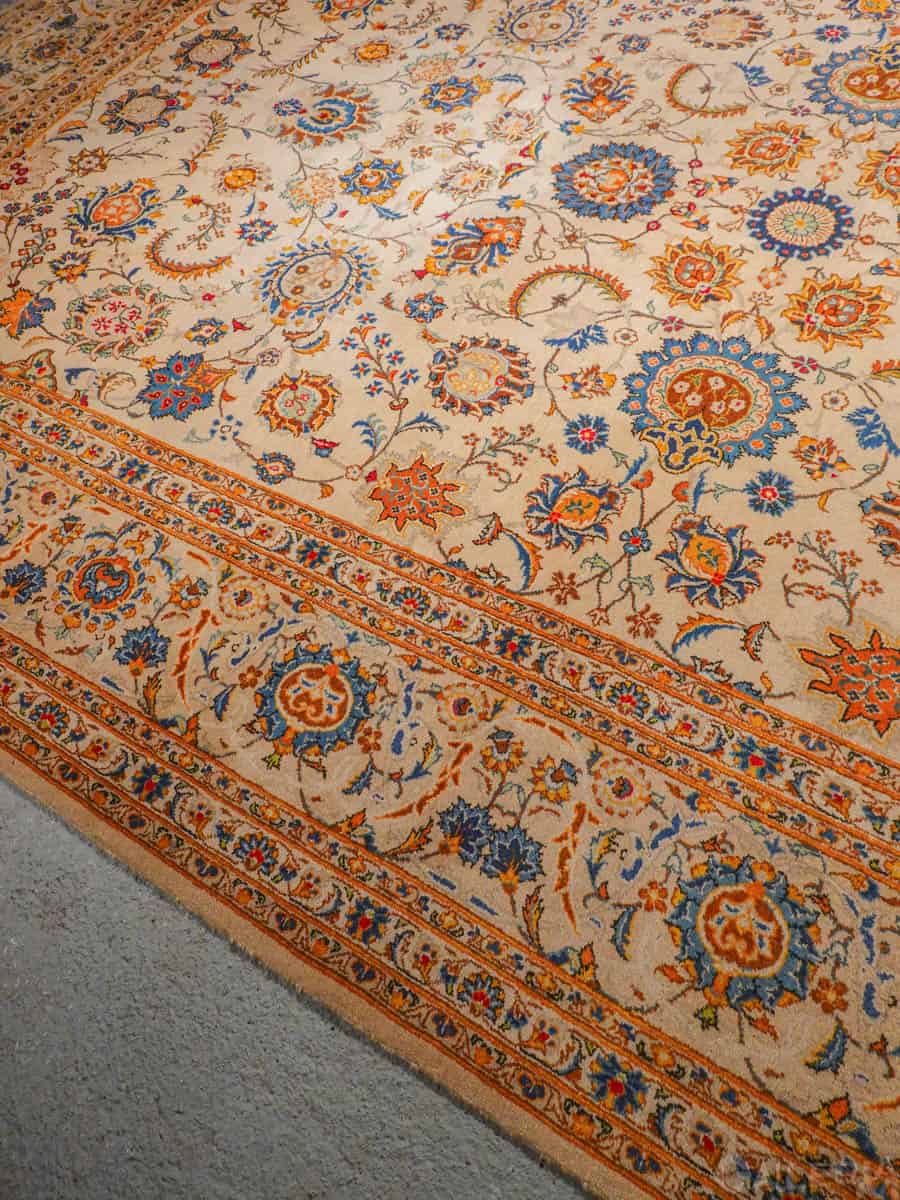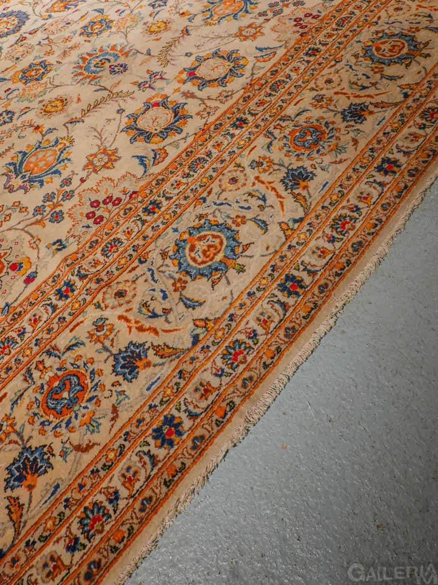Suuri palatsikokoinen Keshan, jossa lumoavan kaunis vaalea pohja ja upeita orgaanisia kukkaiskuvioita runsailla yksityiskohdilla.