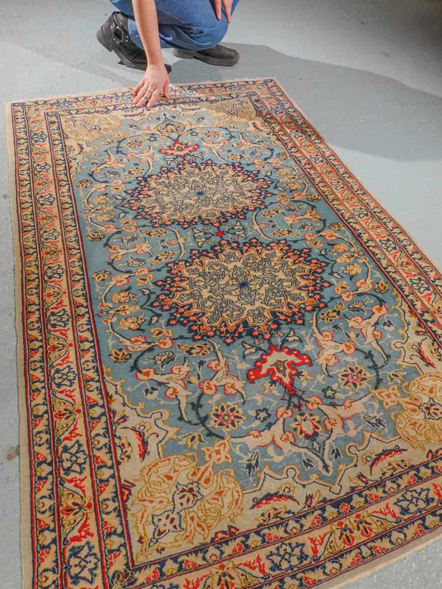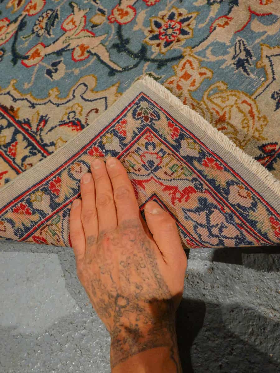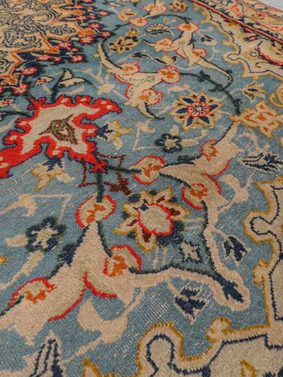 Ihana Isfahan orgaanisella kuvioinnilla, ja kahdella medaljongilla. Herkän taivaansininen tausta.