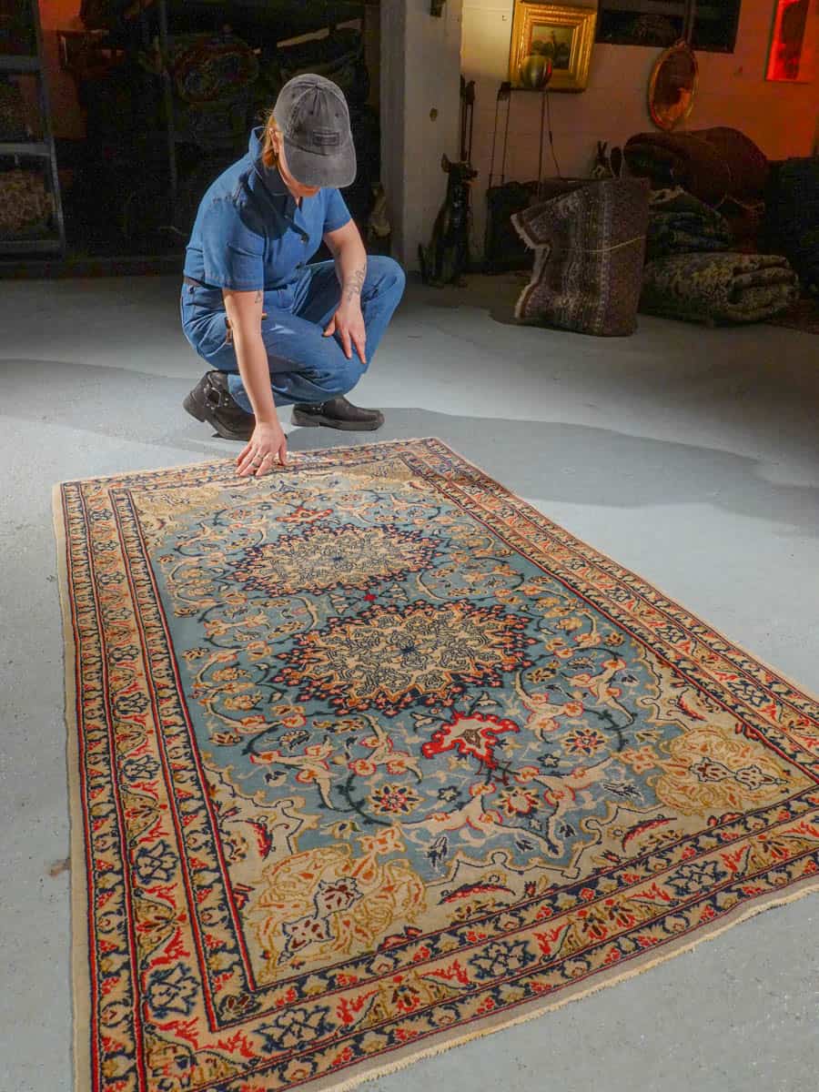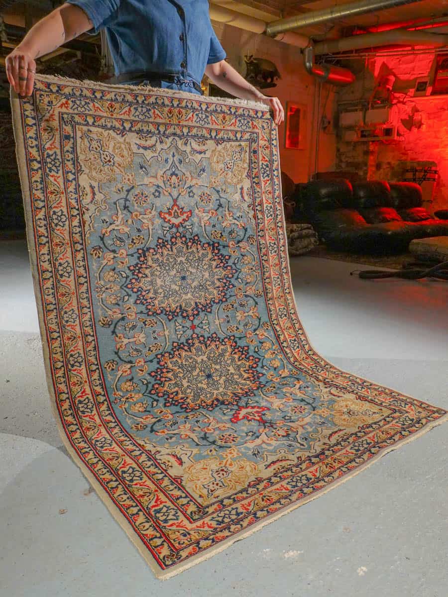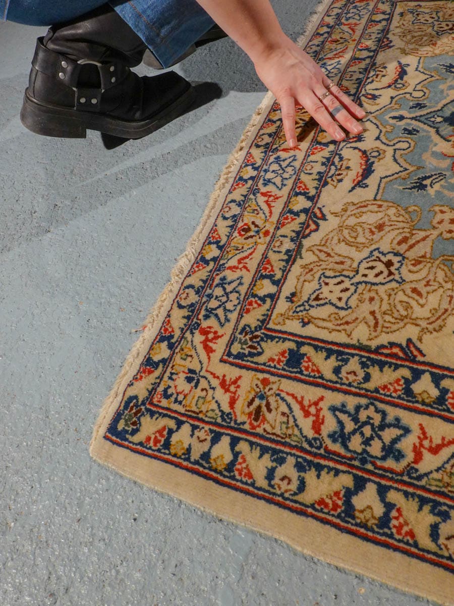 Ihana Isfahan orgaanisella kuvioinnilla, ja kahdella medaljongilla. Herkän taivaansininen tausta.