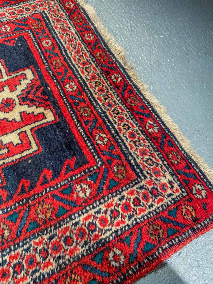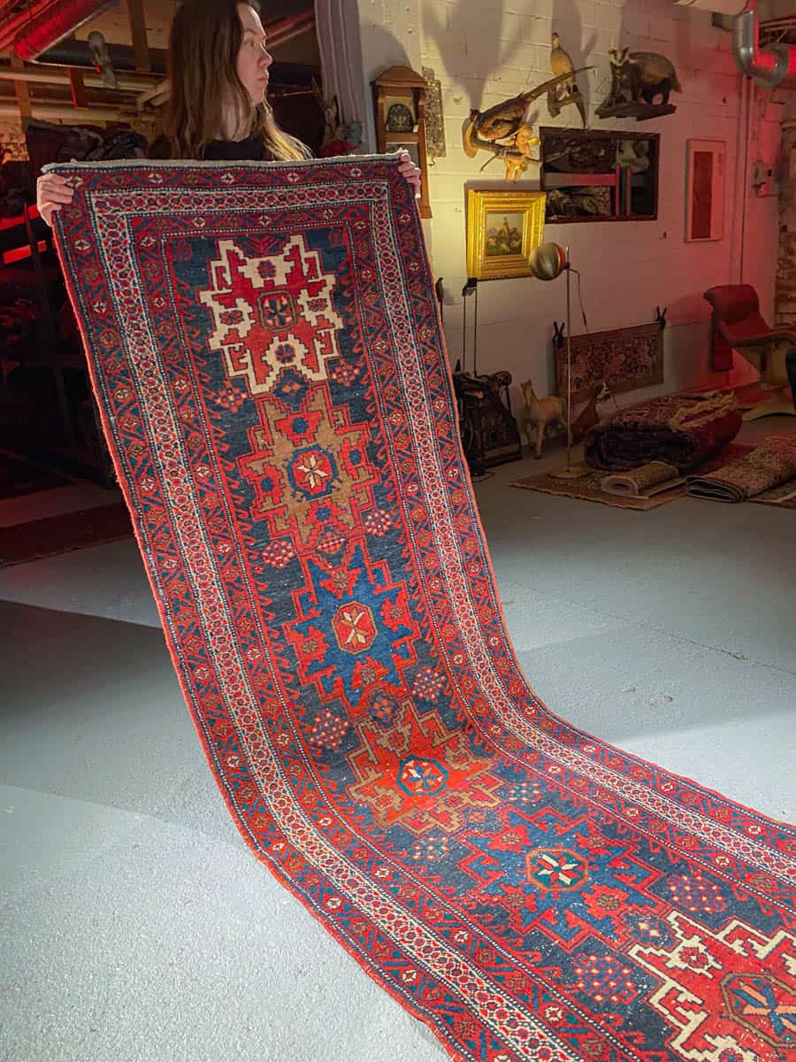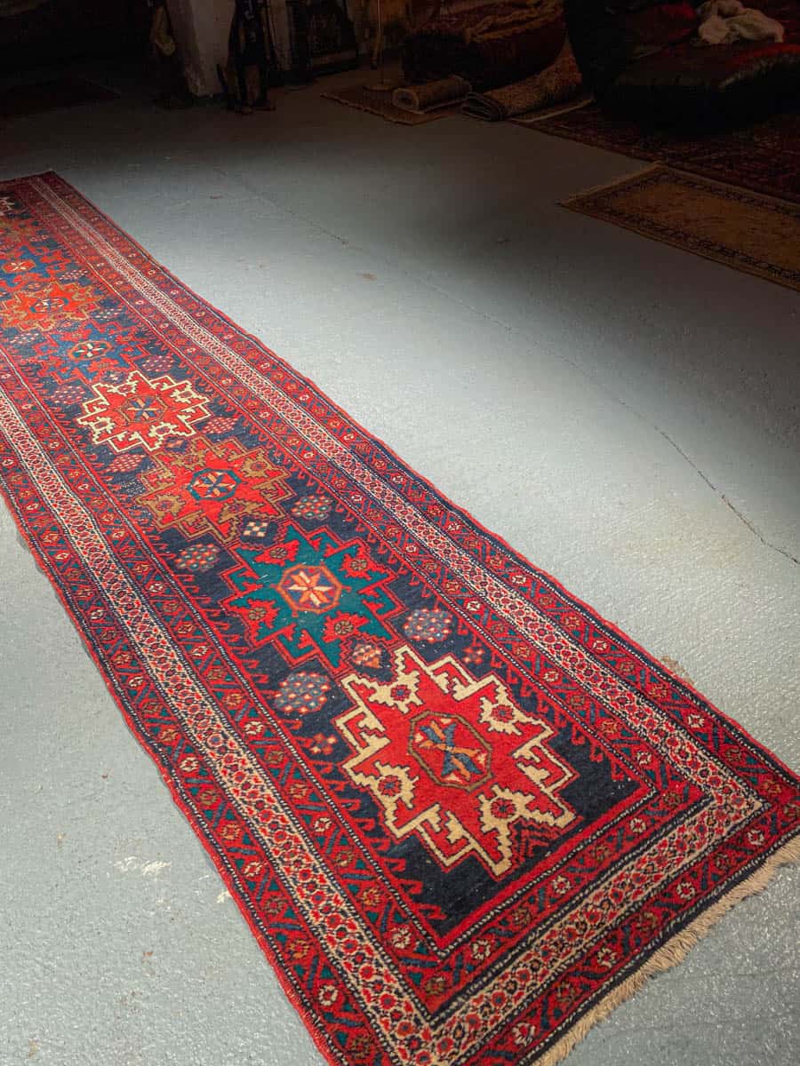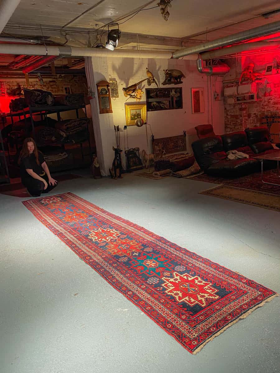 Tämä matto sijaitsee Galleriallamme osoitteessa Kankurinkatu 7, Punavuori – jos haluat tulla katsomaan sitä paikan päälle, sovithan näytön viestitse tai puhelimitse.
