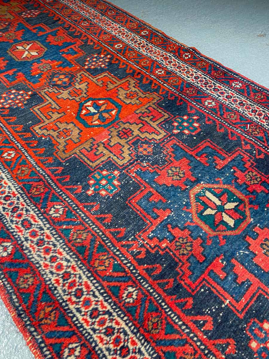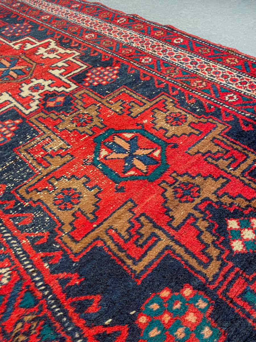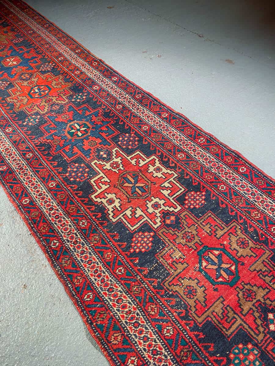 Maagisen värikäs ja ainutlaatuinen Heriz-käytävämatto geometrisilla medaljonkikuvioinneilla.