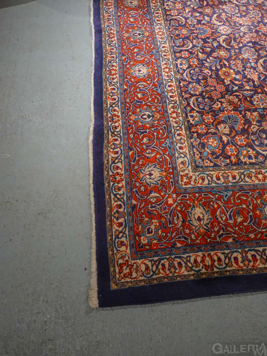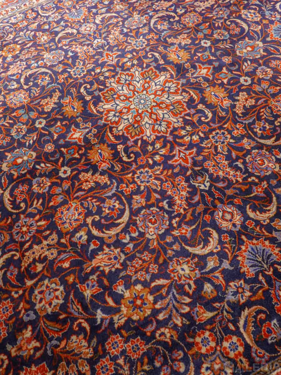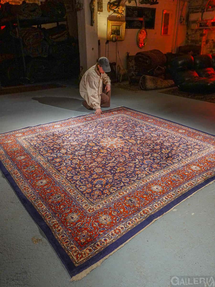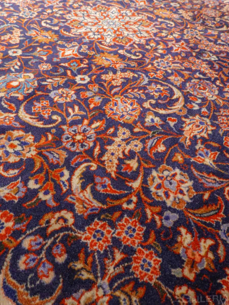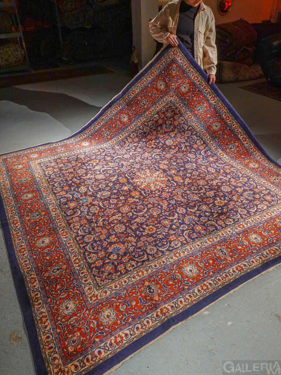 Uskomattoman yksityiskohtainen Sarouk maagisella yönsinisellä taustavärillä. Harvinaiset, neliönomaiset mittasuhteet.