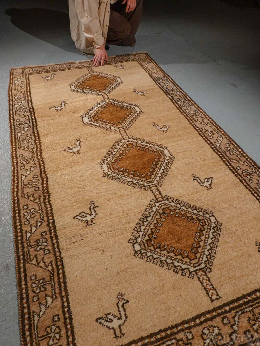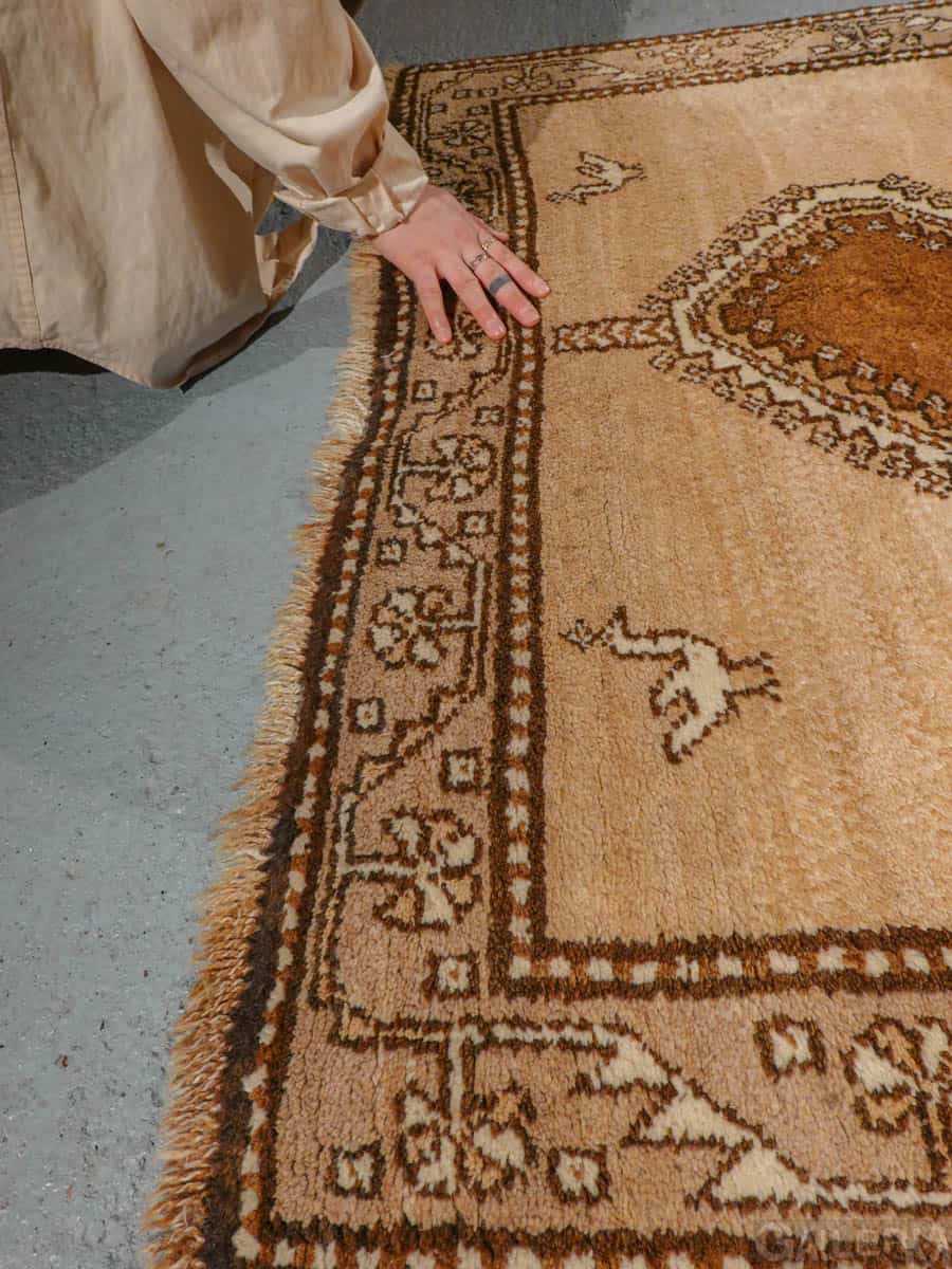 Tämä matto sijaitsee Galleriallamme osoitteessa Kankurinkatu 7, Punavuori – jos haluat tulla katsomaan sitä paikan päälle, sovithan näytön viestitse tai puhelimitse.