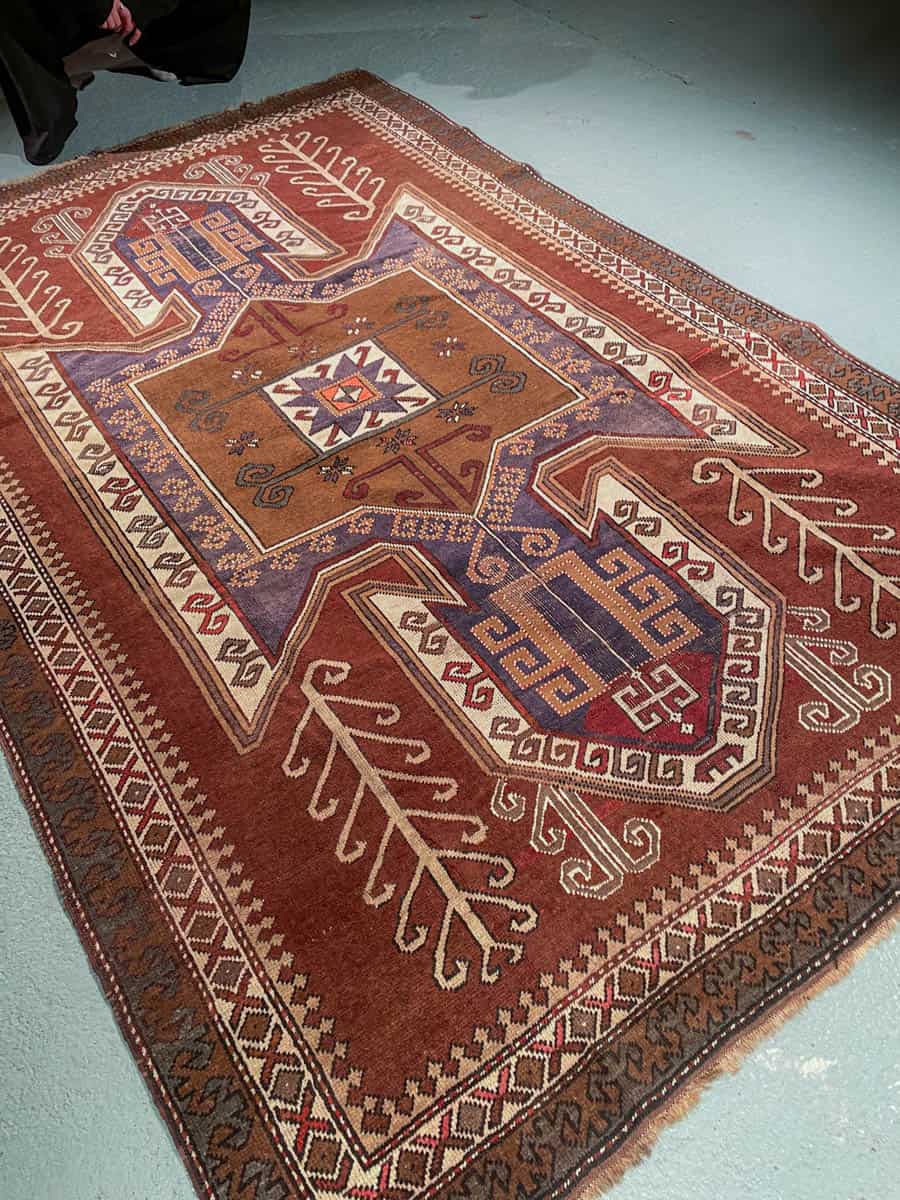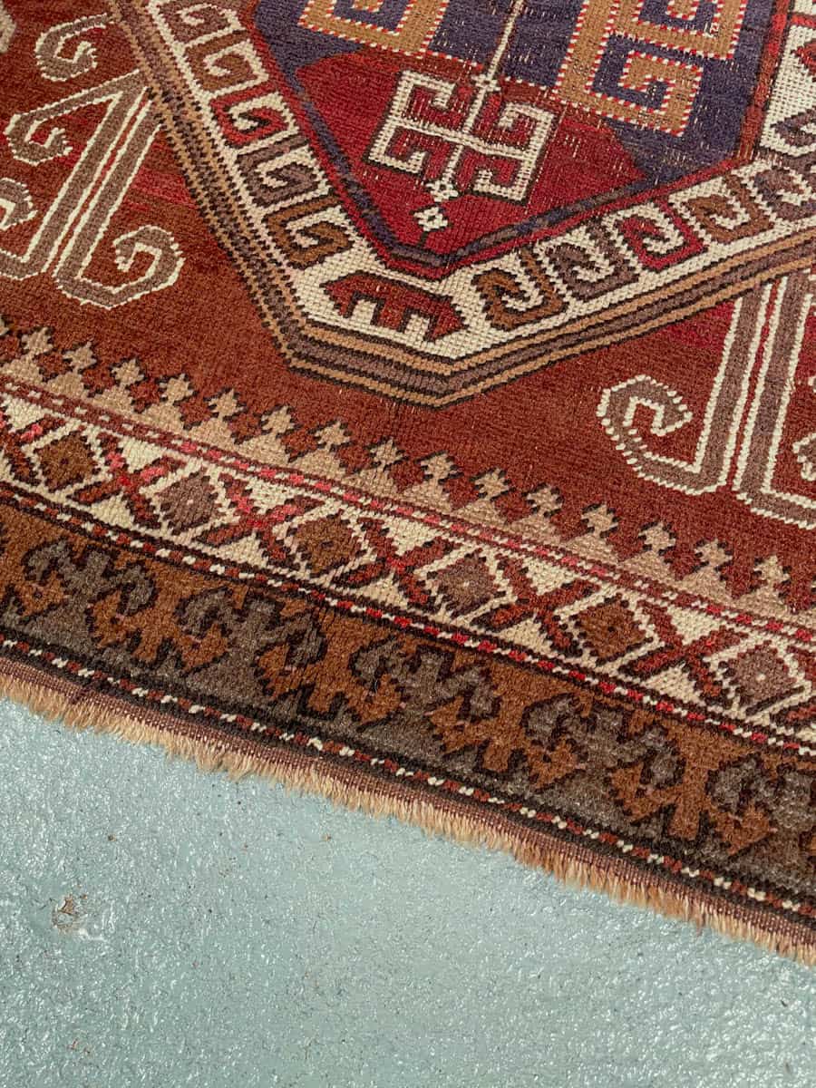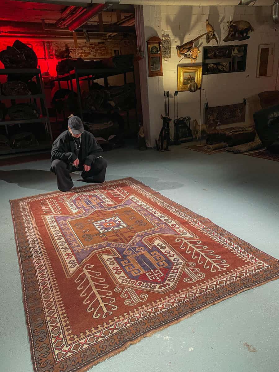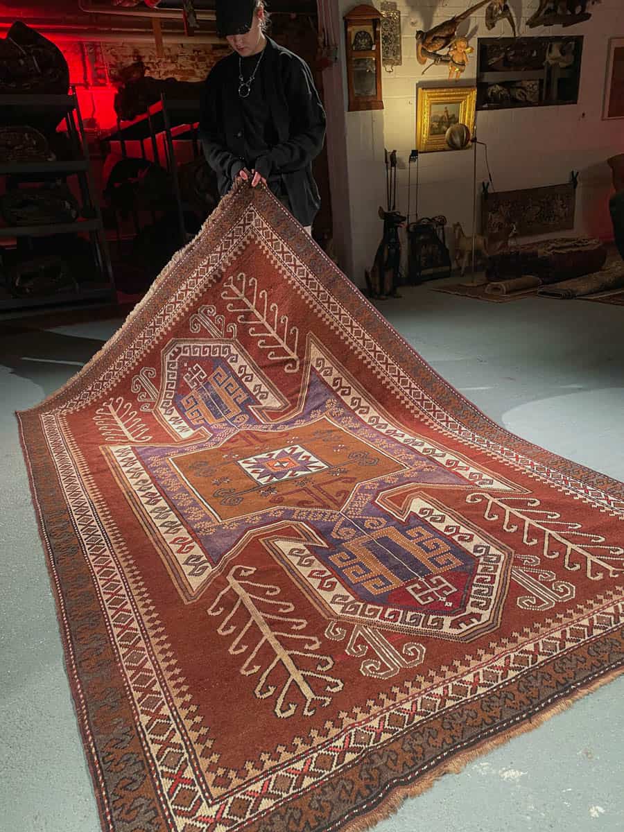 Tämä matto sijaitsee Galleriallamme osoitteessa Kankurinkatu 7, Punavuori – jos haluat tulla katsomaan sitä paikan päälle, sovithan näytön viestitse tai puhelimitse.